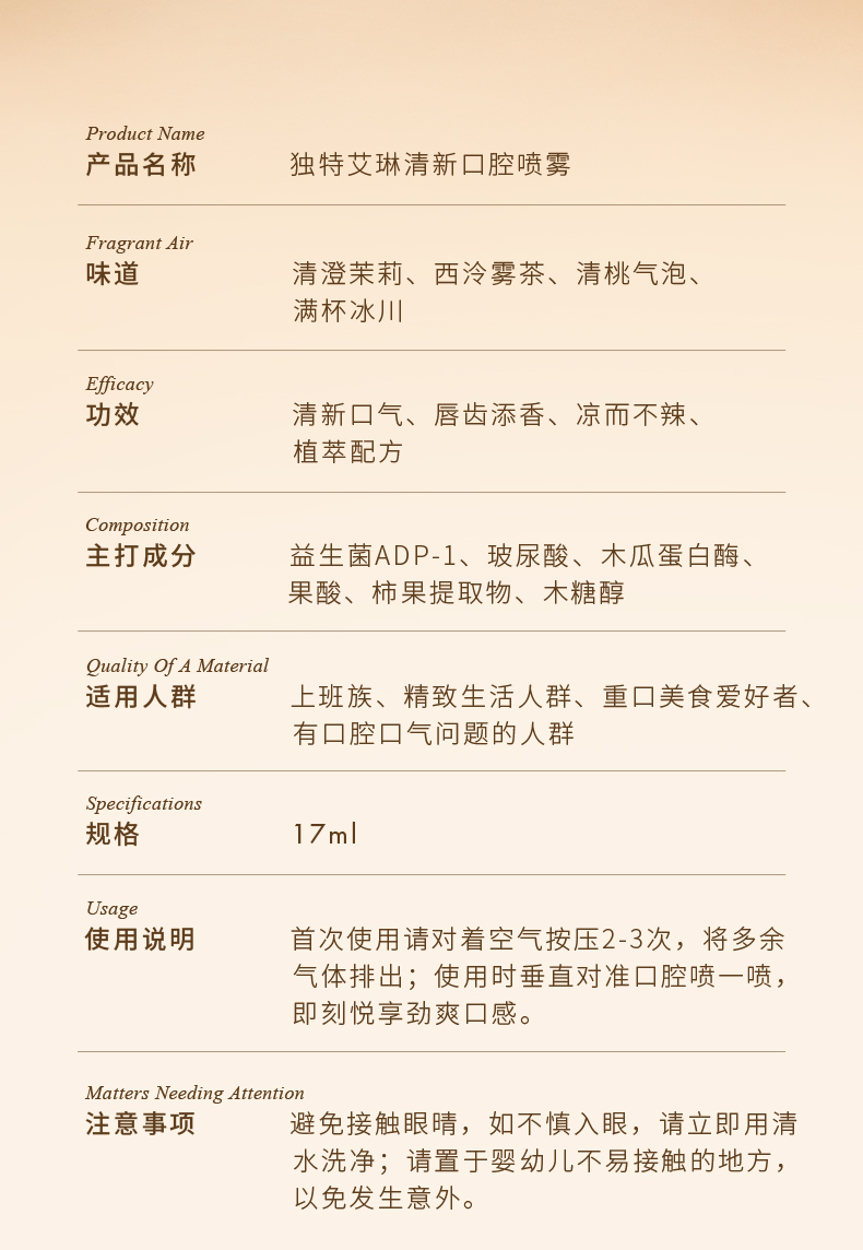 【现货速发】DearIrean 独特艾琳益生菌口喷去口气清新除异味口腔去口臭便携式口腔喷雾17ml