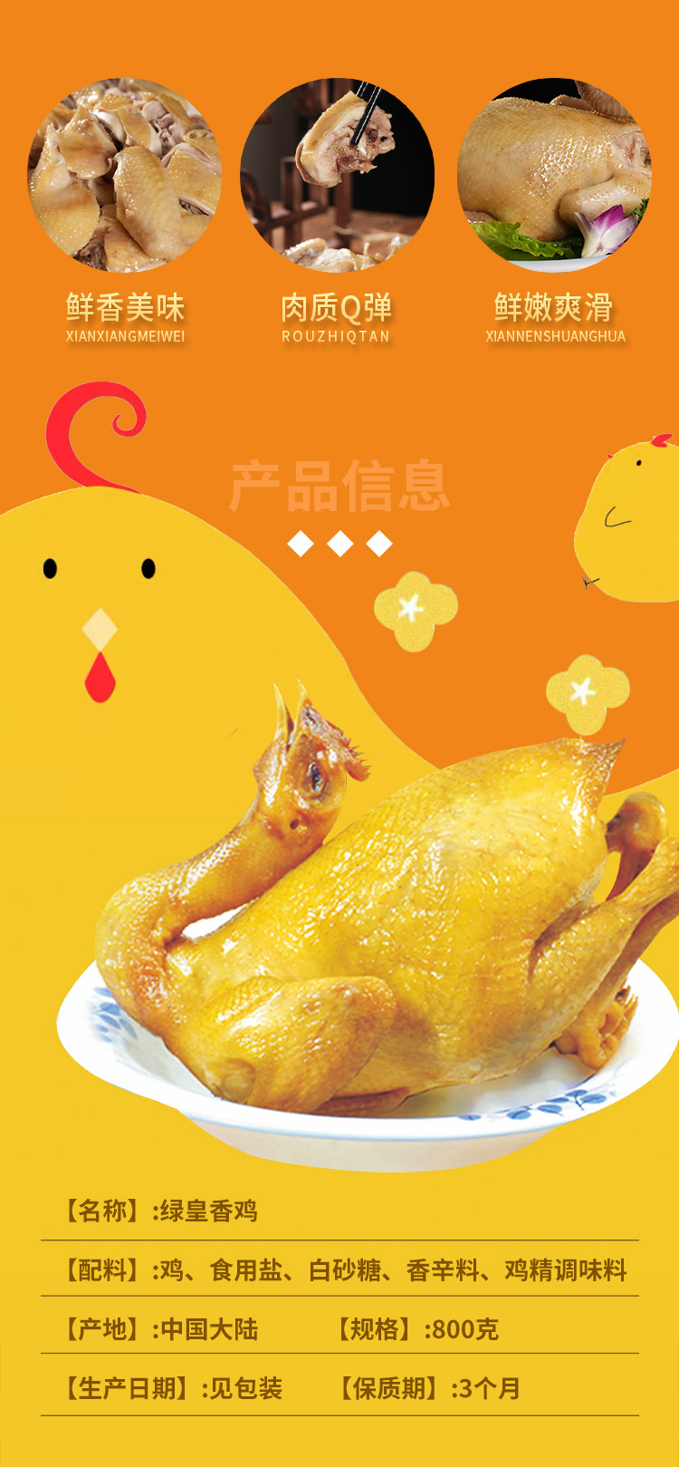 【开平优品】绿皇食品 香鸡(五指毛桃) 800g*1只(【仅发广东省内】
