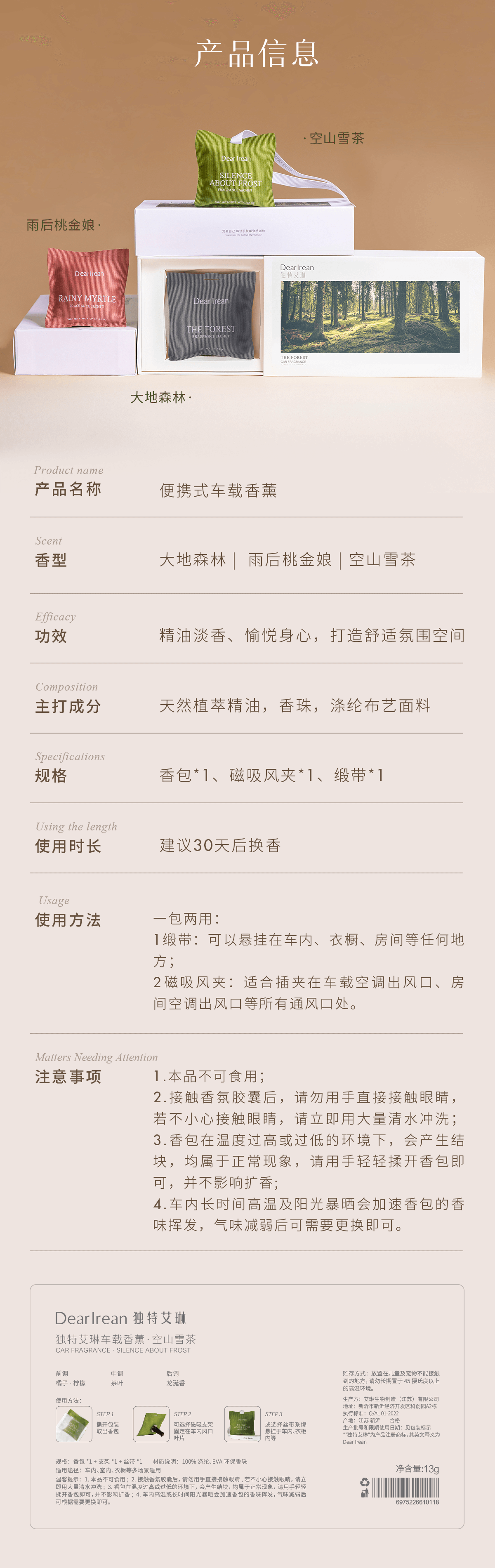 【现货速发】DearIrean 独特艾琳车载香薰香水高级出风口装饰摆件香包汽车香氛饰品 13g