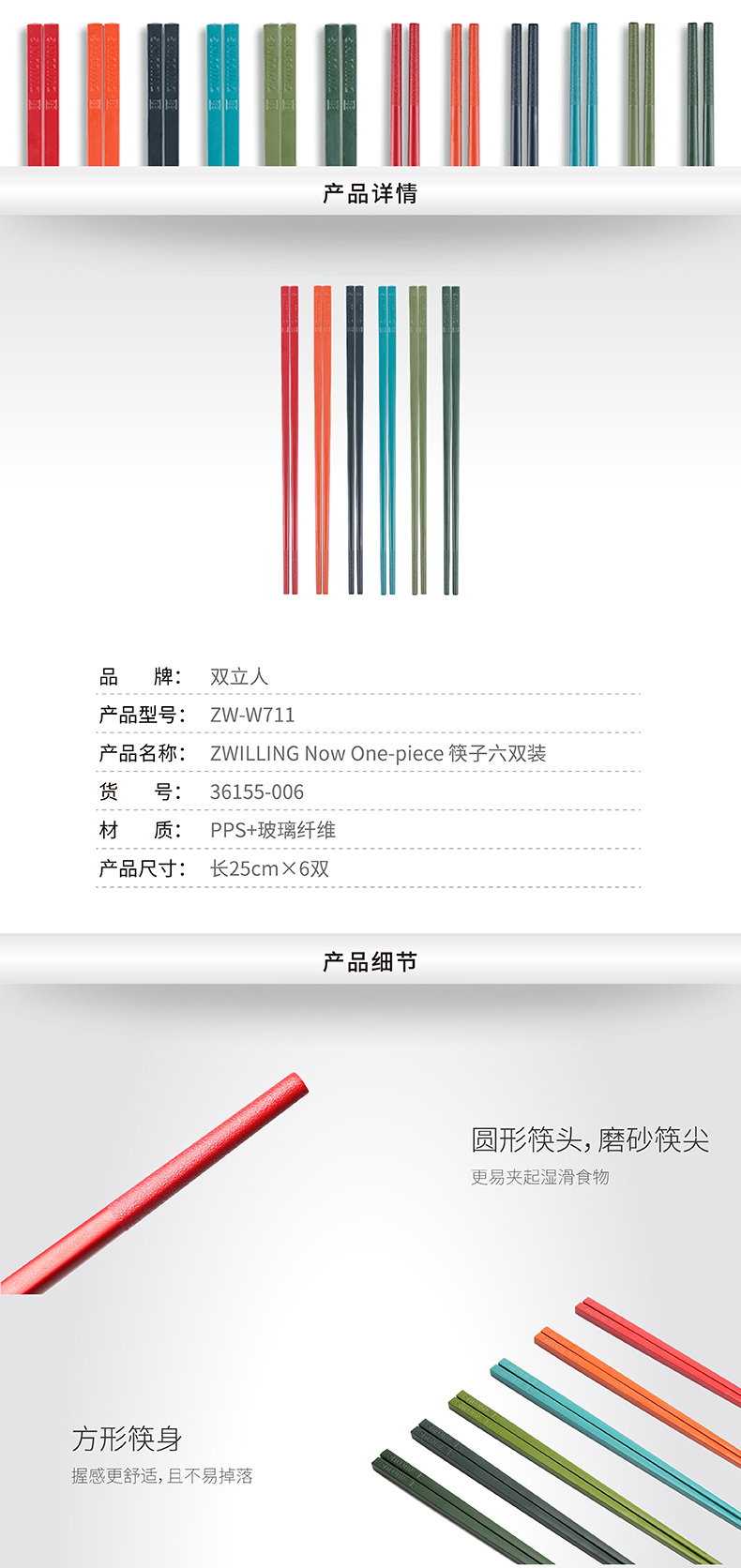 【已下架】积分换购 | 预售 | 双立人 ZWILLINGNowOne-piece 筷子六双装(不支持无理由退换) [福利品]