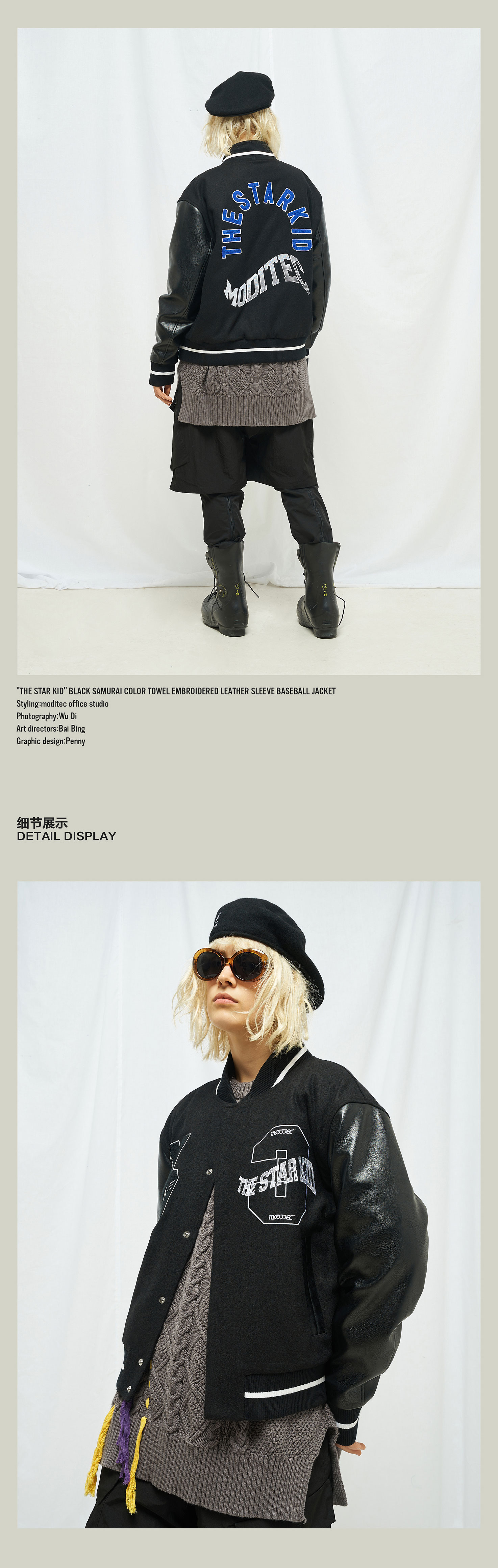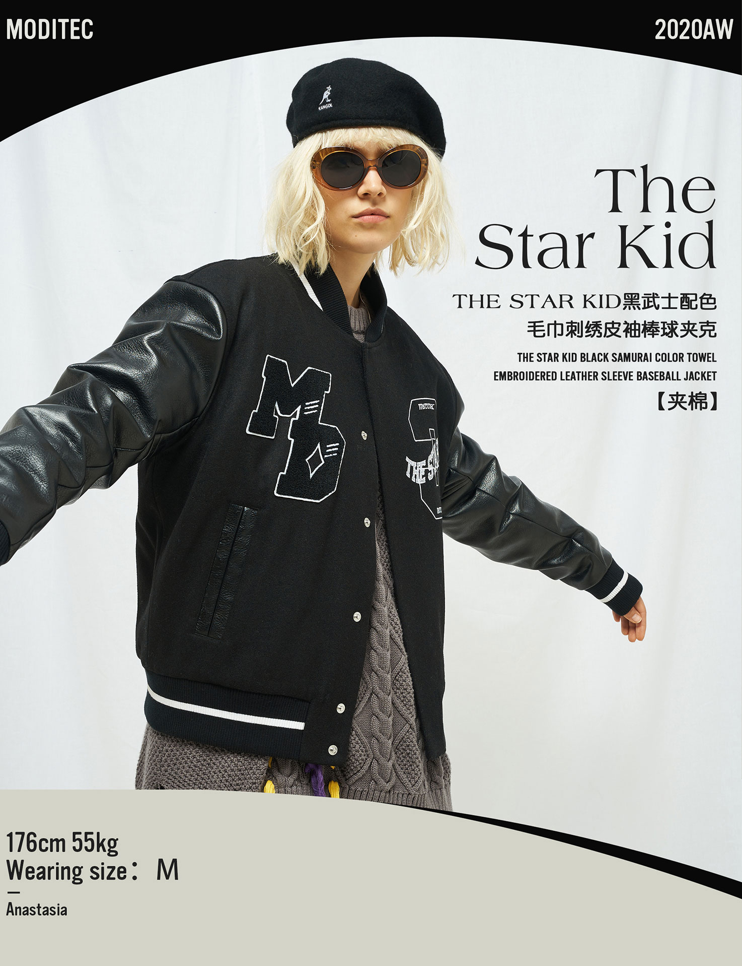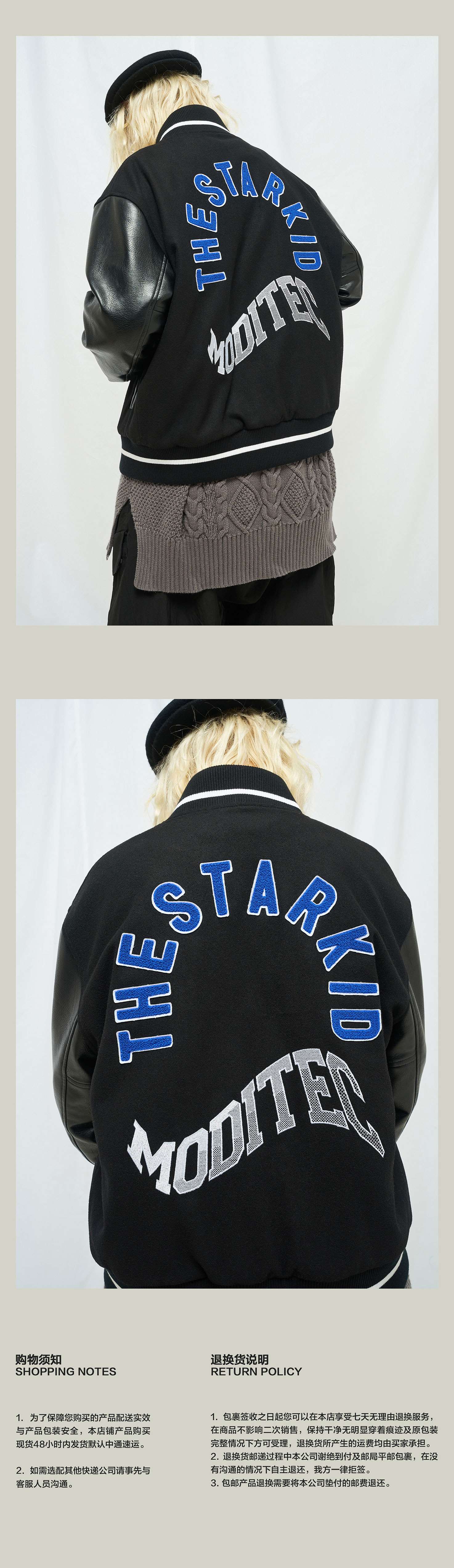 MODITEC 20秋冬 黑武士羊绒皮袖夹棉棒球外套STARKID主题刺绣棉服