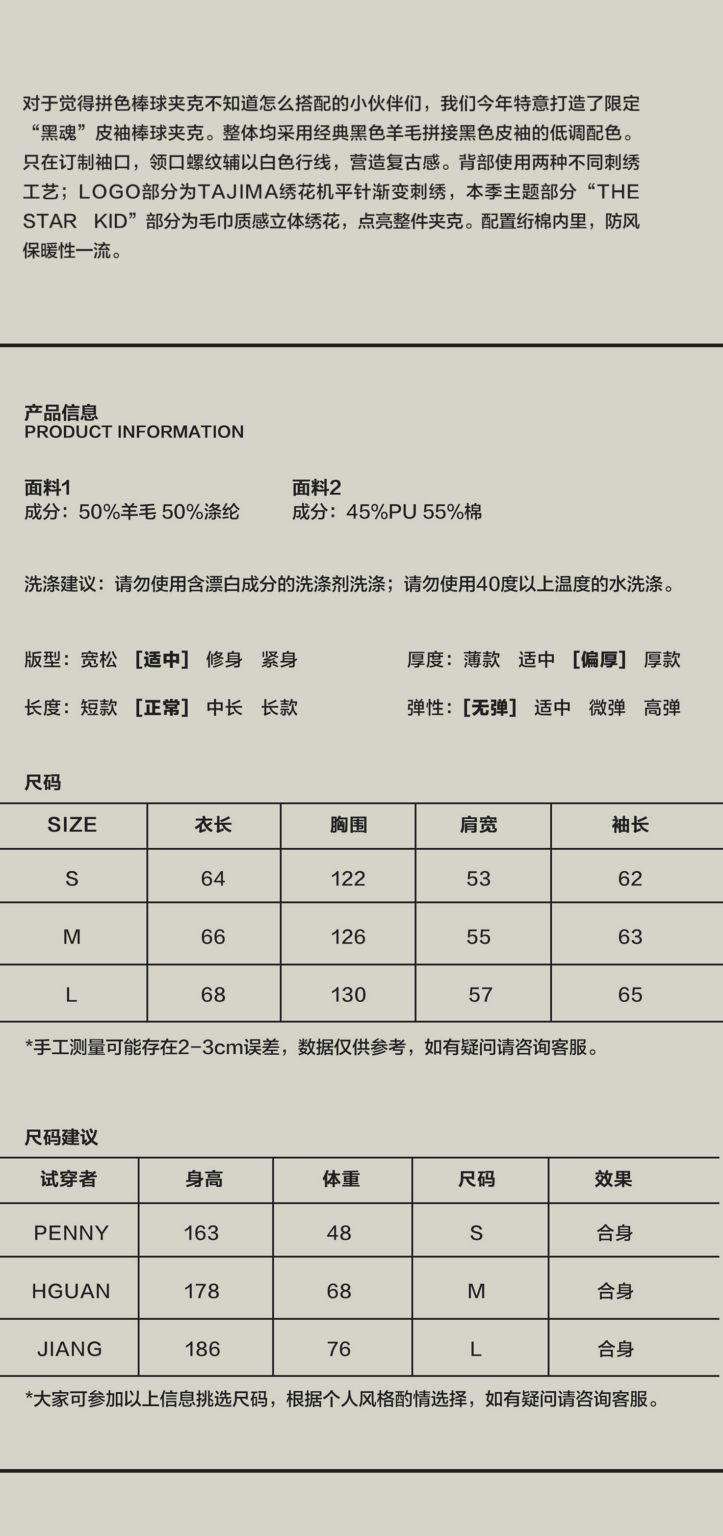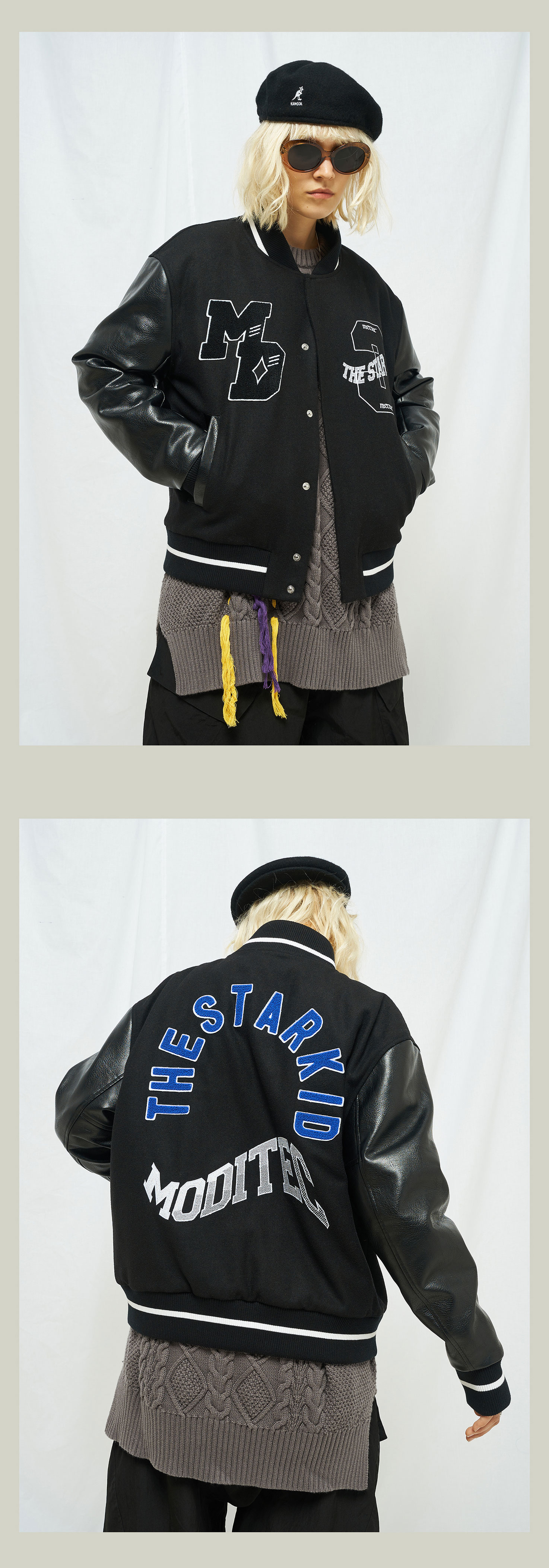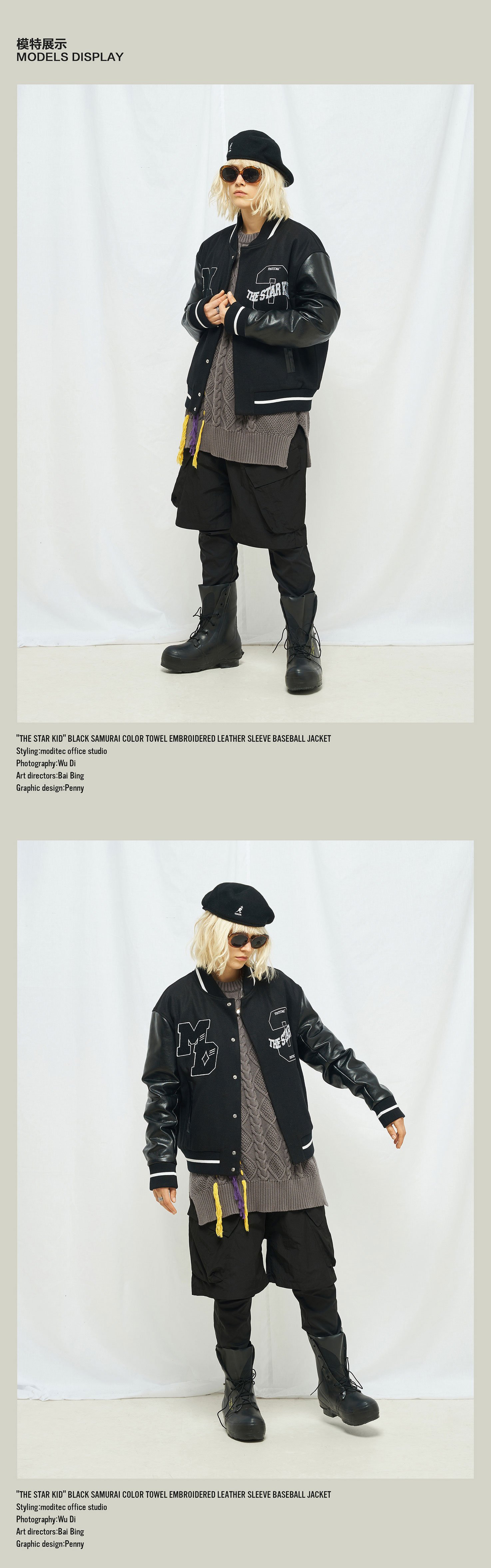 MODITEC 20秋冬 黑武士羊绒皮袖夹棉棒球外套STARKID主题刺绣棉服