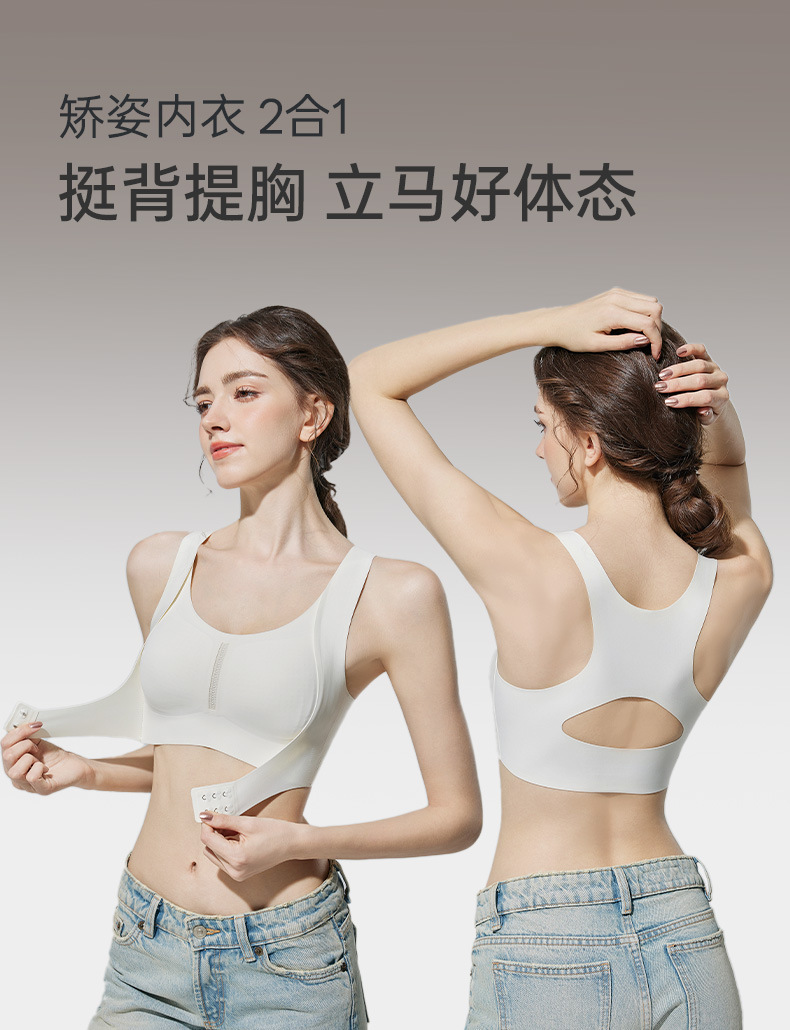 矫姿内衣美背运动内衣女前扣小胸聚拢防下垂收副乳矫正驼背塑形文胸罩