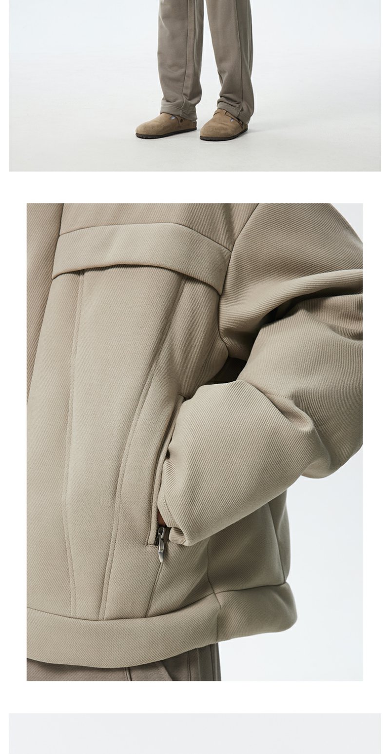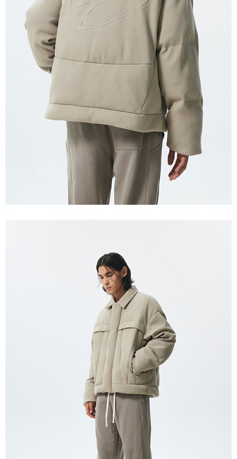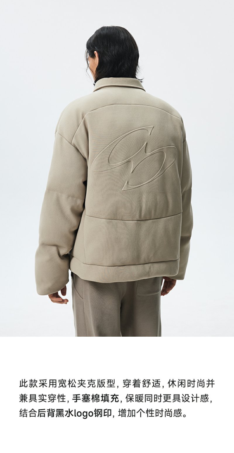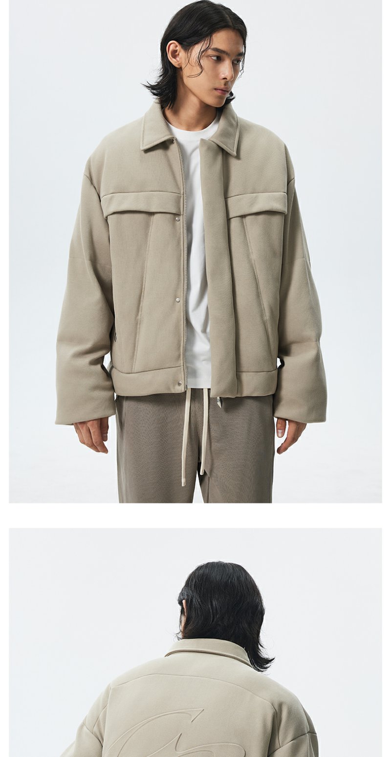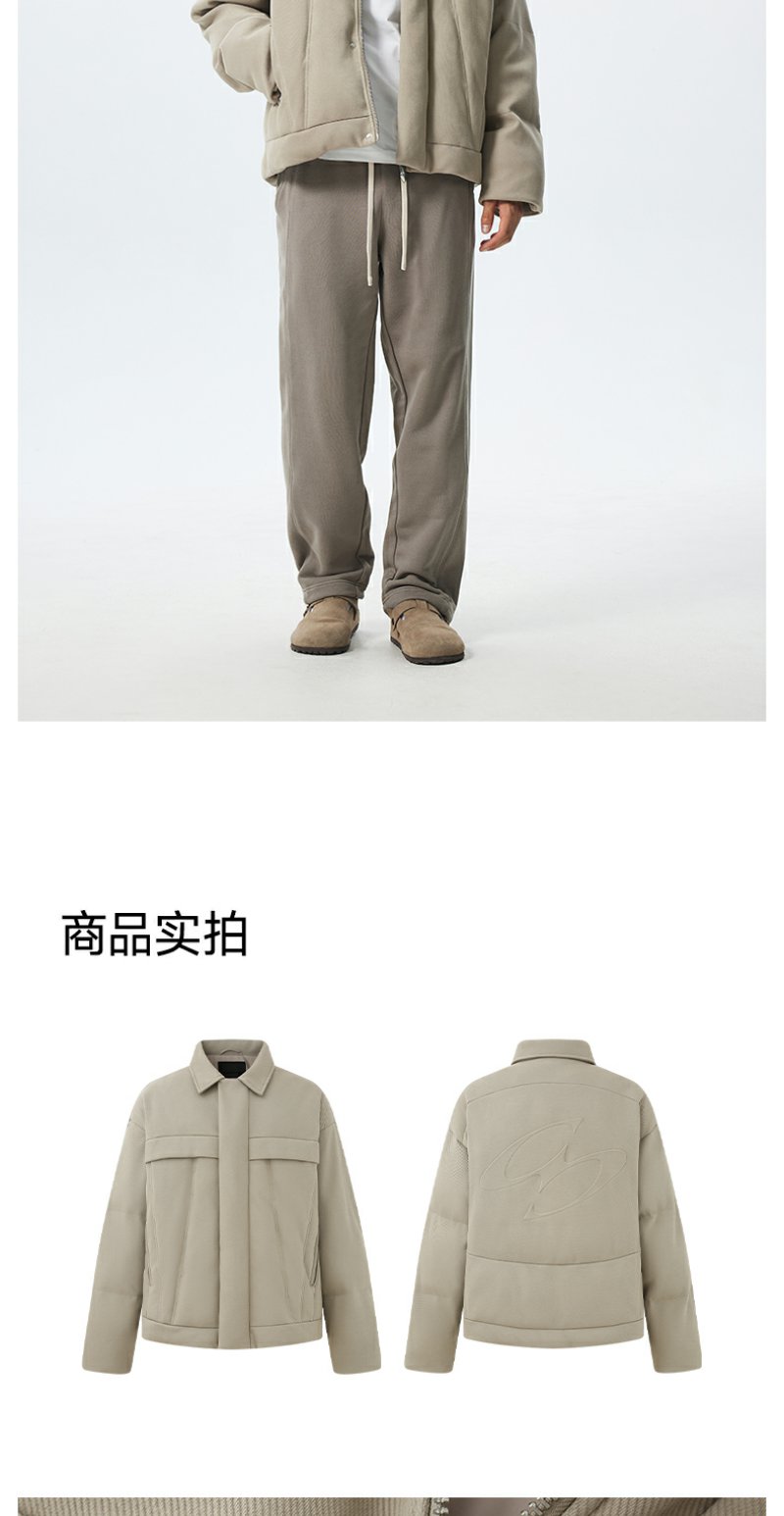 CHINISM折扣季 卡其灰翻领棉服外套男秋冬加厚保暖男士休闲棉衣