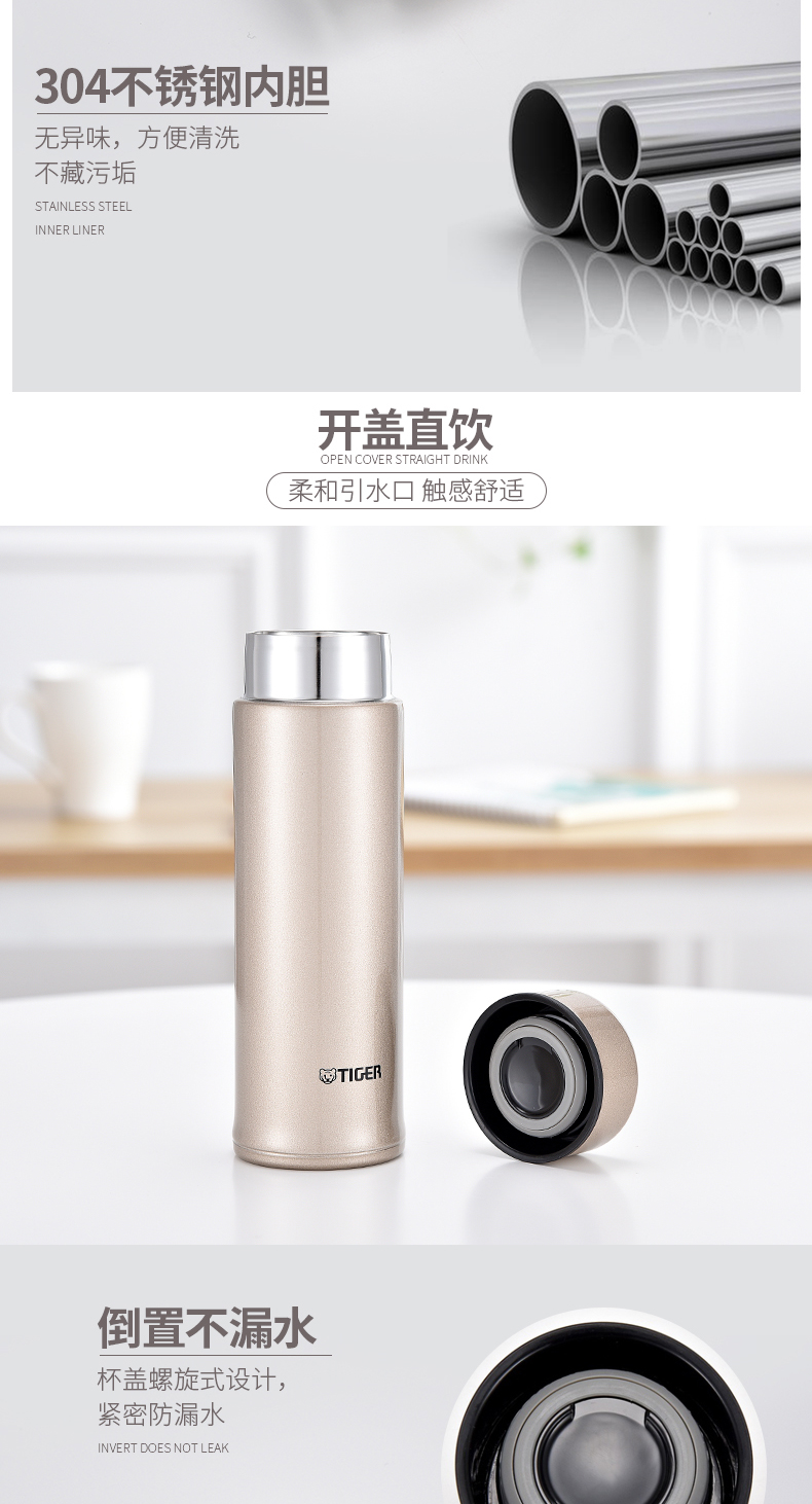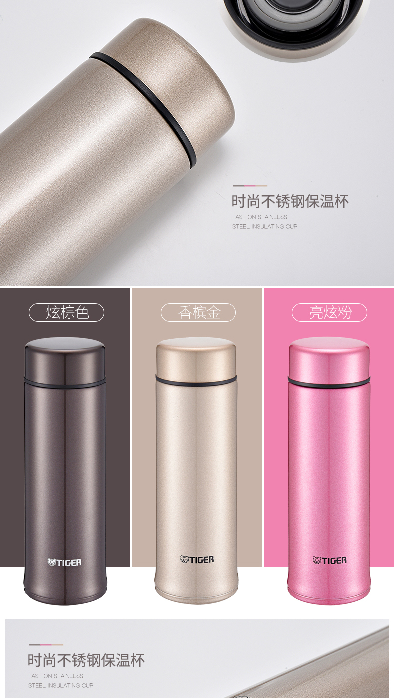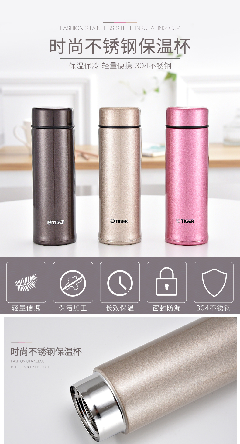 虎牌保温杯女不锈钢水杯子男士便携简约杯子保暖杯MMP-M40C