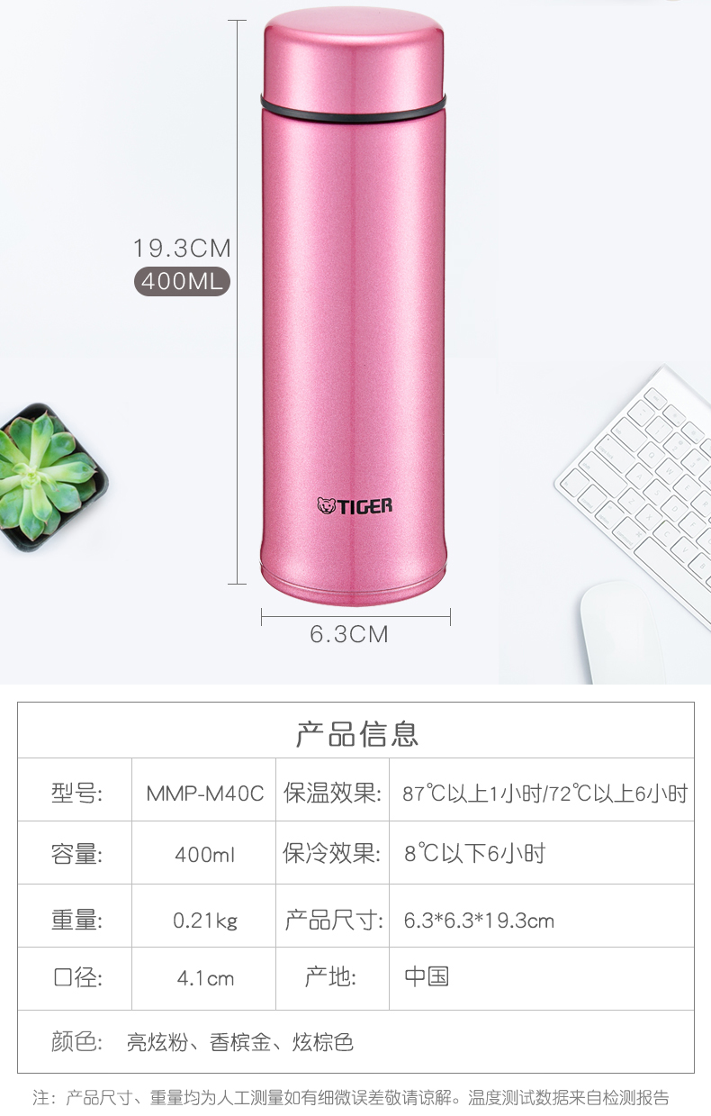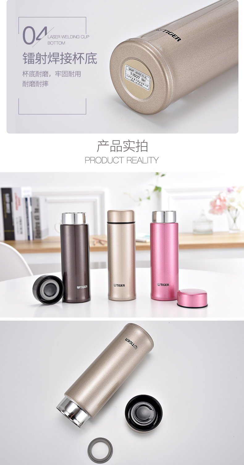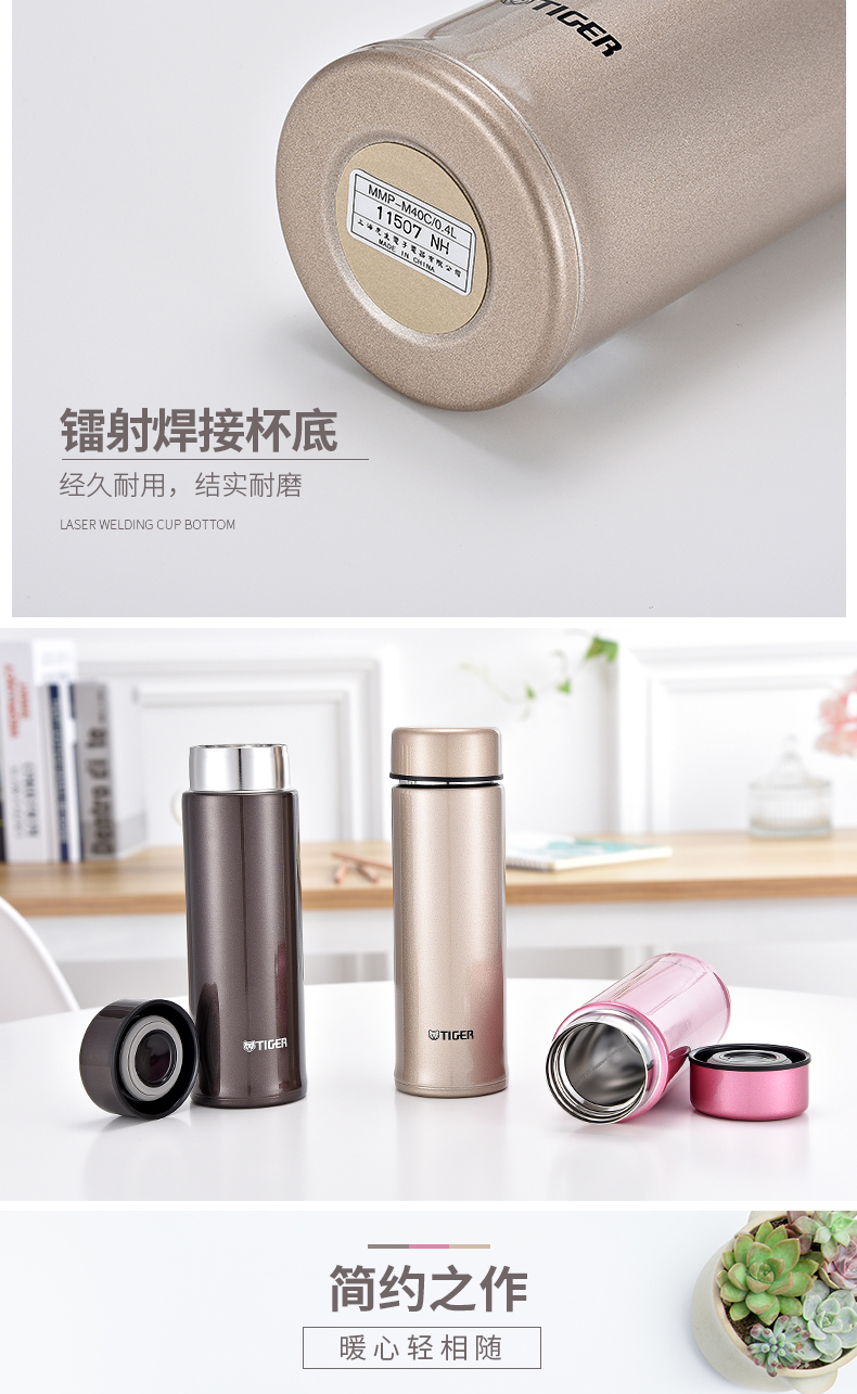 虎牌保温杯女不锈钢水杯子男士便携简约杯子保暖杯MMP-M40C