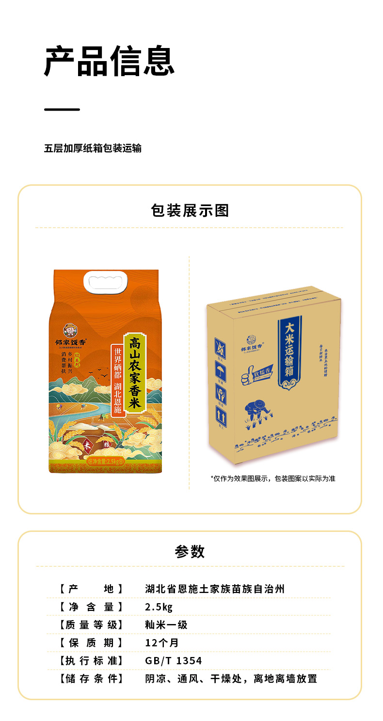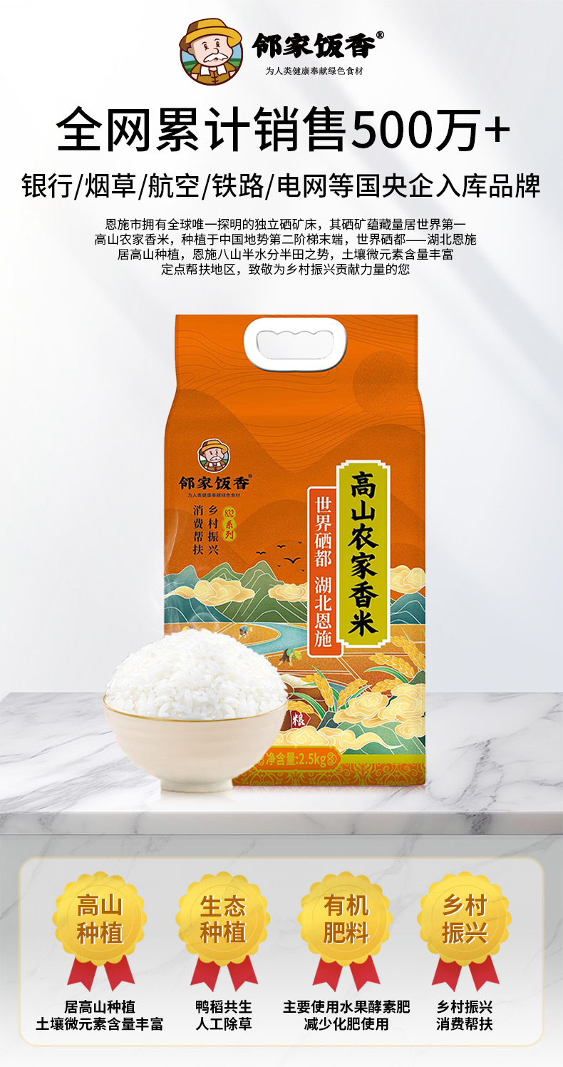 邻家饭香 高山农家香米 2.5kg每袋 真空双层包装 乡村振兴 消费帮扶 832系列 FP69
