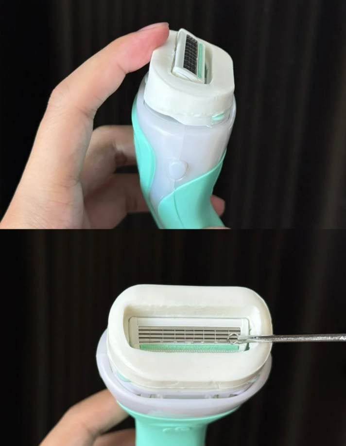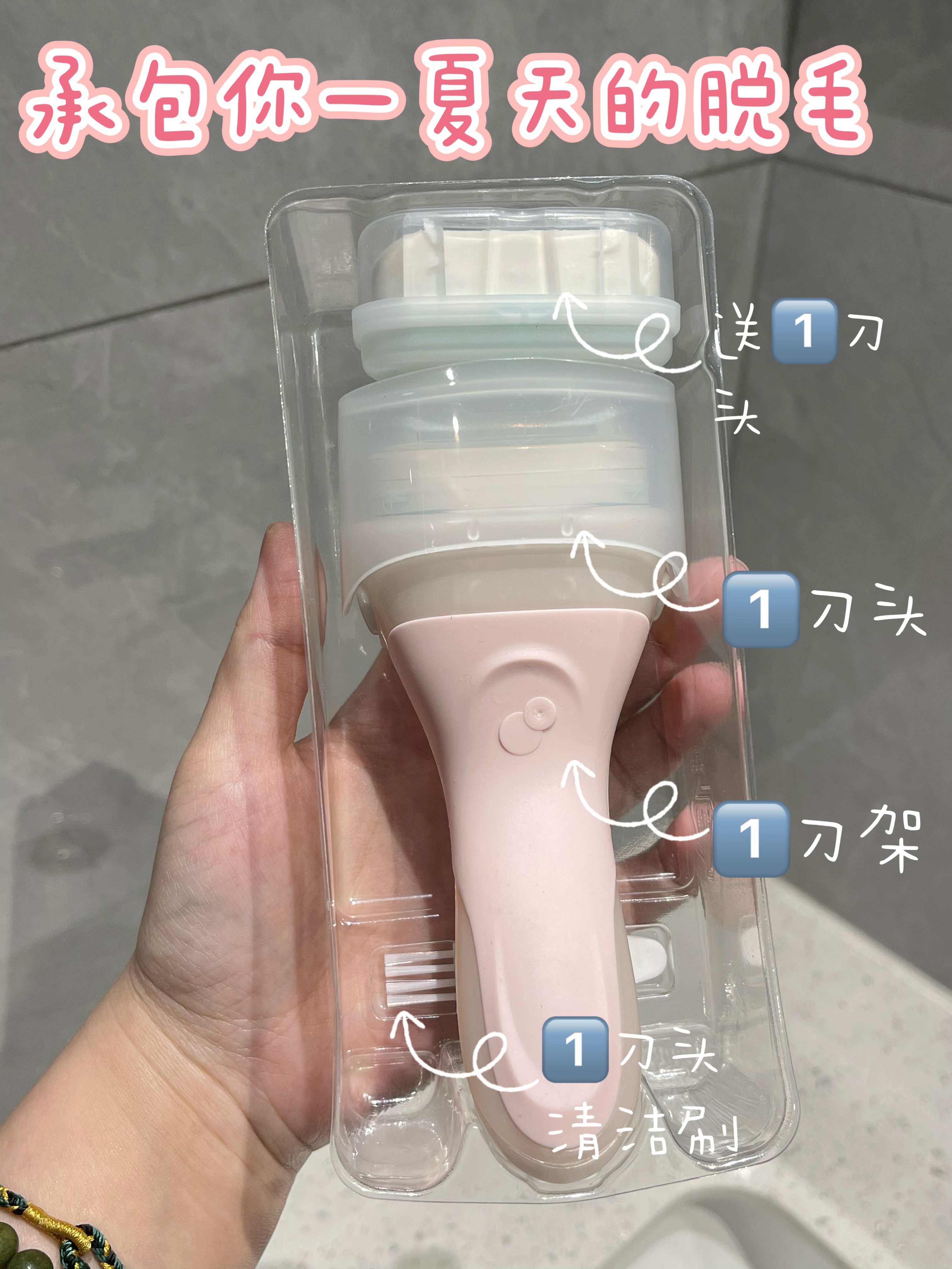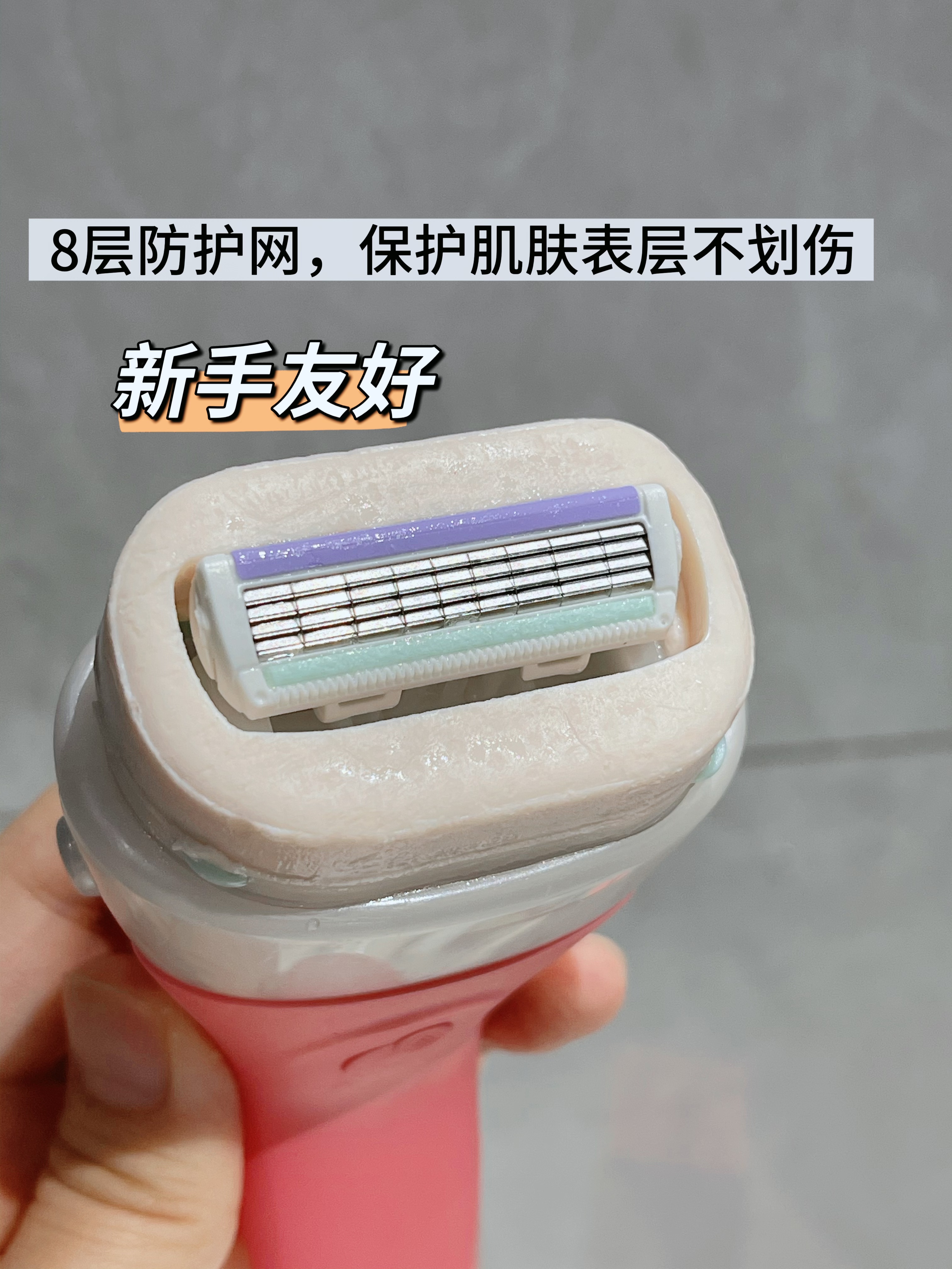 温馨提示:新刀头都会比较锋利喔,若用于身体弯曲的位置,需保持肌肤紧绷,减轻力度,小心除毛哦~~
