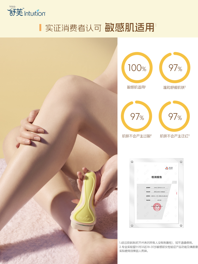 • 适合:敏感肌、易泛红刺痛肤质,尤其适合腋下、比基尼线等娇嫩部位
