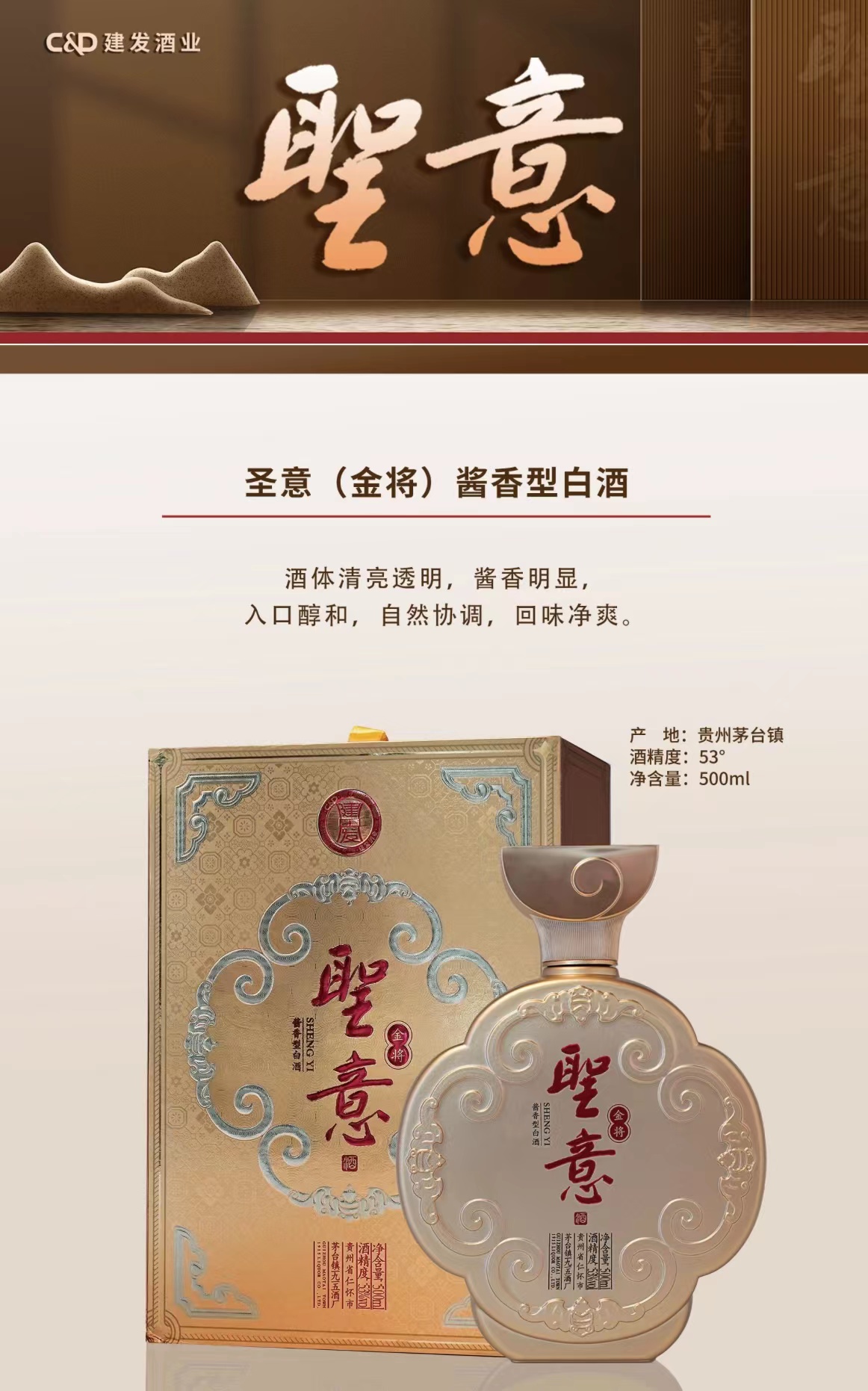 【仅供集采】建发酒业圣意酱酒·金将500ml*6瓶/箱