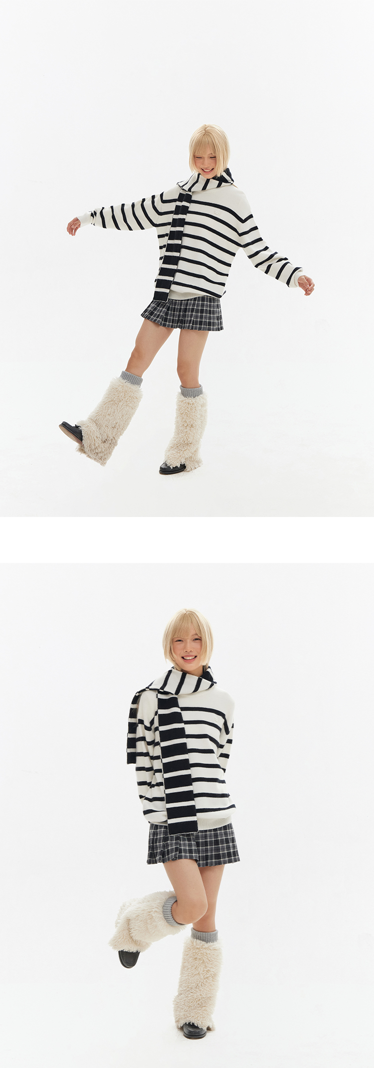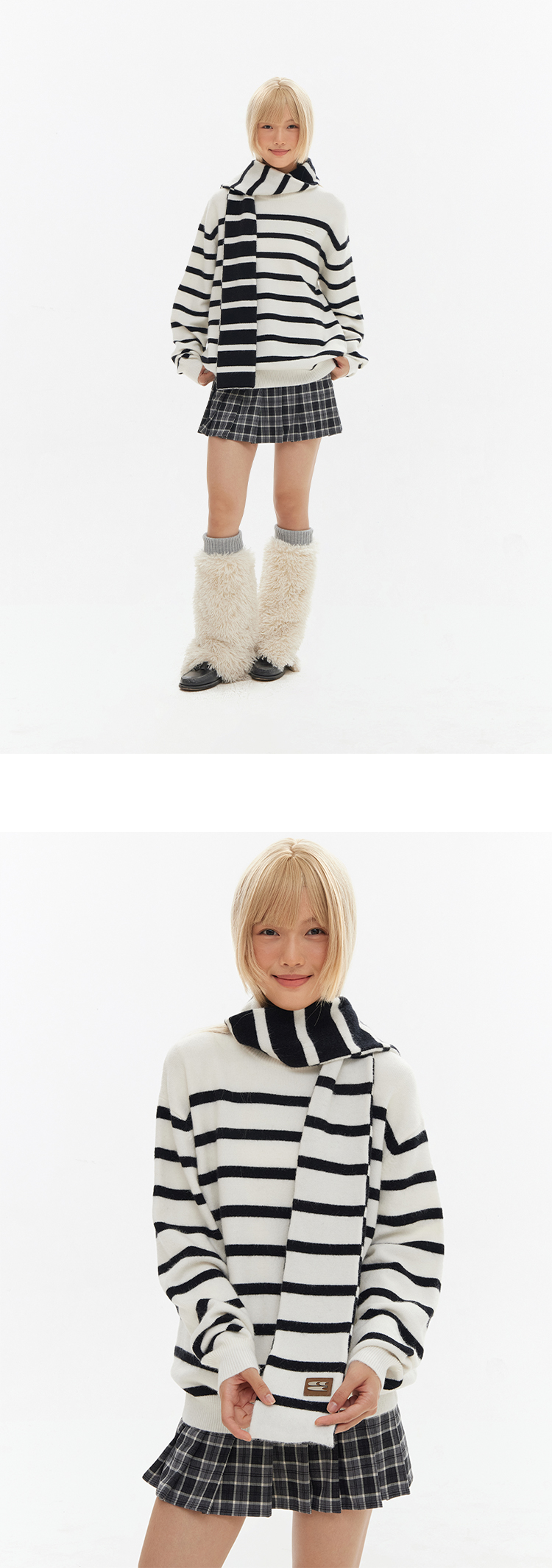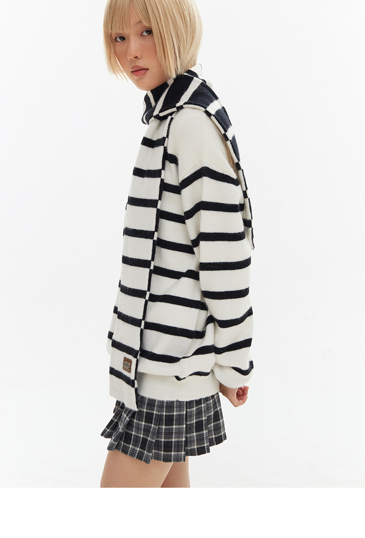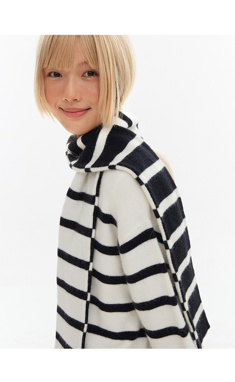 CryingCenter 经典黑白条围巾毛衣组合 哭喊中心