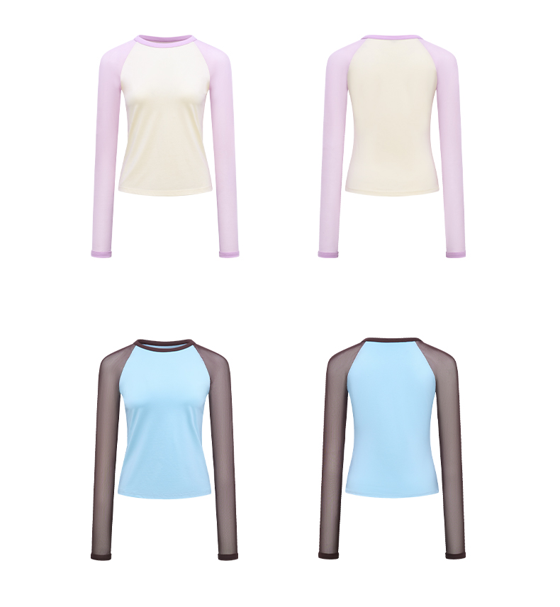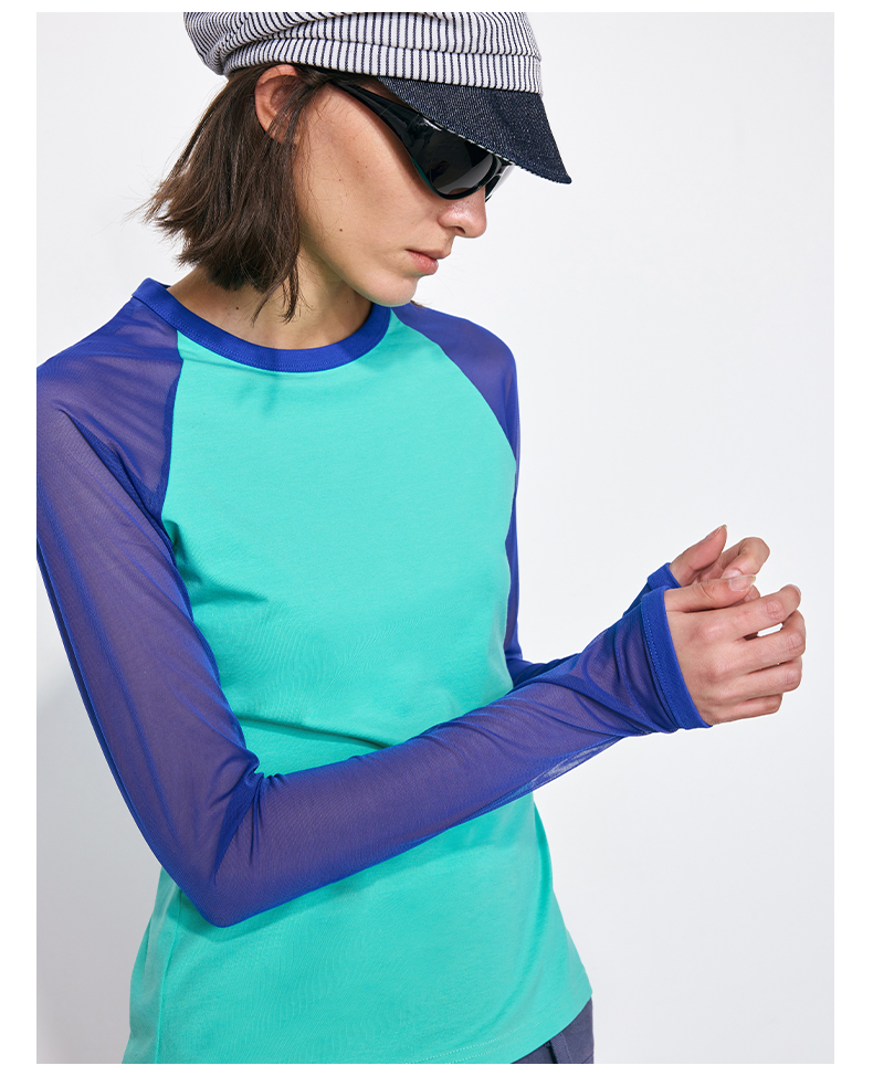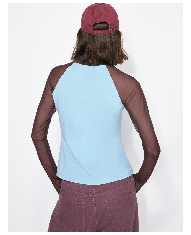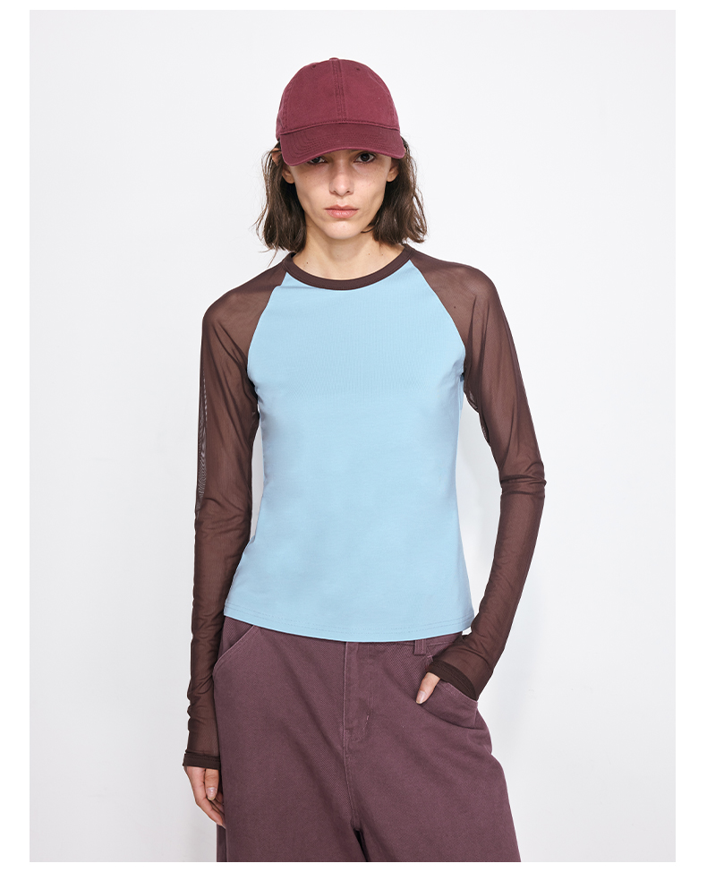 NUTH亲肤莫代尔棉撞色拼接半透长袖t恤女(发货/预售时间同步天猫)