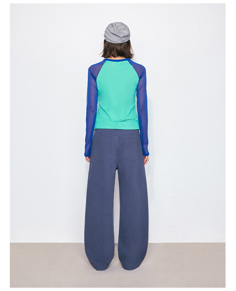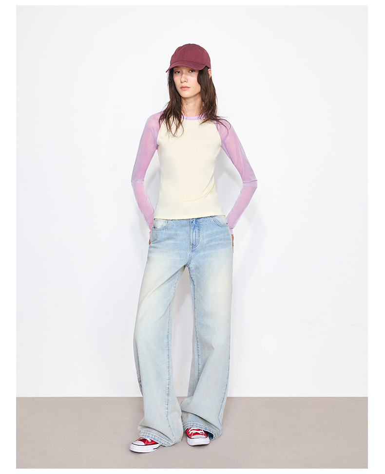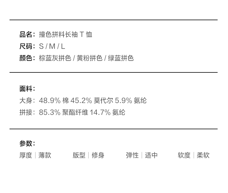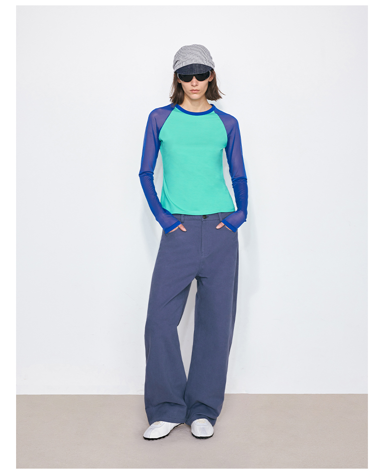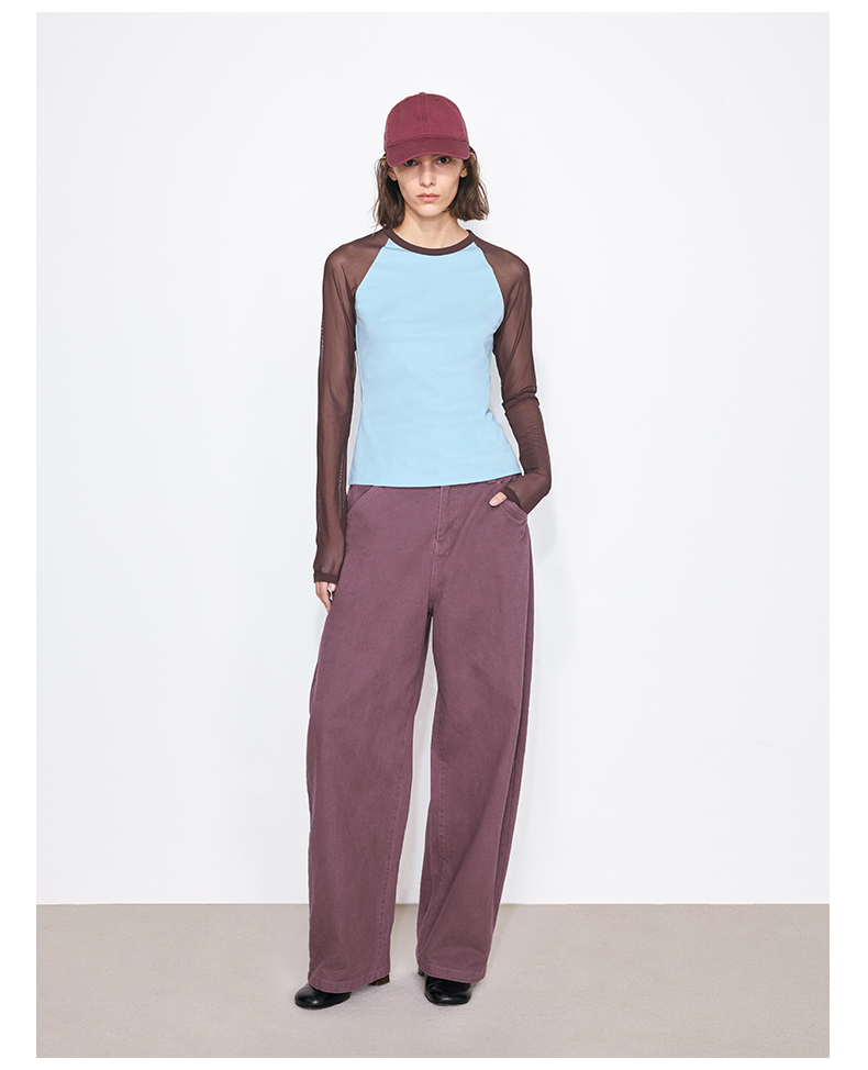 NUTH亲肤莫代尔棉撞色拼接半透长袖t恤女(发货/预售时间同步天猫)
