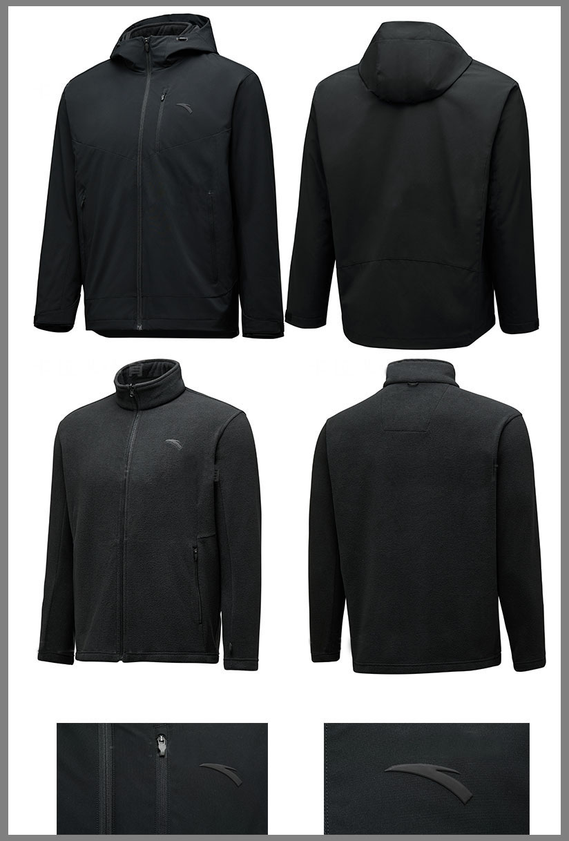 安踏春秋款三合一冲锋衣防风防泼水男女同款保暖加绒连帽运动外套452440208