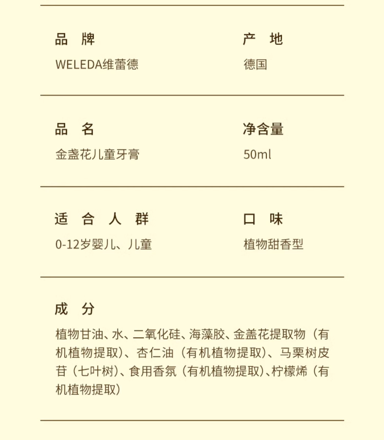【保税仓】WELEDA维蕾德金盏花儿童牙膏50ML