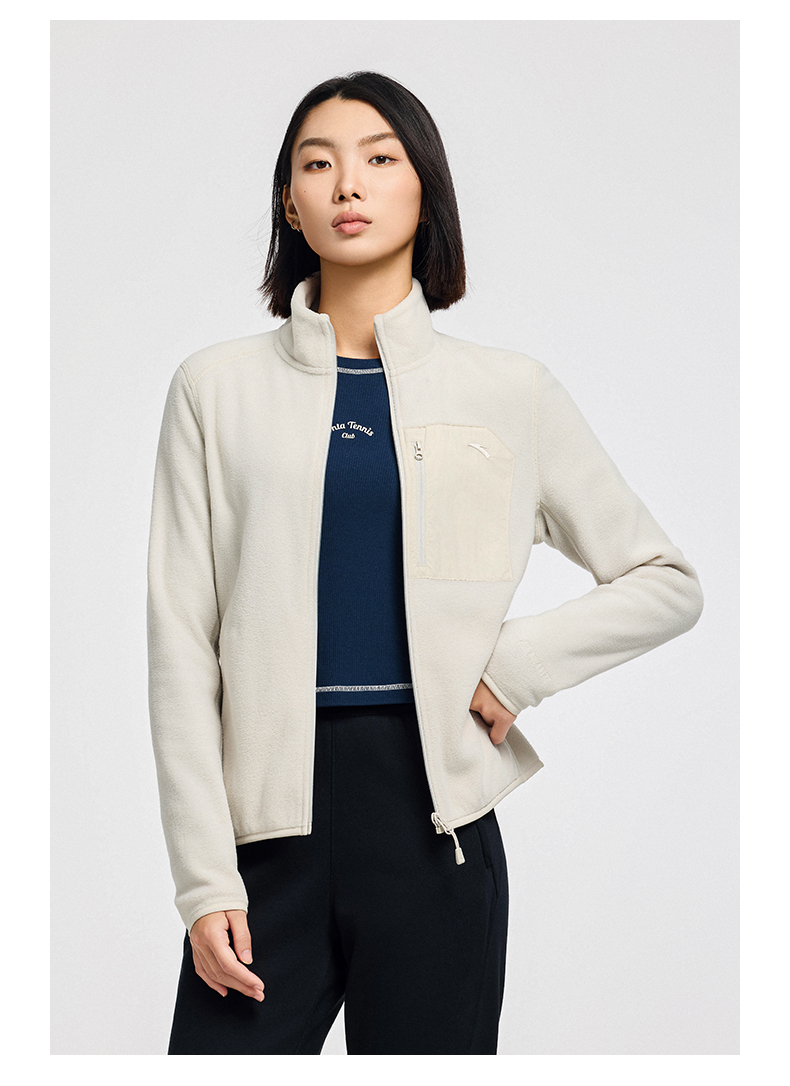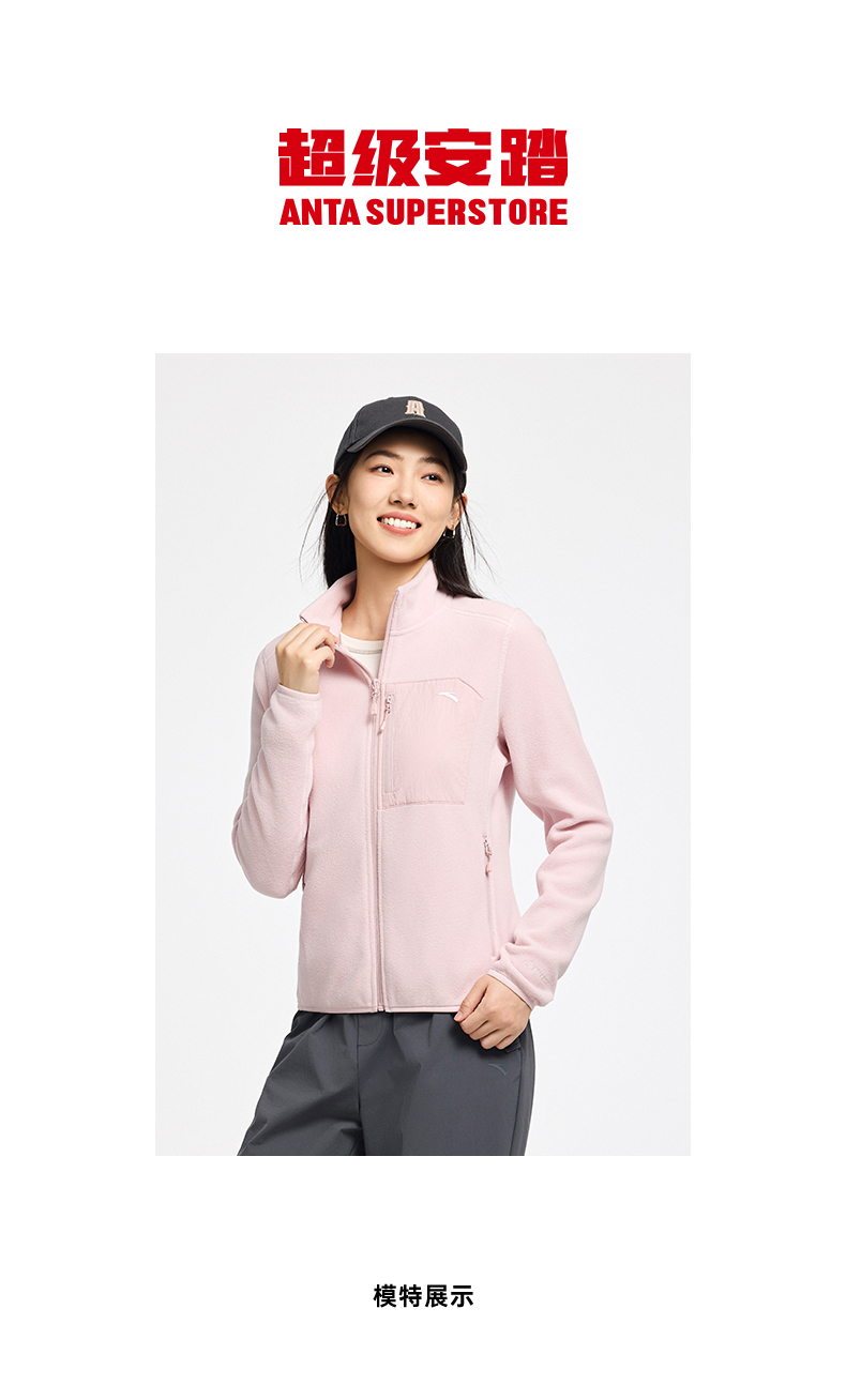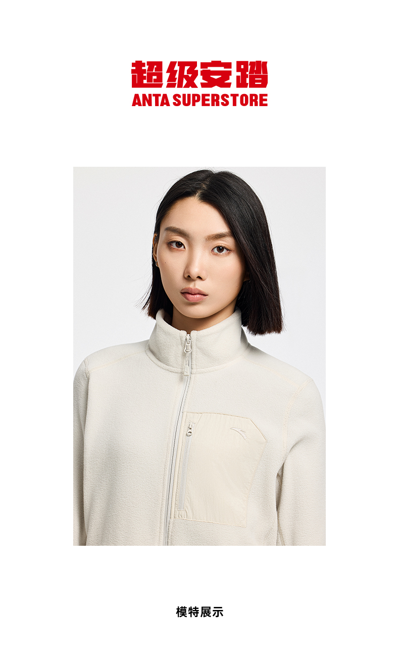 超级安踏焱壳丨抓绒运动外套女士户外POLARTEC保暖立领针织开衫162546710U