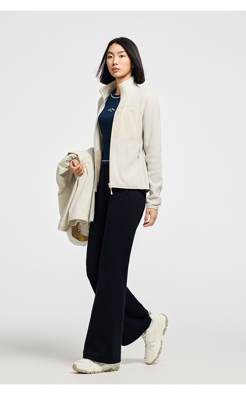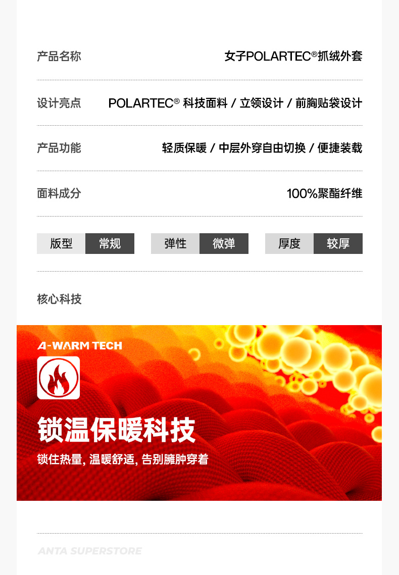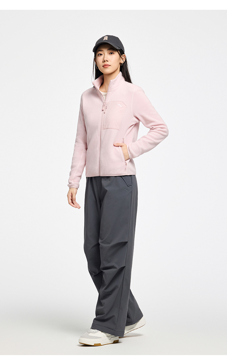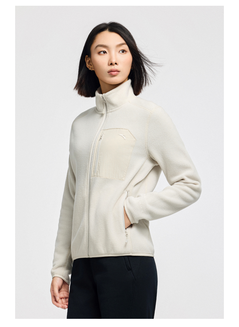 超级安踏焱壳丨抓绒运动外套女士户外POLARTEC保暖立领针织开衫162546710U