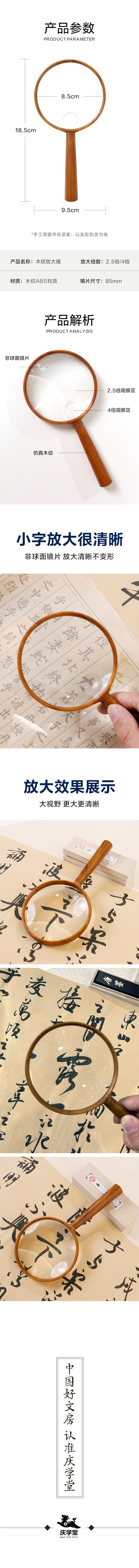 【庆学堂】木纹放大镜 大号直径90mm手持式高清便携式放大镜 老人儿童学生阅读看报
