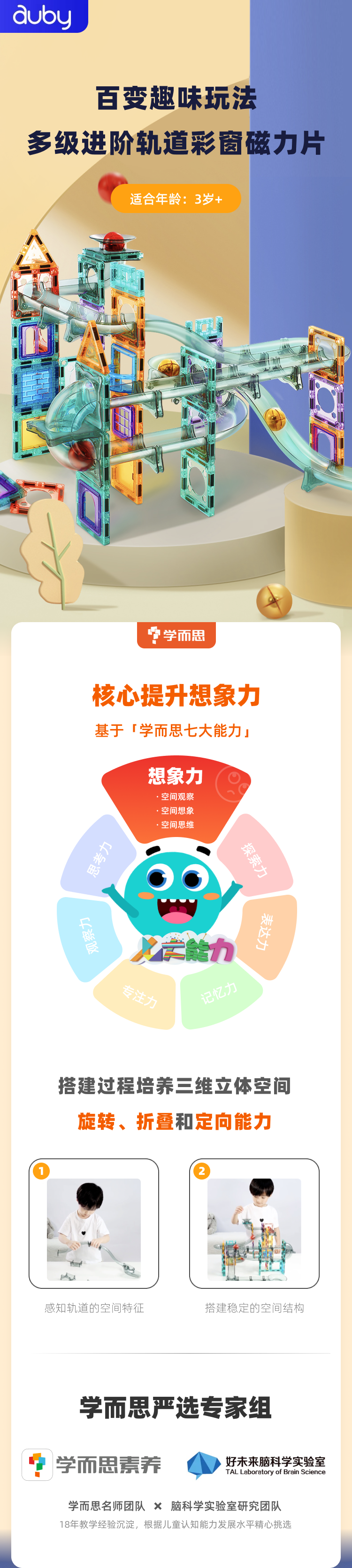 【学而思严选】auby澳贝轨道磁力片 3岁+适用 70片装 平面/立体/动态百变趣味玩法