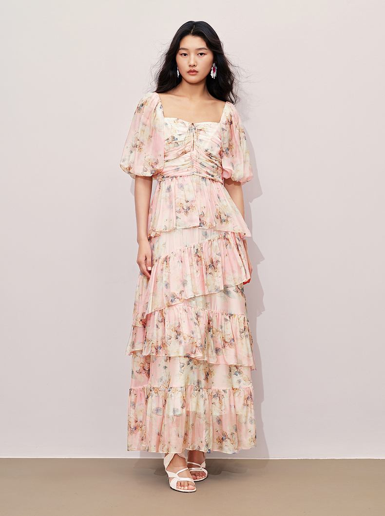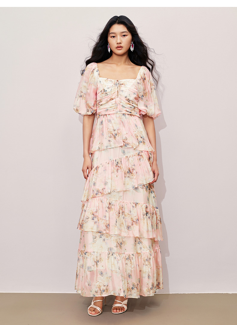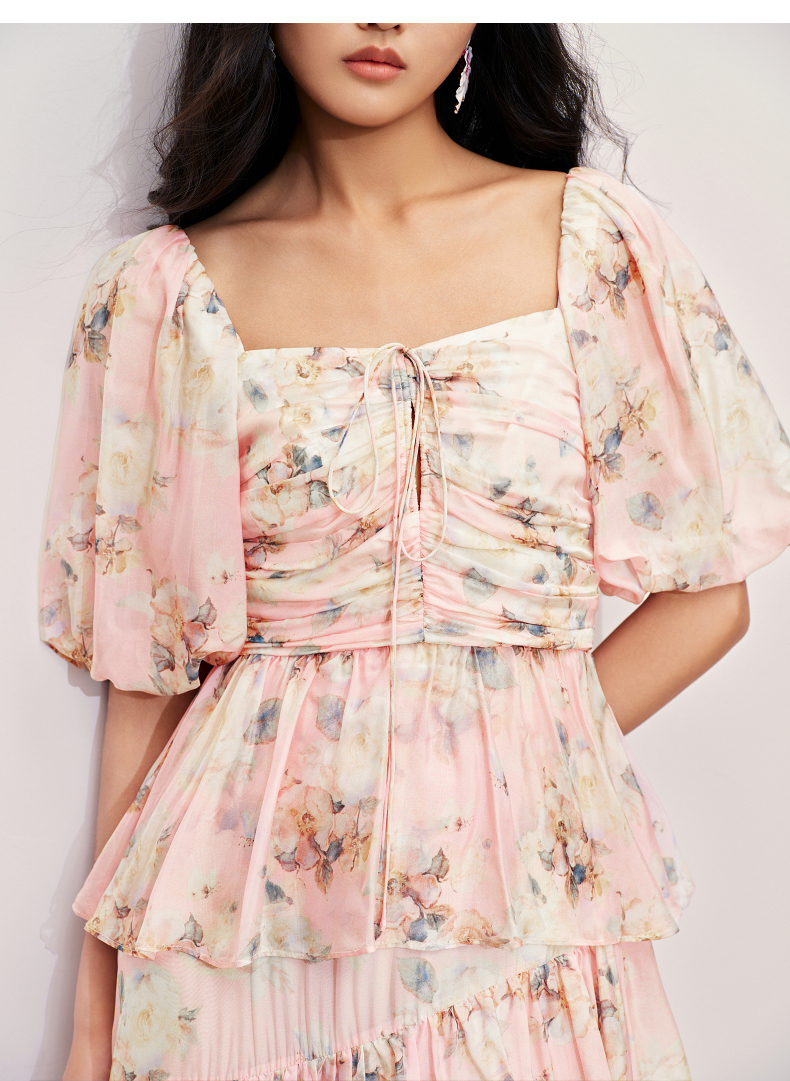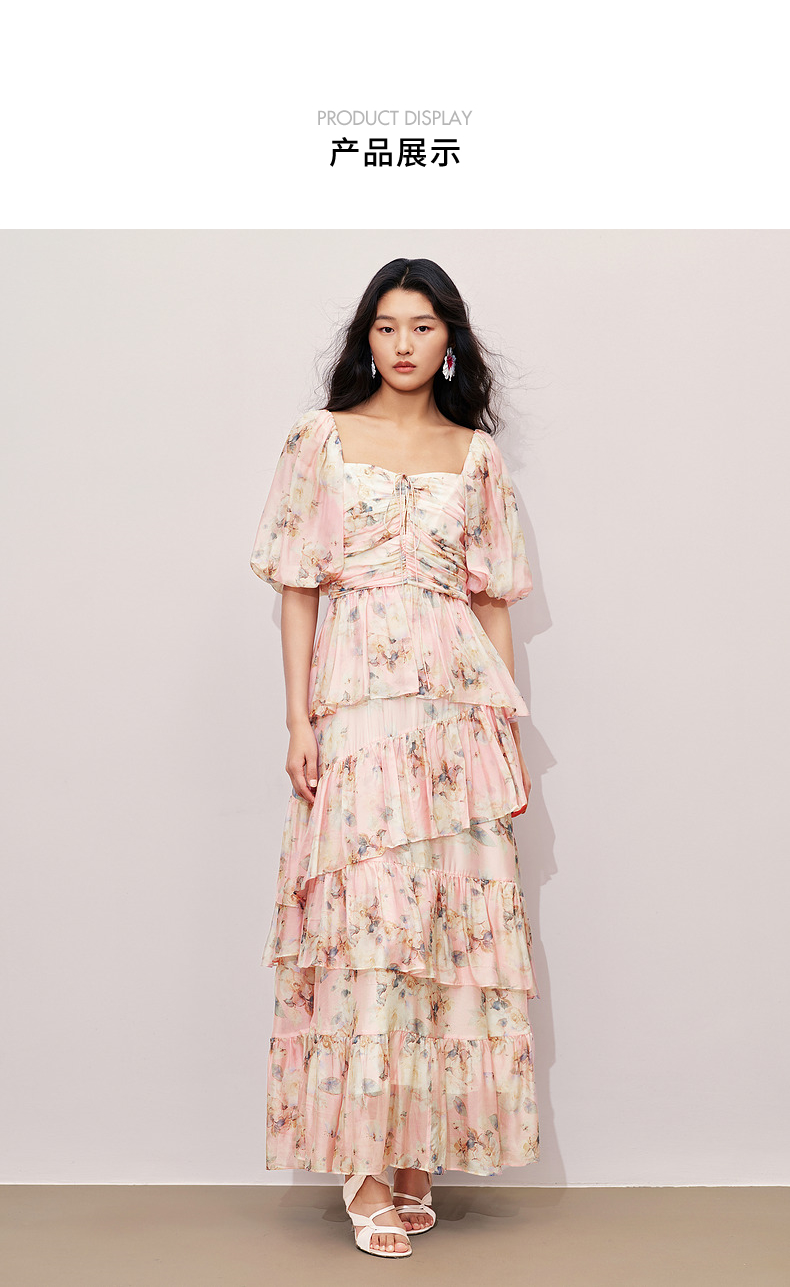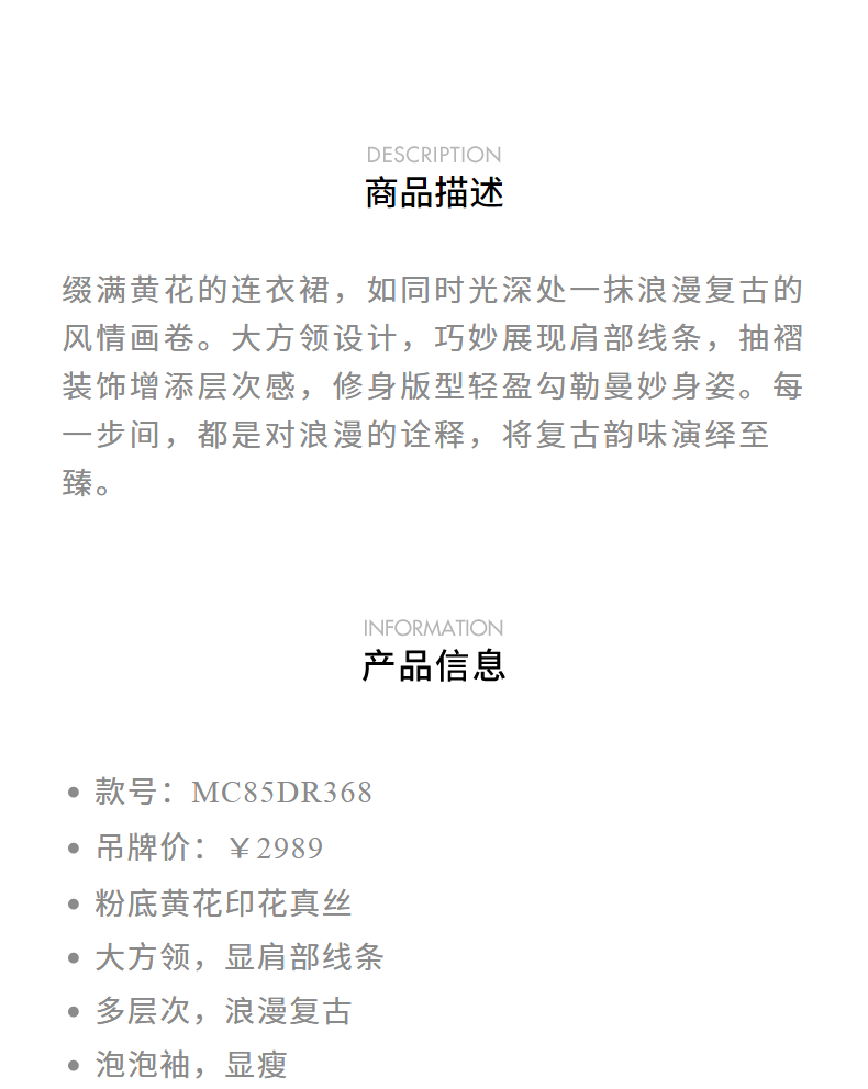 玛克门店发货:MAXRIENY大方领浪漫复古抽褶连衣裙(货号:MC85DR368)
