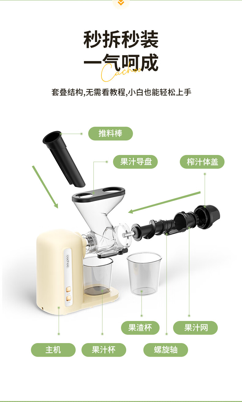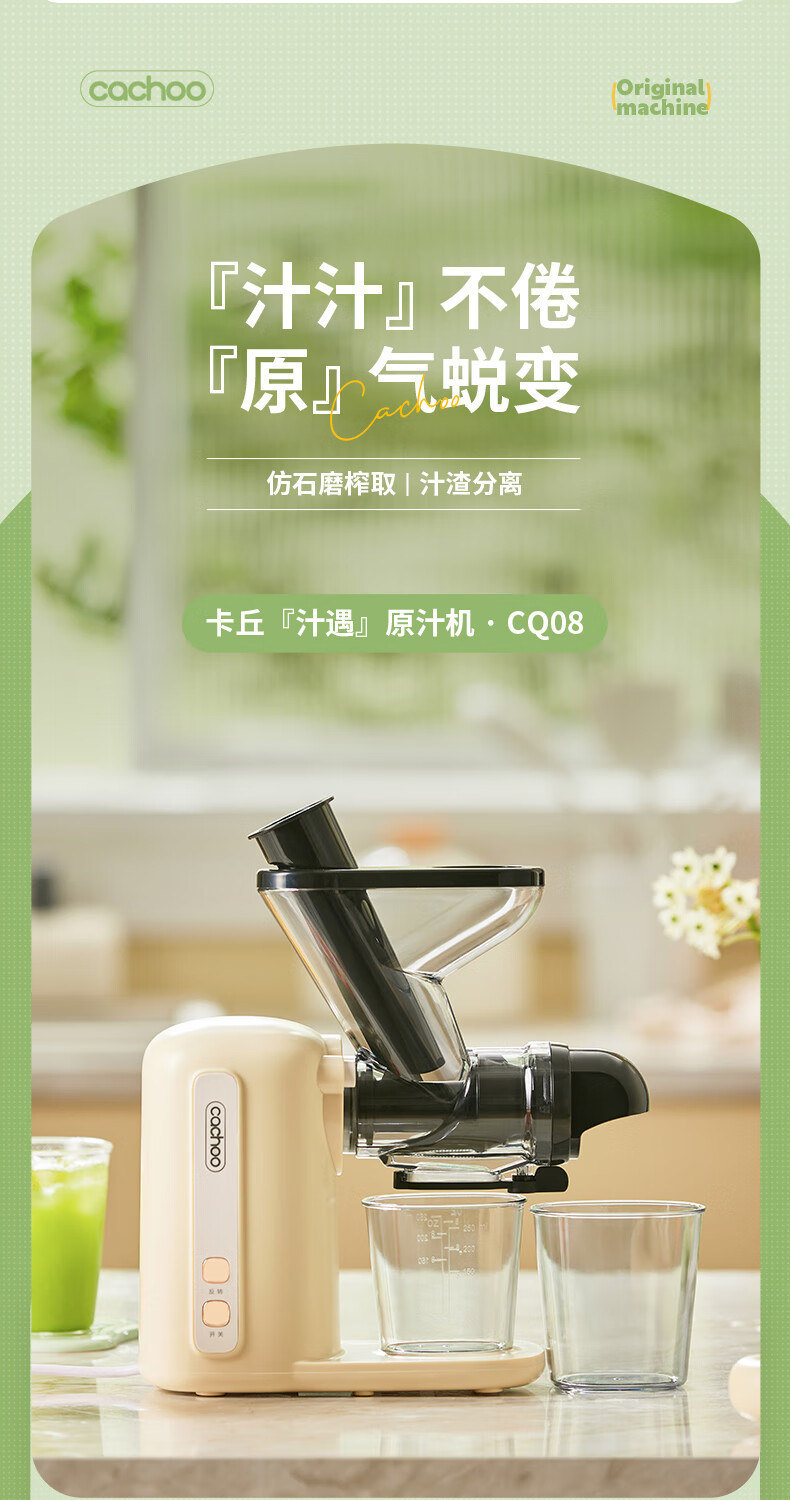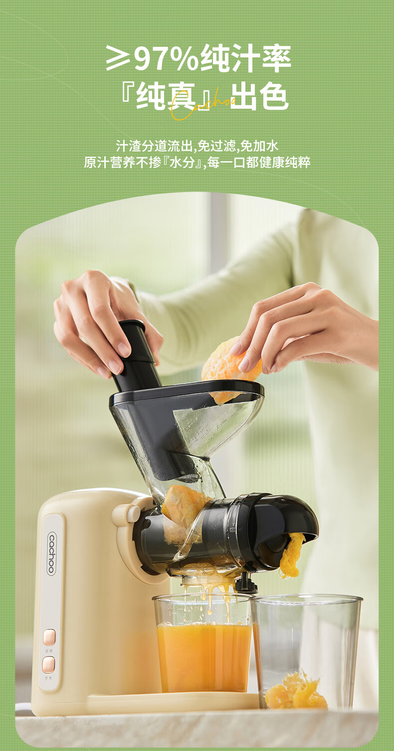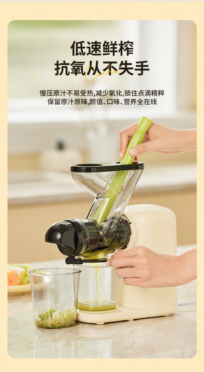 CACHOO 卡丘原汁机榨汁机汁渣分离家用果蔬西芹榨汁机迷你小型双料口自动慢磨机原汁机 心选到家