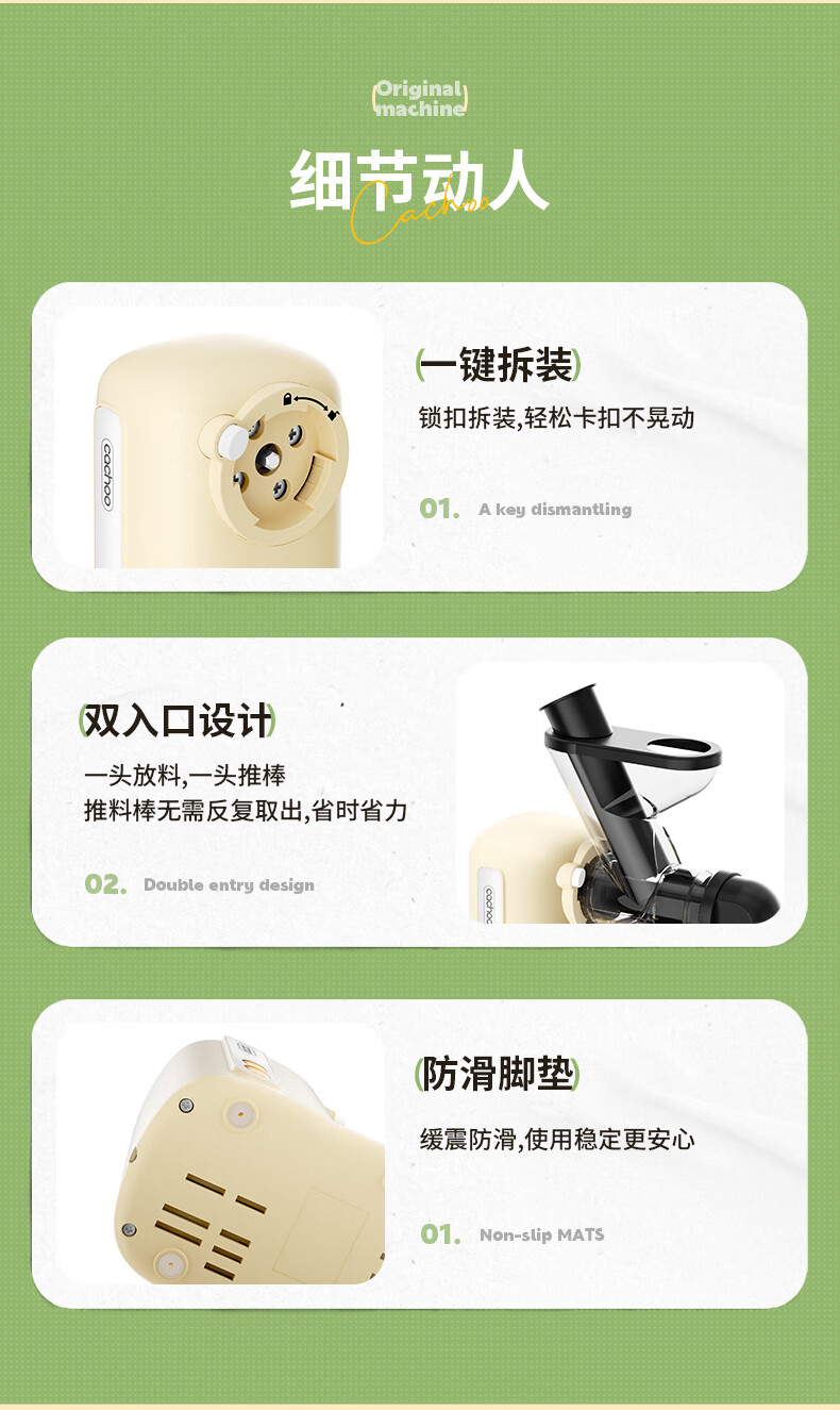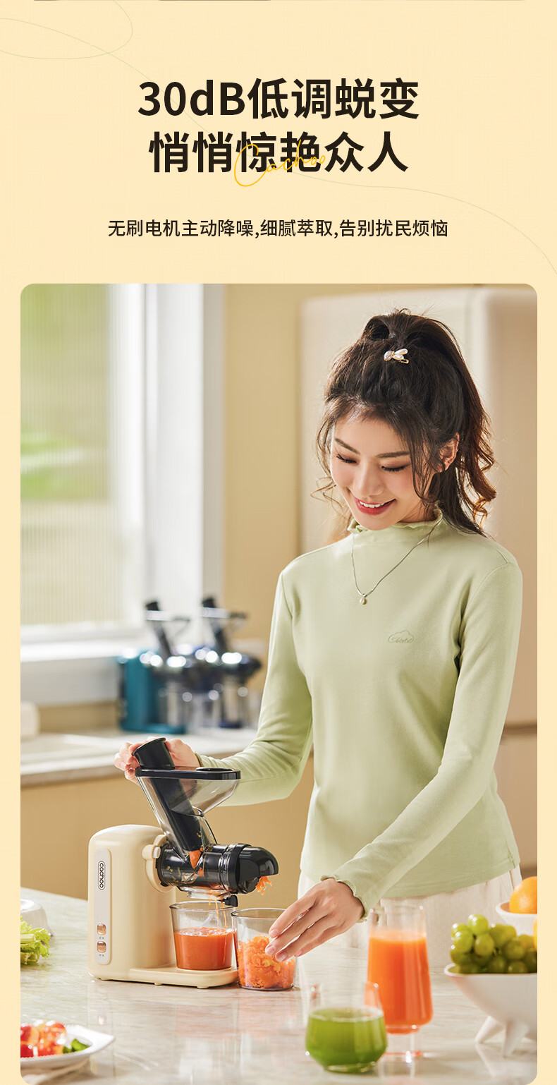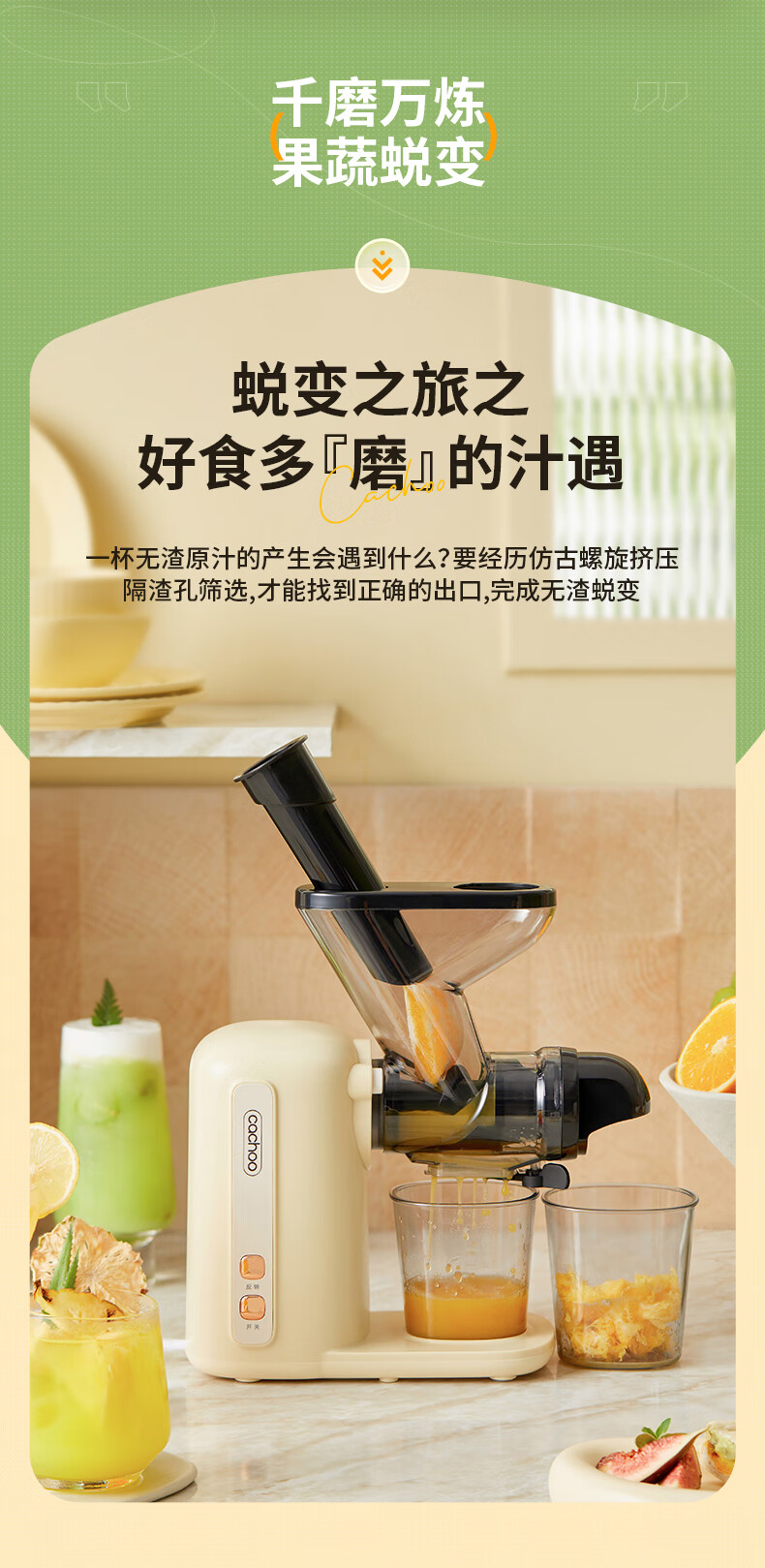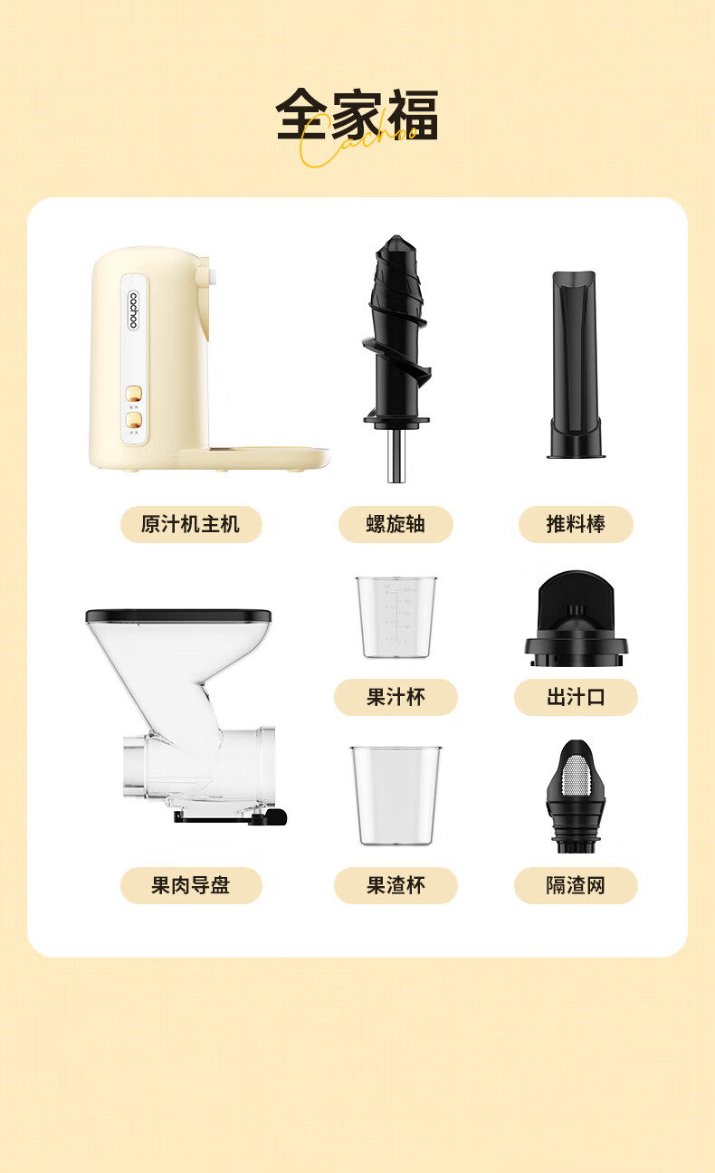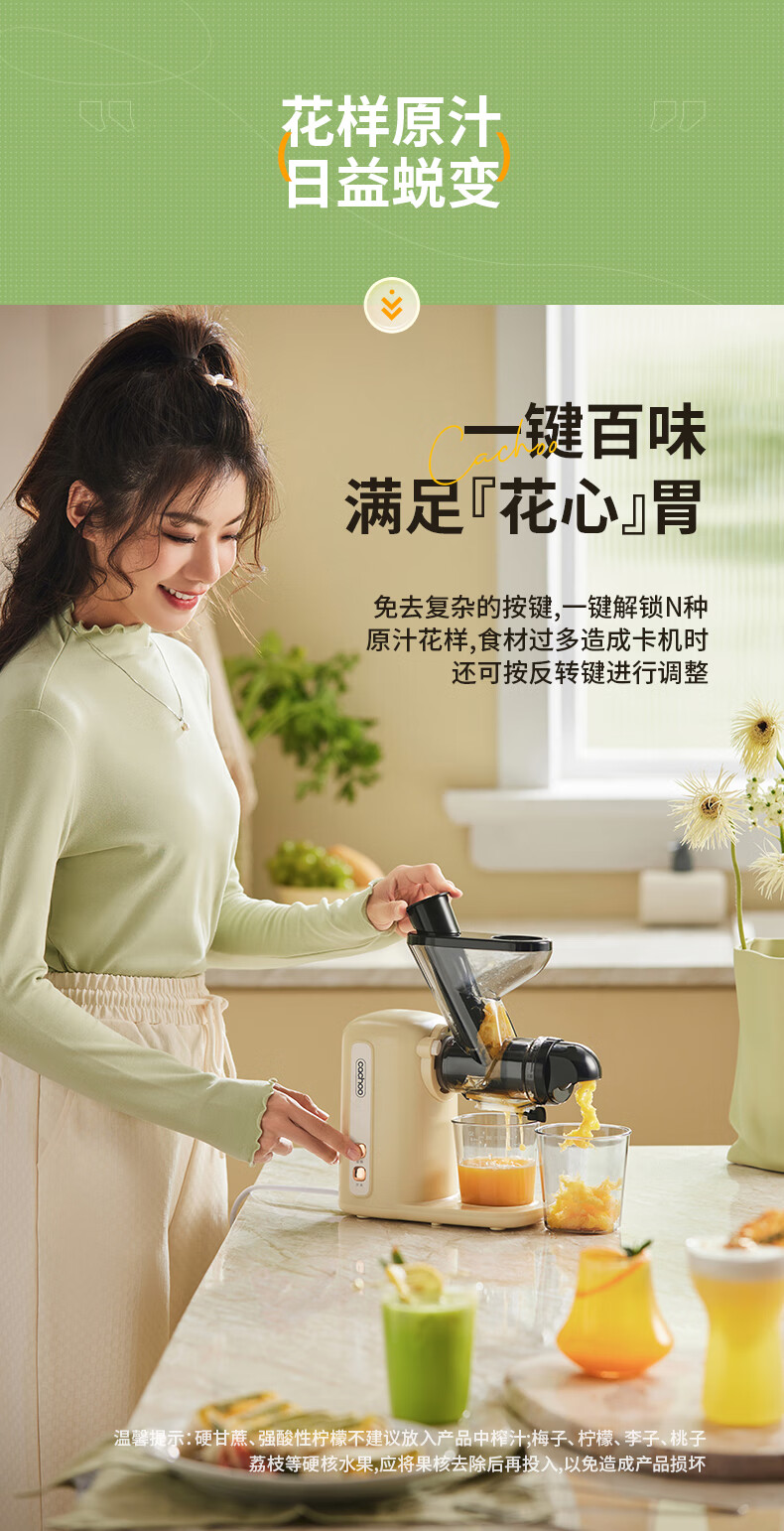 CACHOO 卡丘原汁机榨汁机汁渣分离家用果蔬西芹榨汁机迷你小型双料口自动慢磨机原汁机 心选到家
