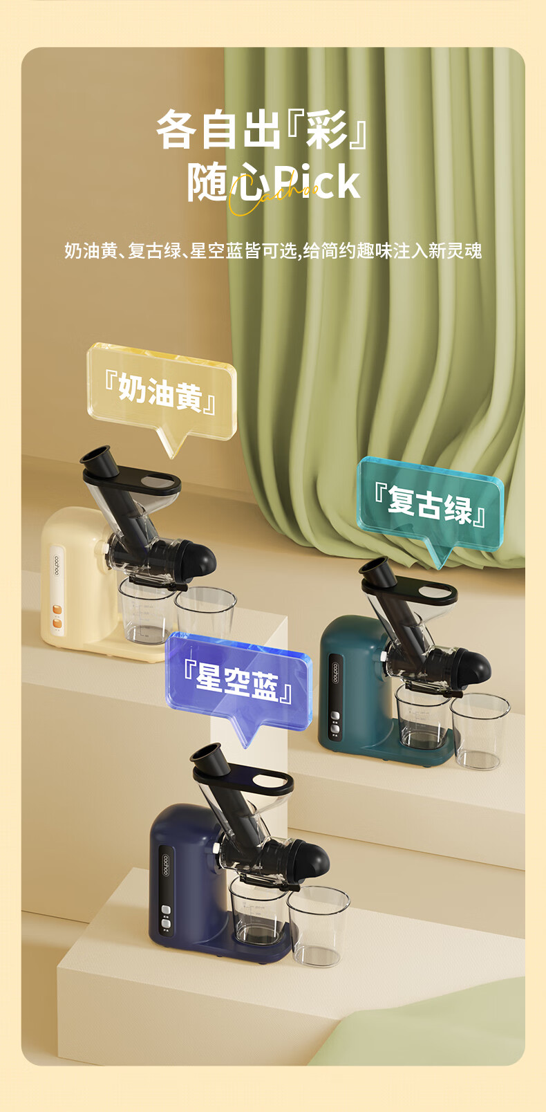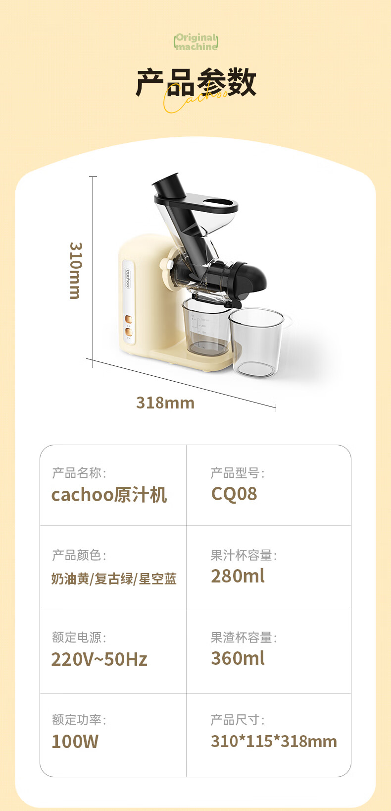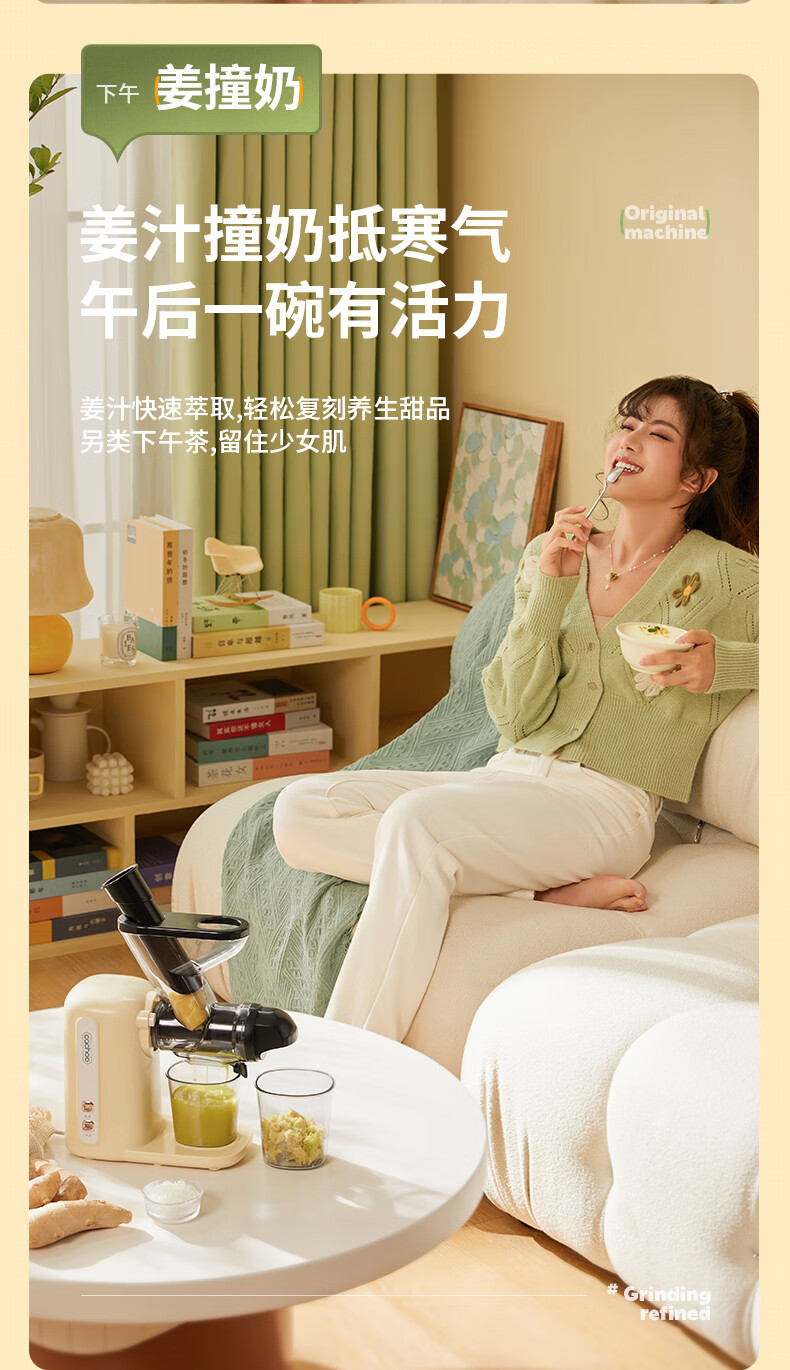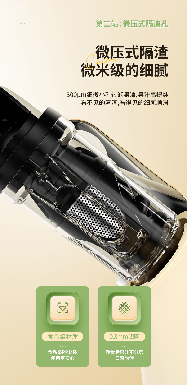 CACHOO 卡丘原汁机榨汁机汁渣分离家用果蔬西芹榨汁机迷你小型双料口自动慢磨机原汁机 心选到家
