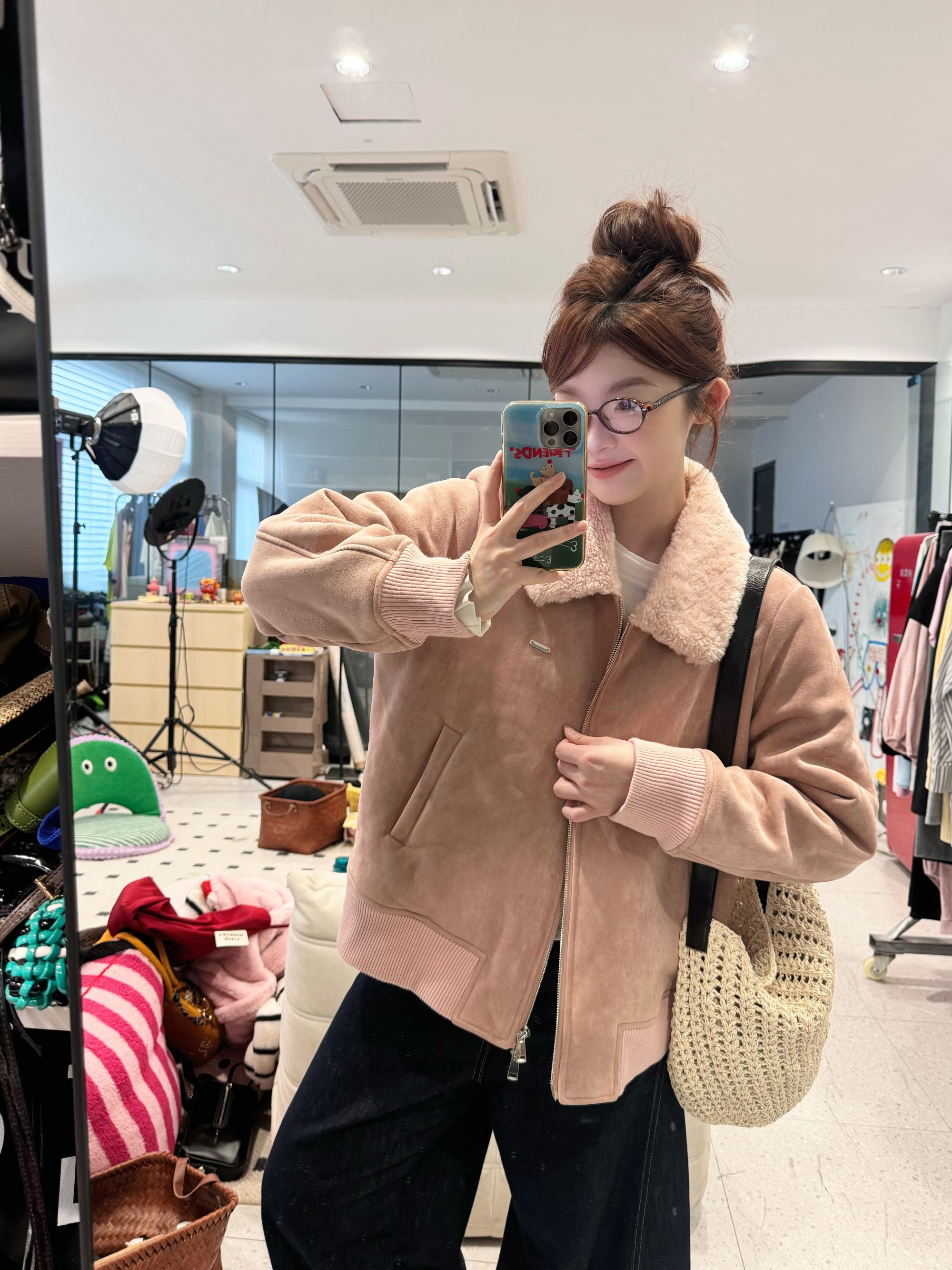 25AW上新【现货折上95折】 蕾蕾同款【冬日序言】气质麂皮绒羔羔毛翻领夹克外套冬季短款
