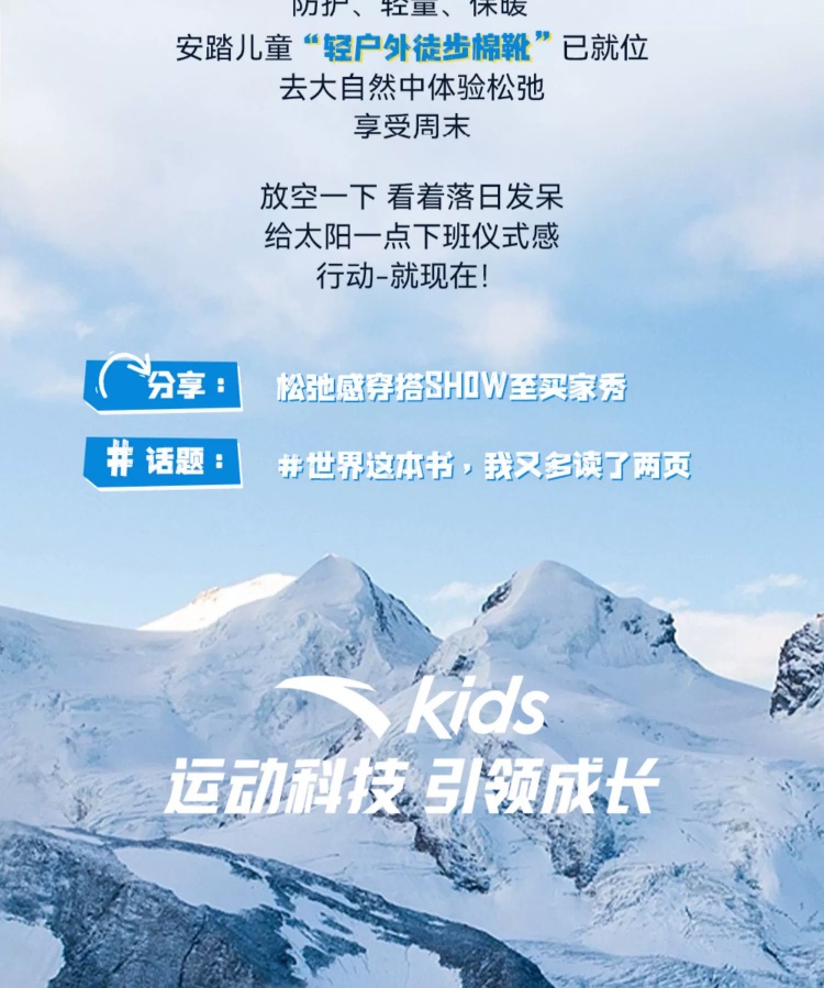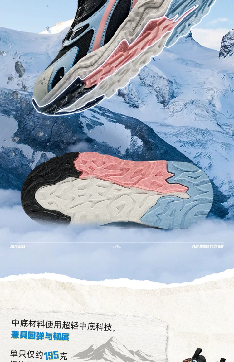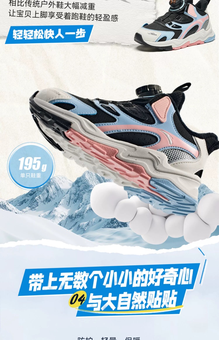 安踏儿童女童加绒保暖运动二棉鞋童鞋冬季女孩雪地靴小童跑步鞋子A22449939