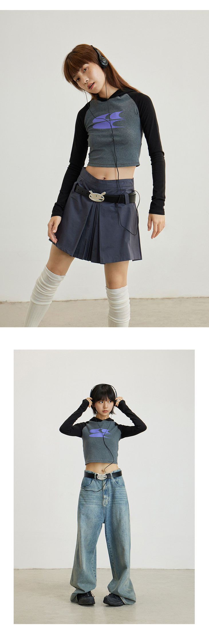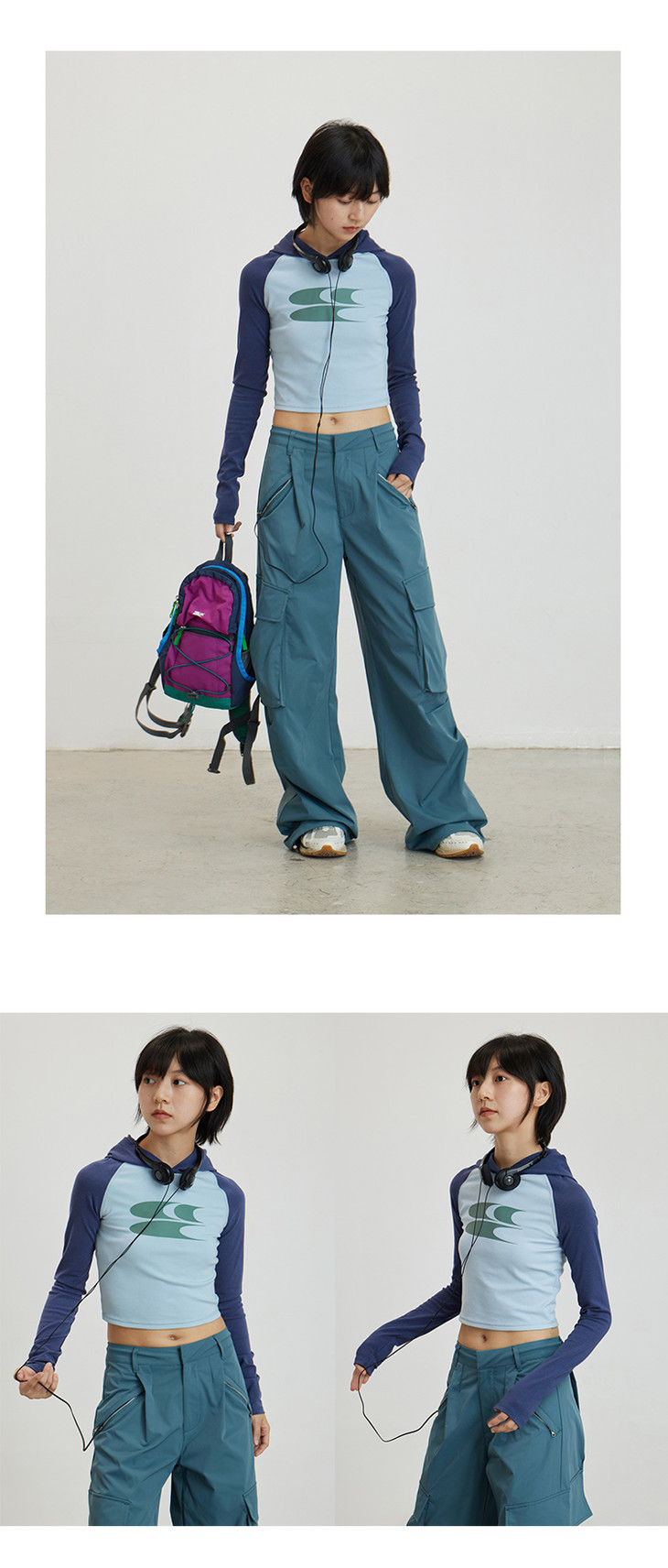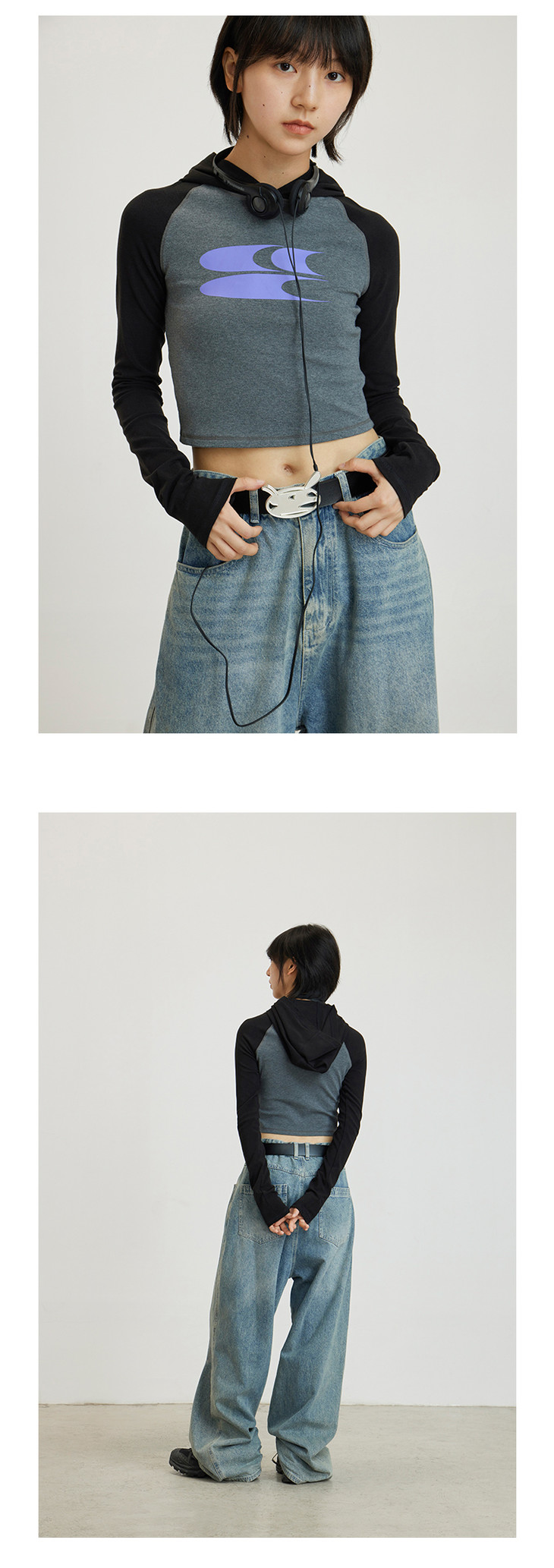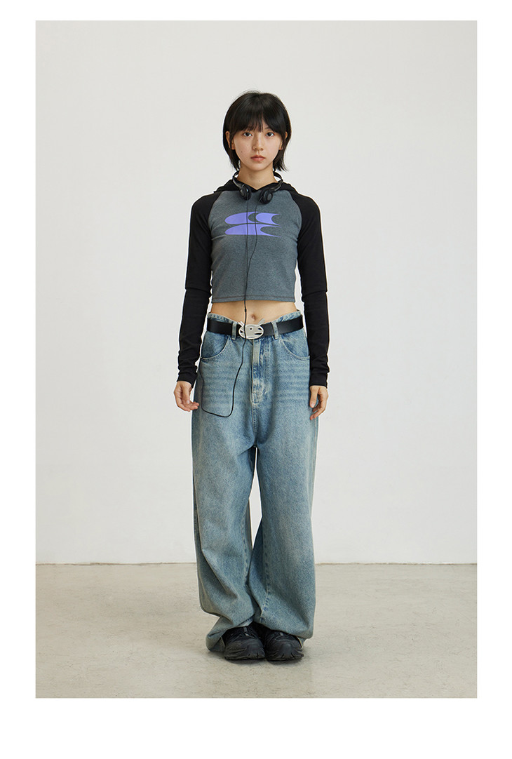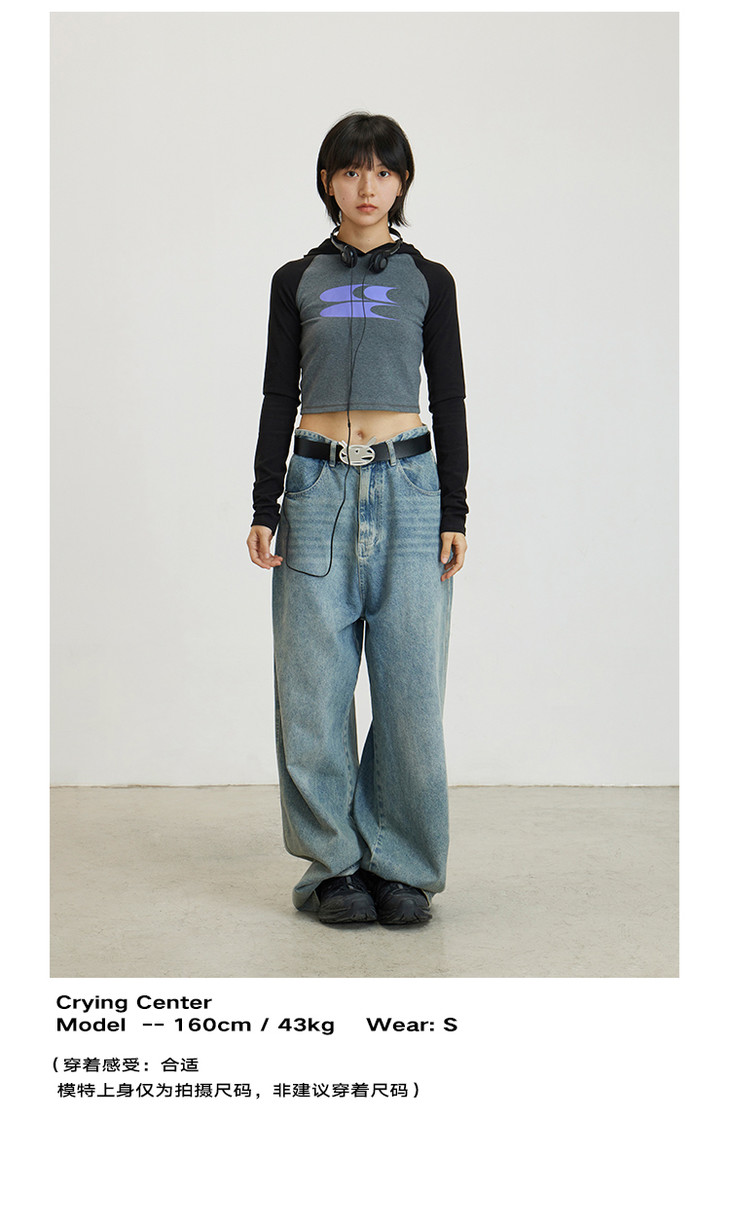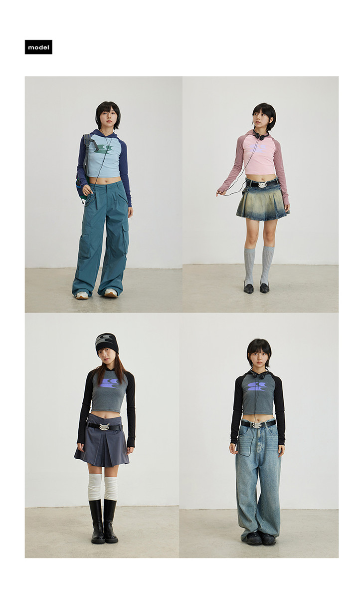 CryingCenter 美式辣妹撞色插肩袖连帽紧身长袖LOGO tee 哭喊中心