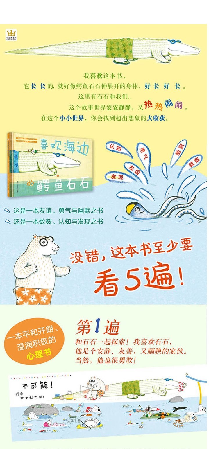 喜欢海边的鳄鱼石石3-6岁儿童精装绘本幼儿园图画书友情社交培养法国作者的法式幽默故事书收获观察认知力勇气与友谊书
