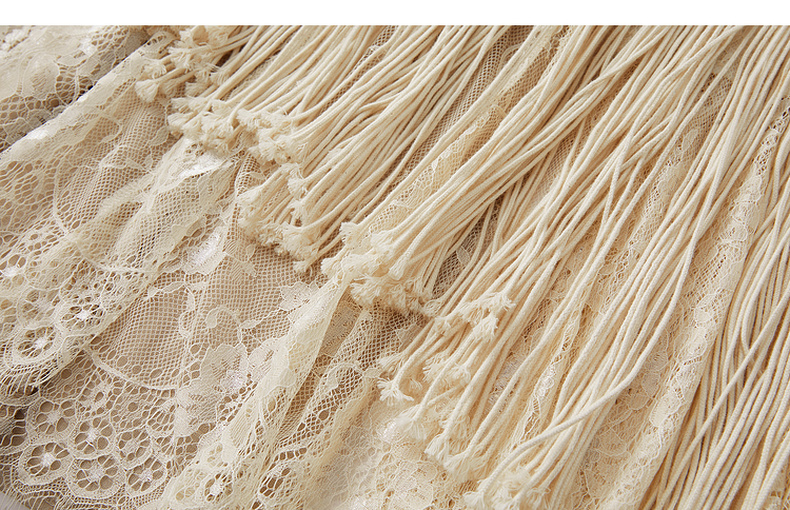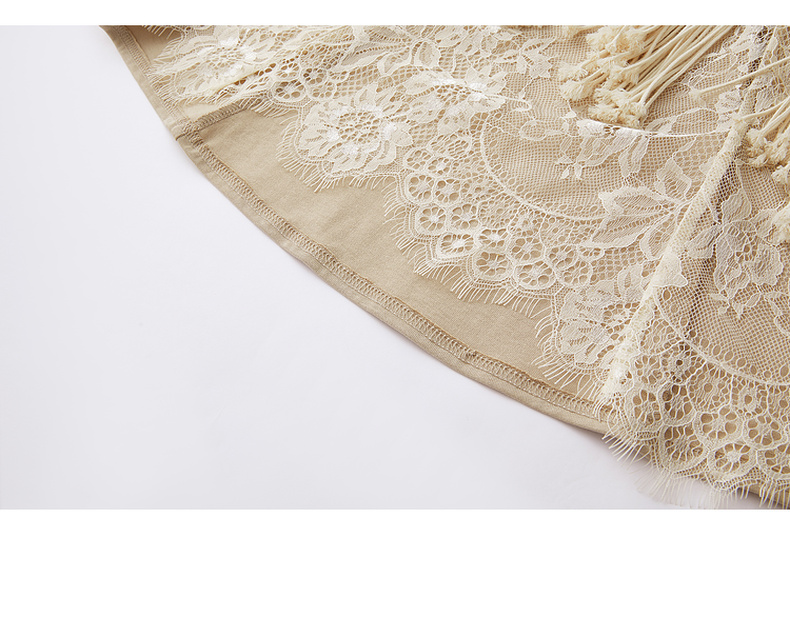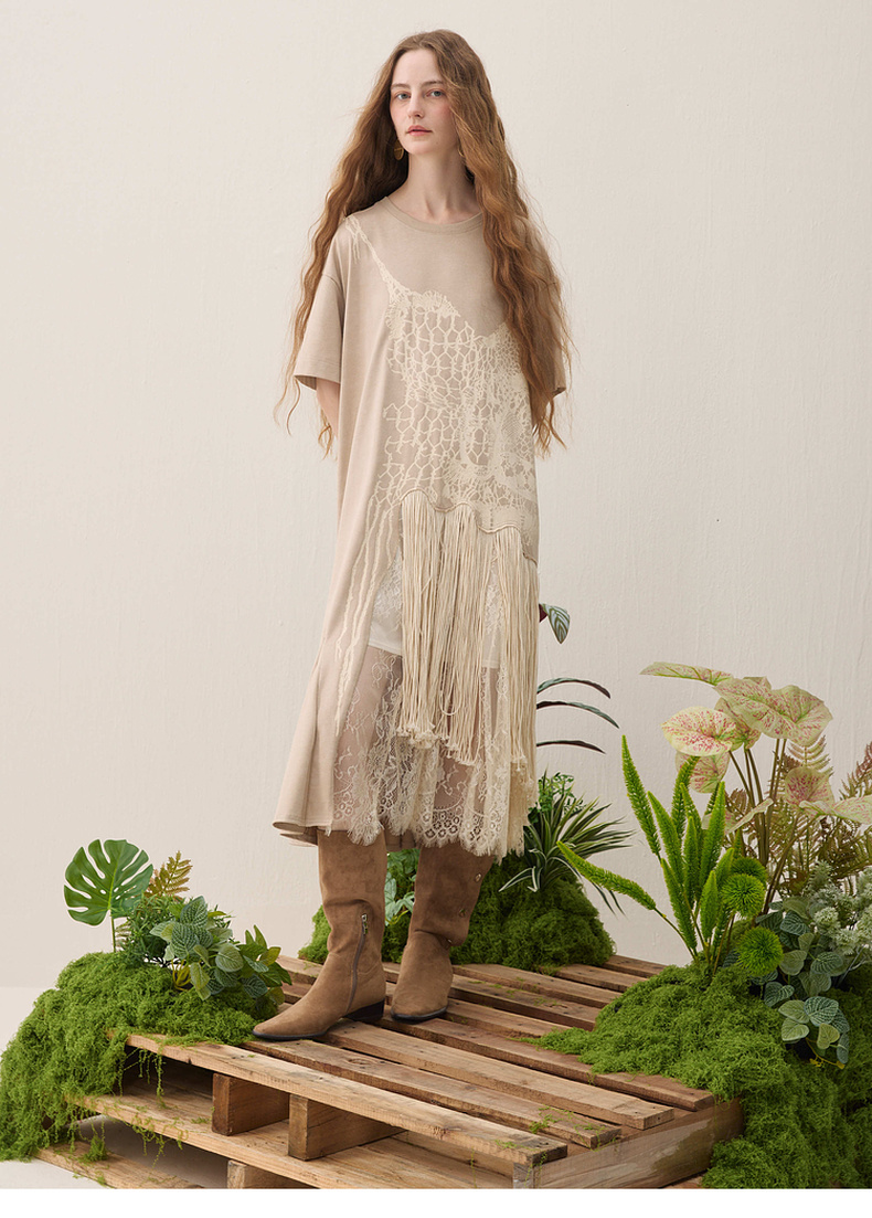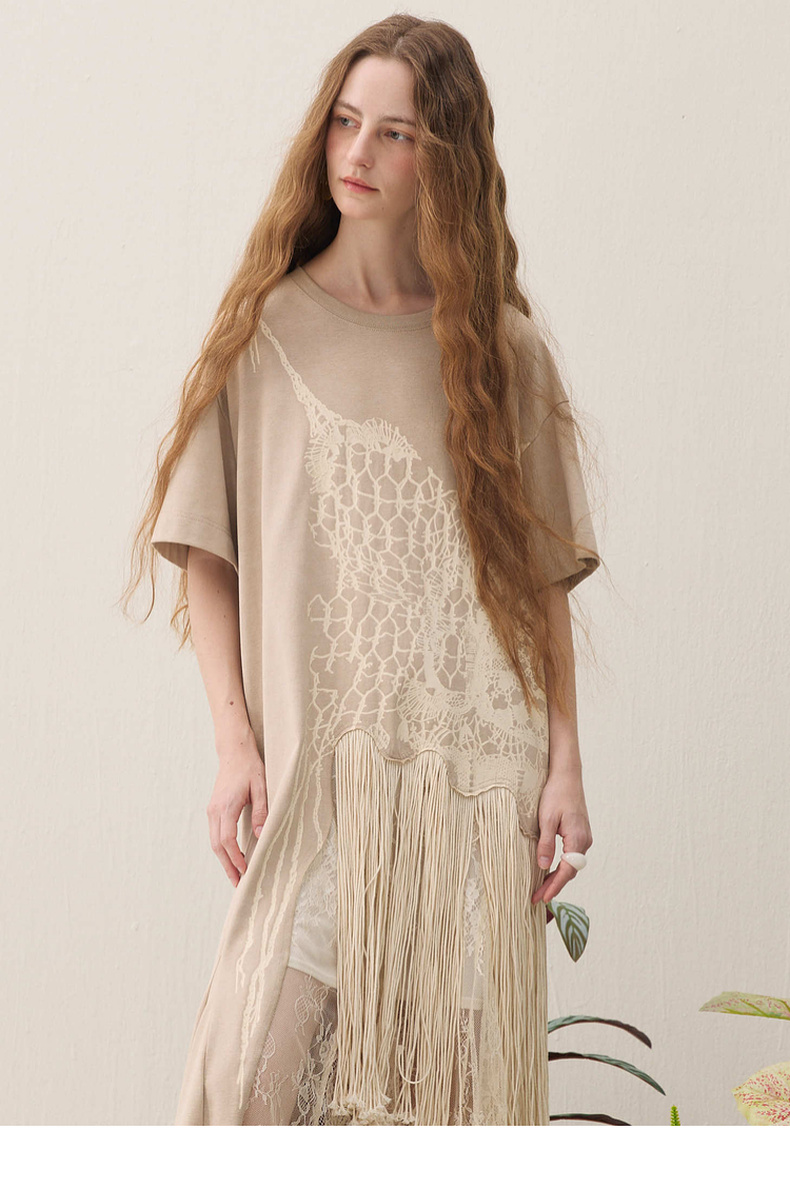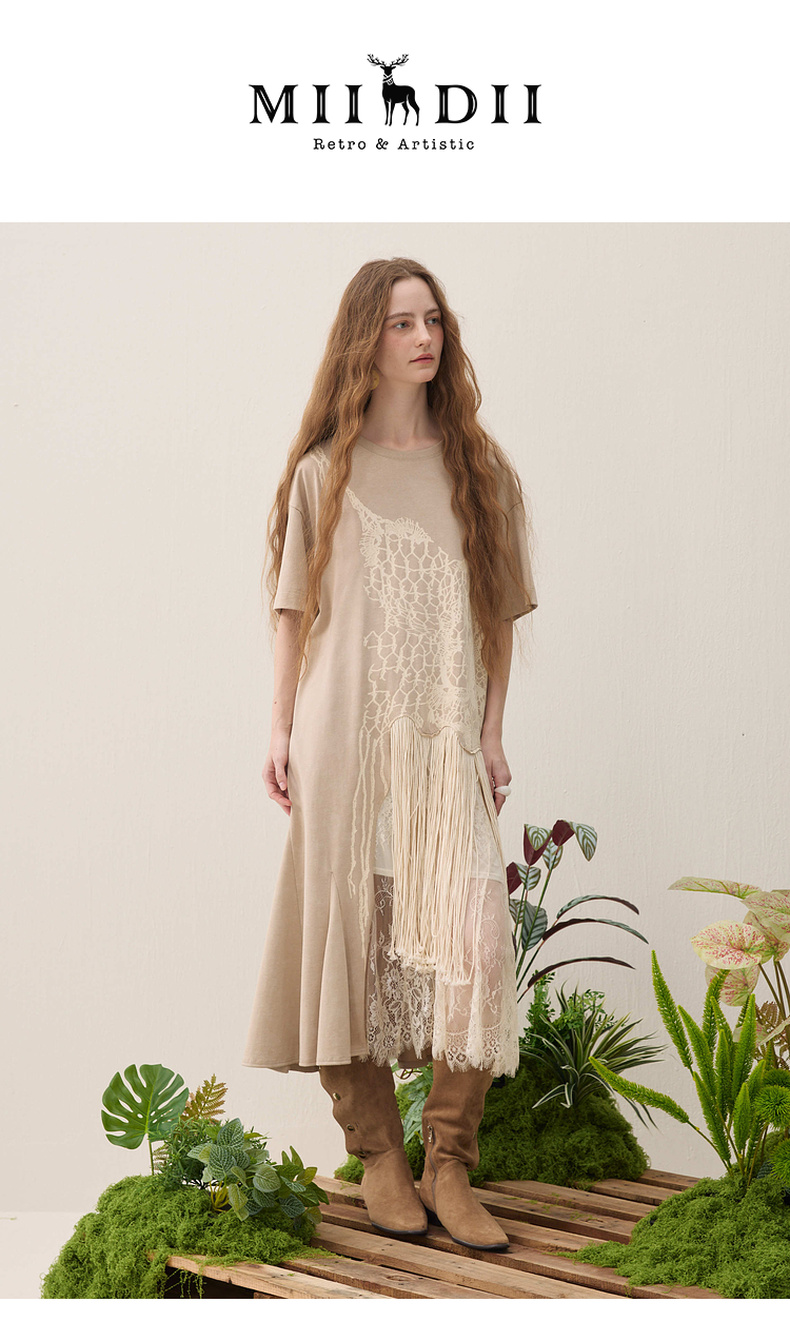 谜底连衣裙短袖2026年春季新品复古蕾丝流苏拼接度假女261ML0026