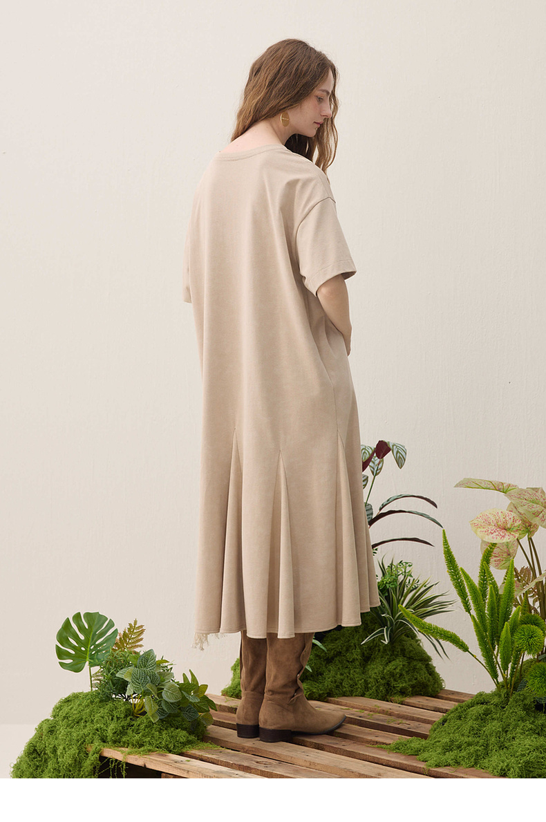 谜底连衣裙长袖2026春季新品A型中长抽绳荷叶边衬衫裙女261ML0080