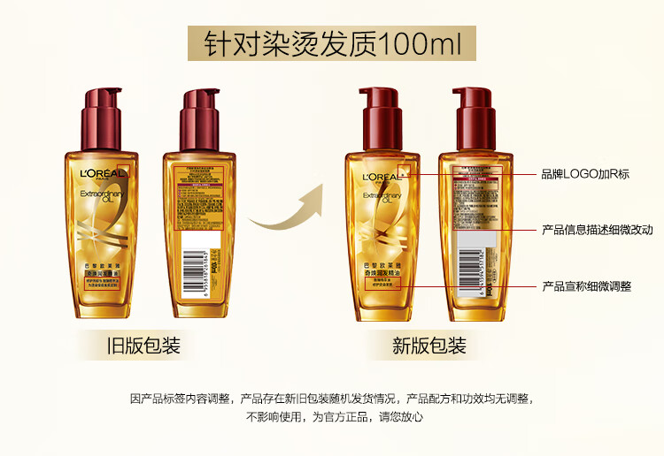 欧莱雅 奇焕润发精油 烫染受损发质(小红盖)100ml