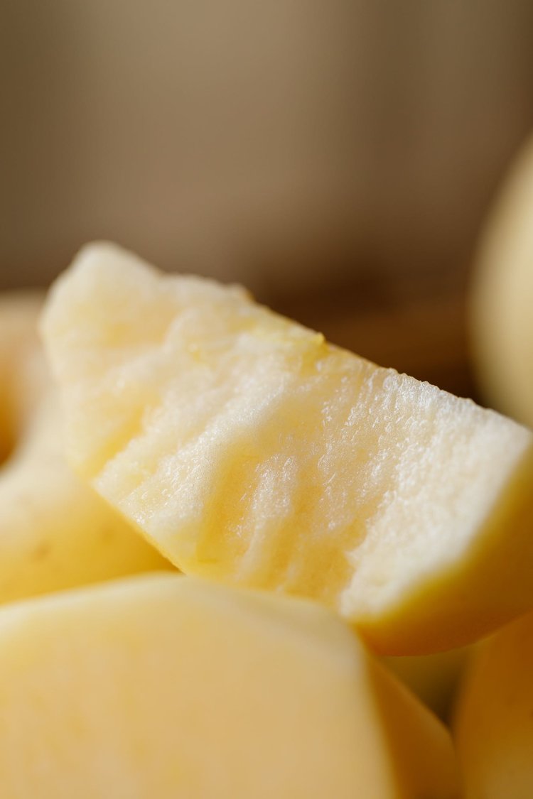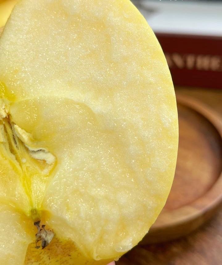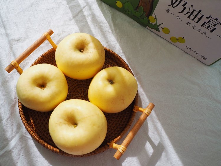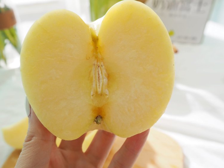 · 黄金奶油富士的皮薄如蝉翼,吃起来几乎没有什么存在感,完全可以大口直接开啃,一口下去满满都是清脆的果肉。