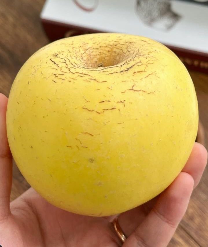 · 奶油富士表面有星星点点的果锈,这也是专属它的独有特点。