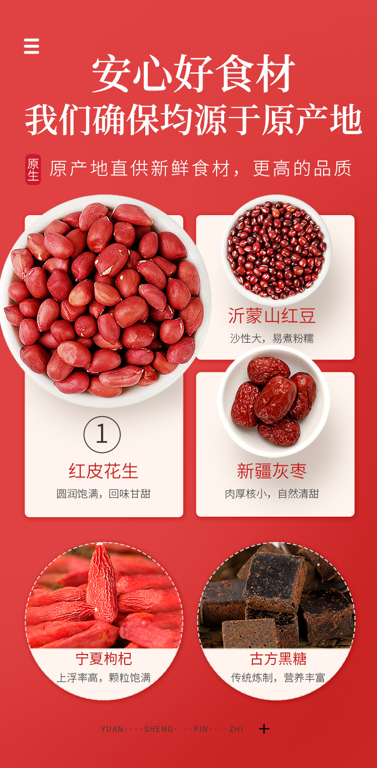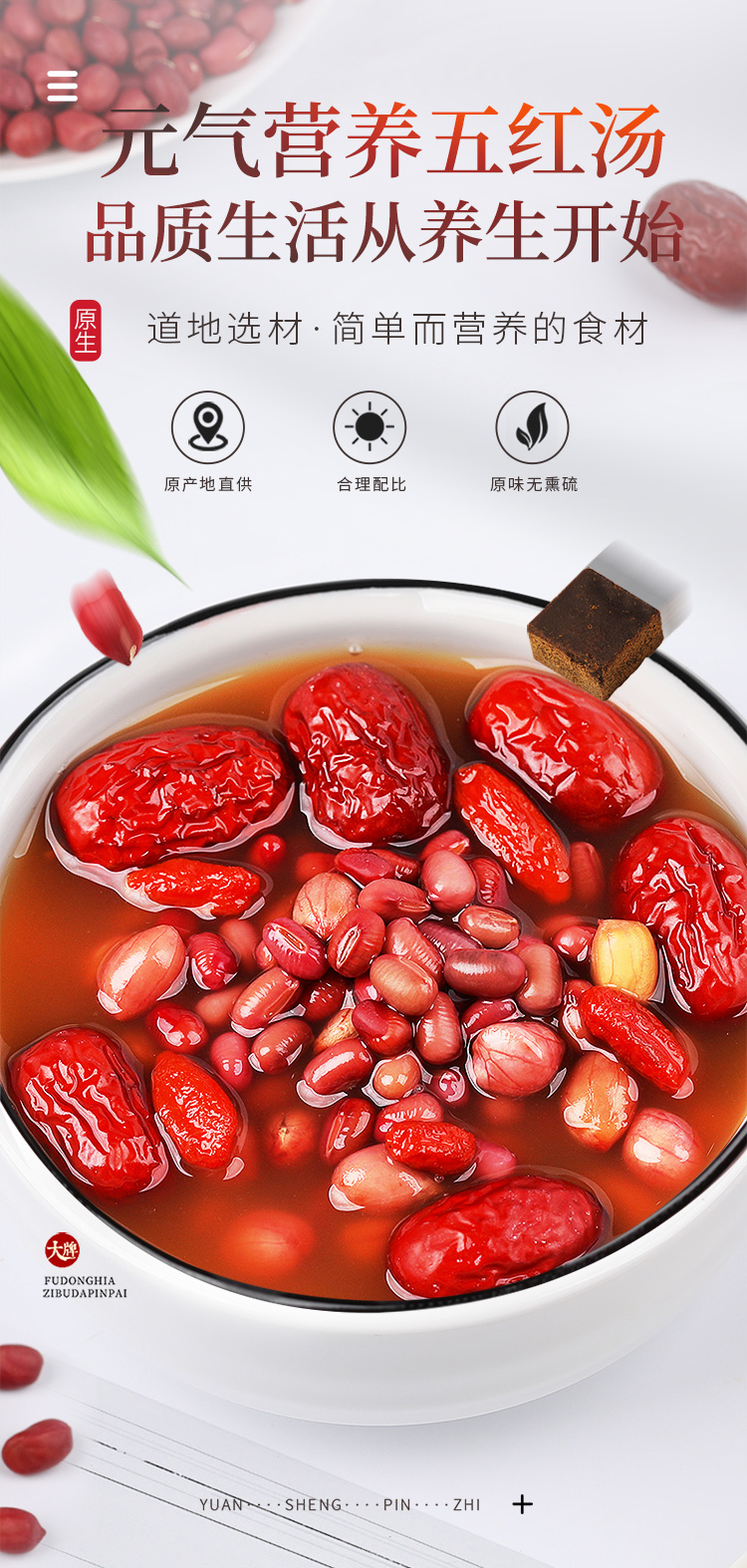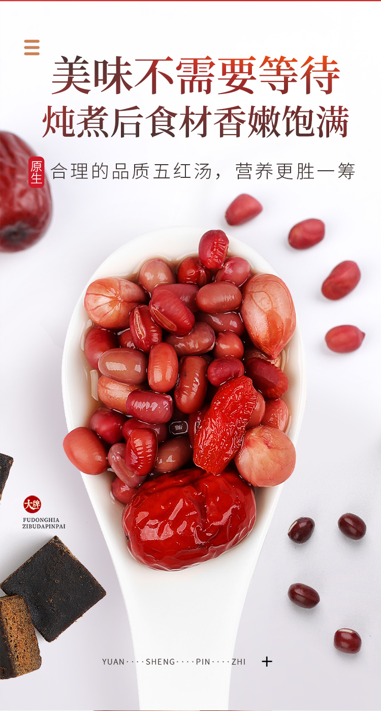 优选丨福东海 五红汤料1000g/袋 红皮花生红豆红糖红枣枸杞材料包 煲汤料包 产后月子餐哺乳期养生粥