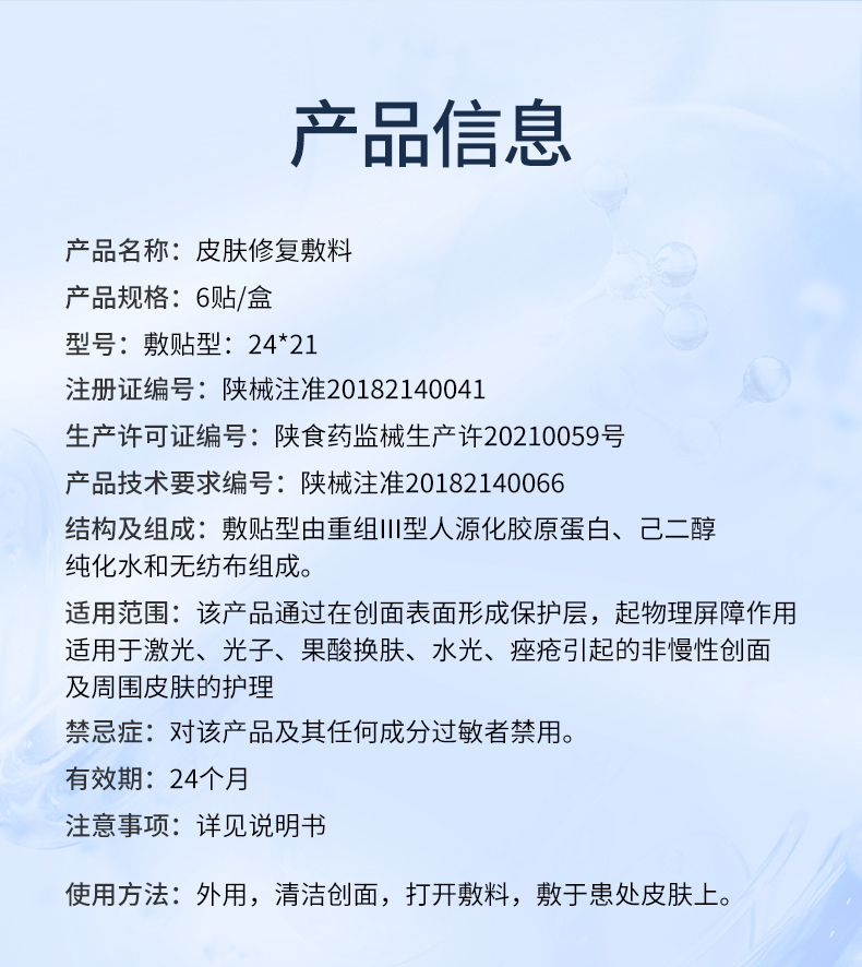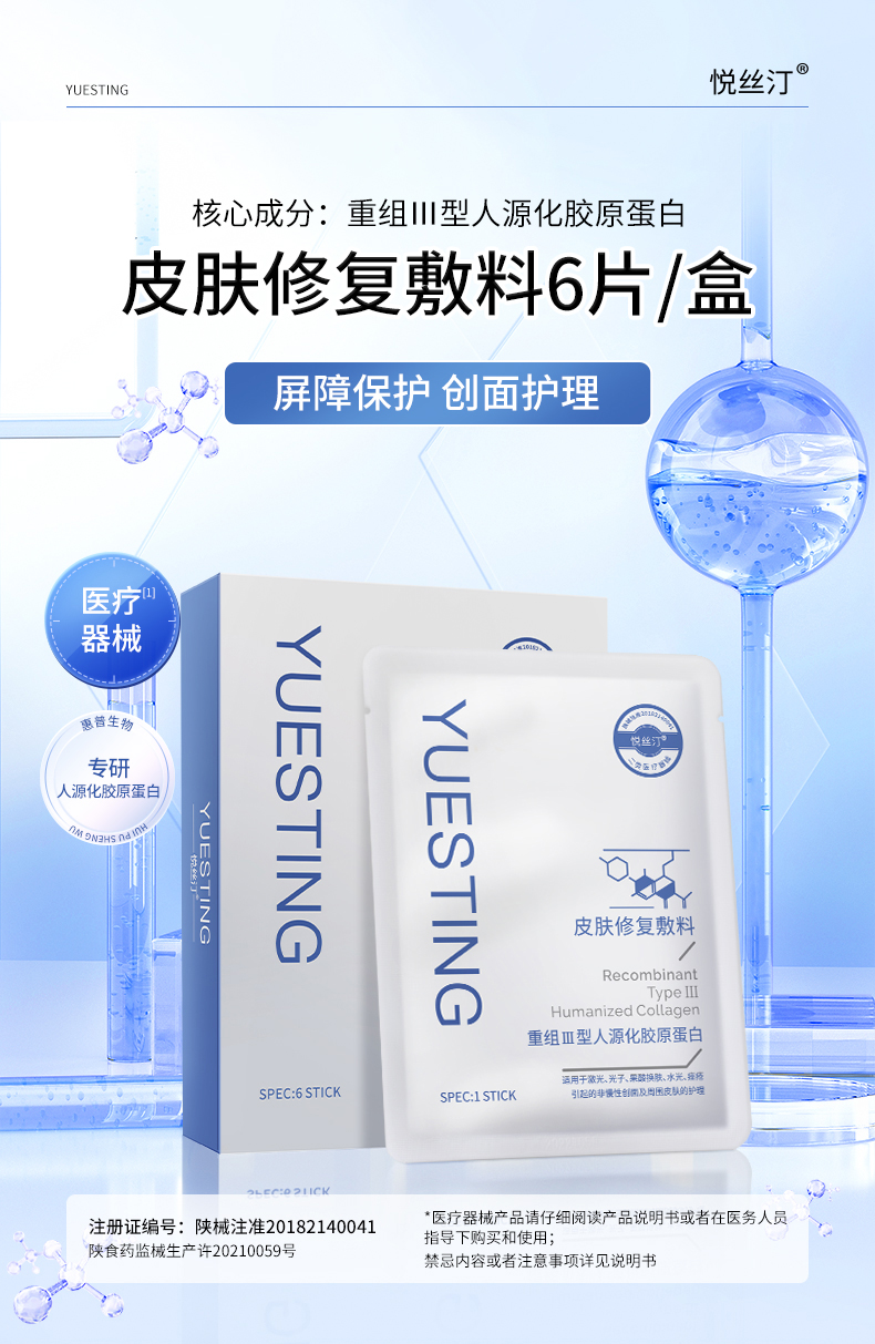 悦丝汀胶原蛋白皮肤修复医用敷料激光水光术后痤疮创面护理非面膜6片/盒