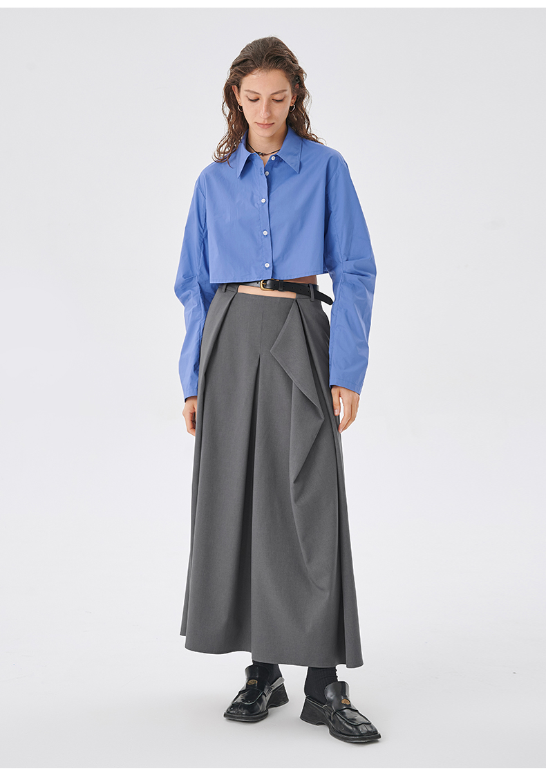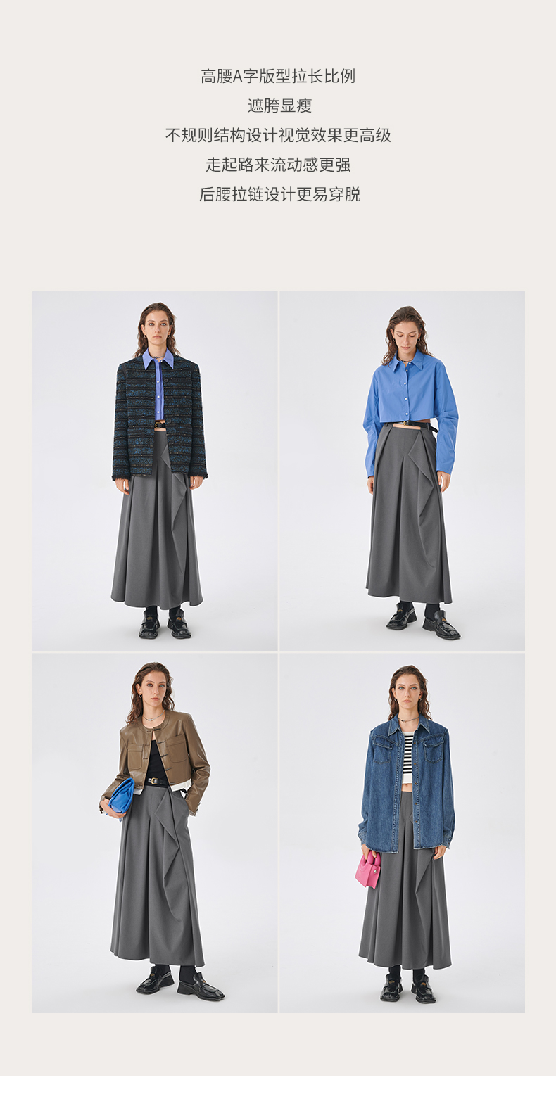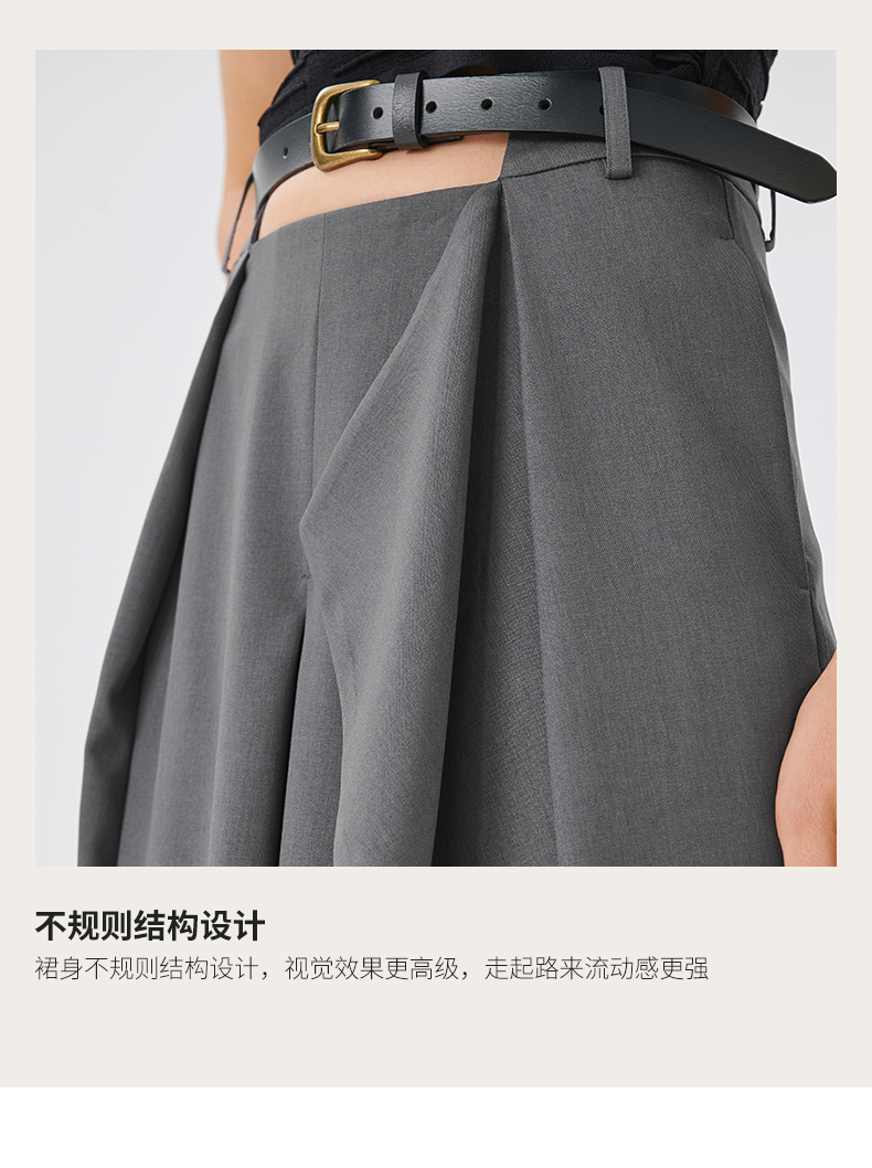 Self Who2023新款不规则结构A字半身裙高腰显瘦梭织垂坠凉感裙子