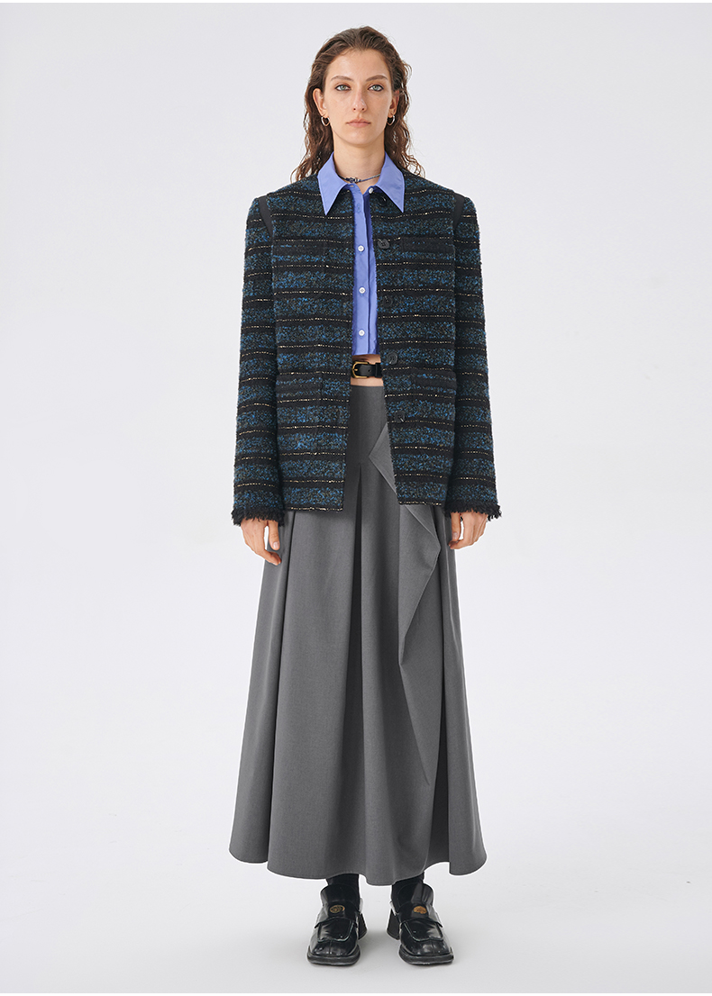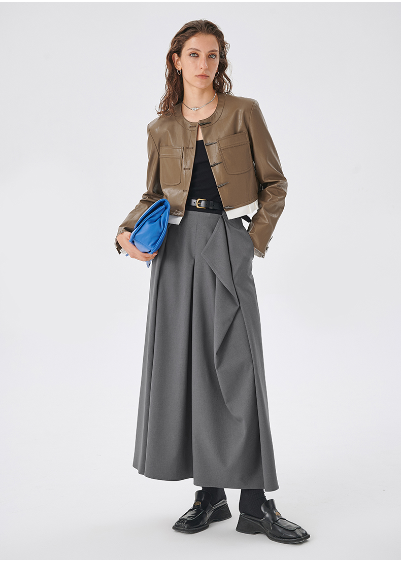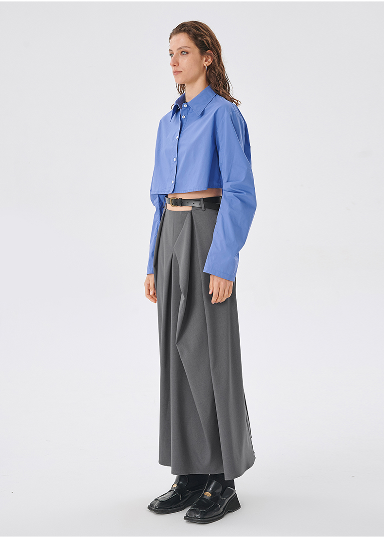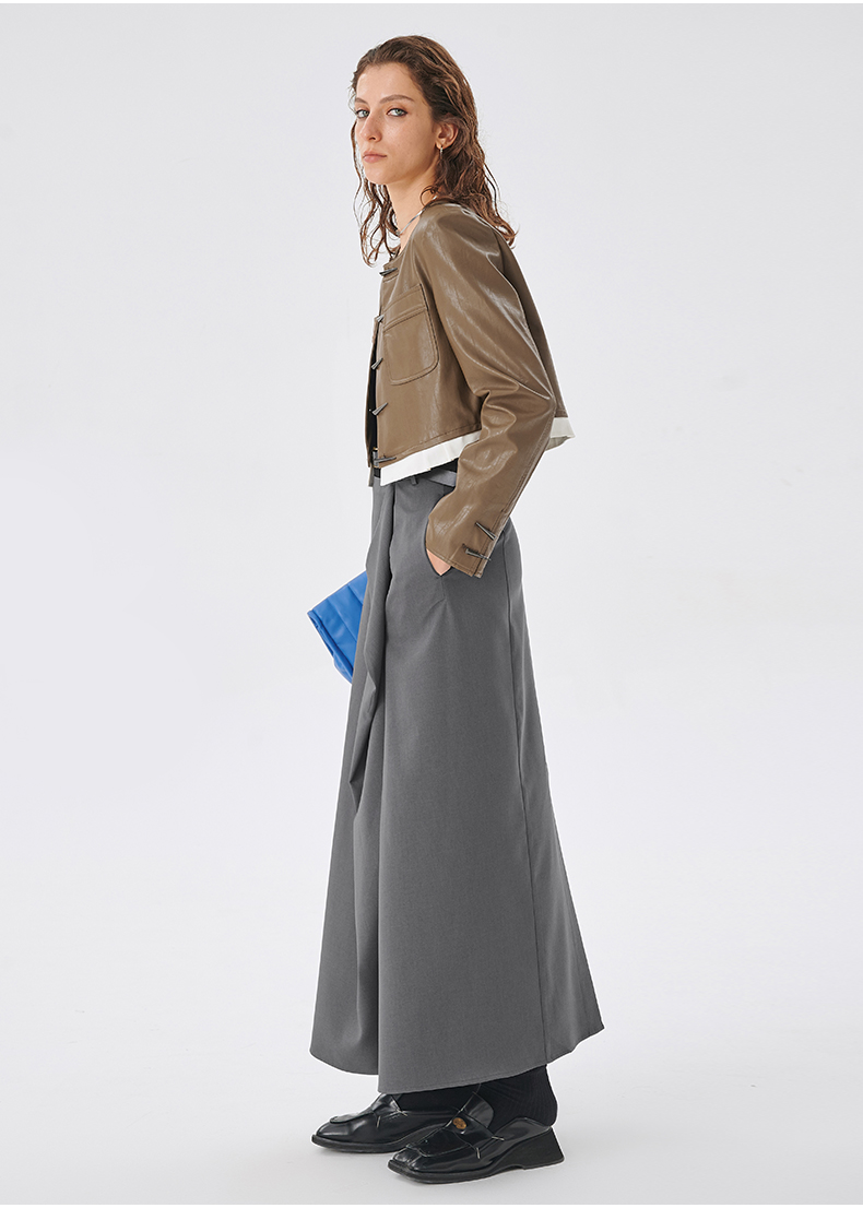 Self Who2023新款不规则结构A字半身裙高腰显瘦梭织垂坠凉感裙子