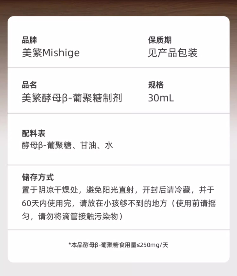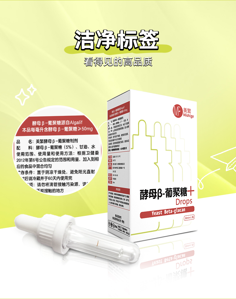 美繁Mishige酵母β-葡聚糖制剂液体滴剂30ml配方纯净无敏原料选自冰岛50mg/ml葡聚糖