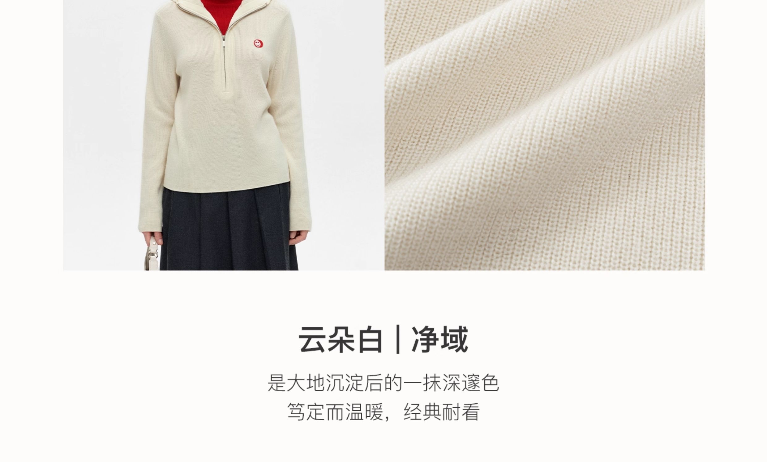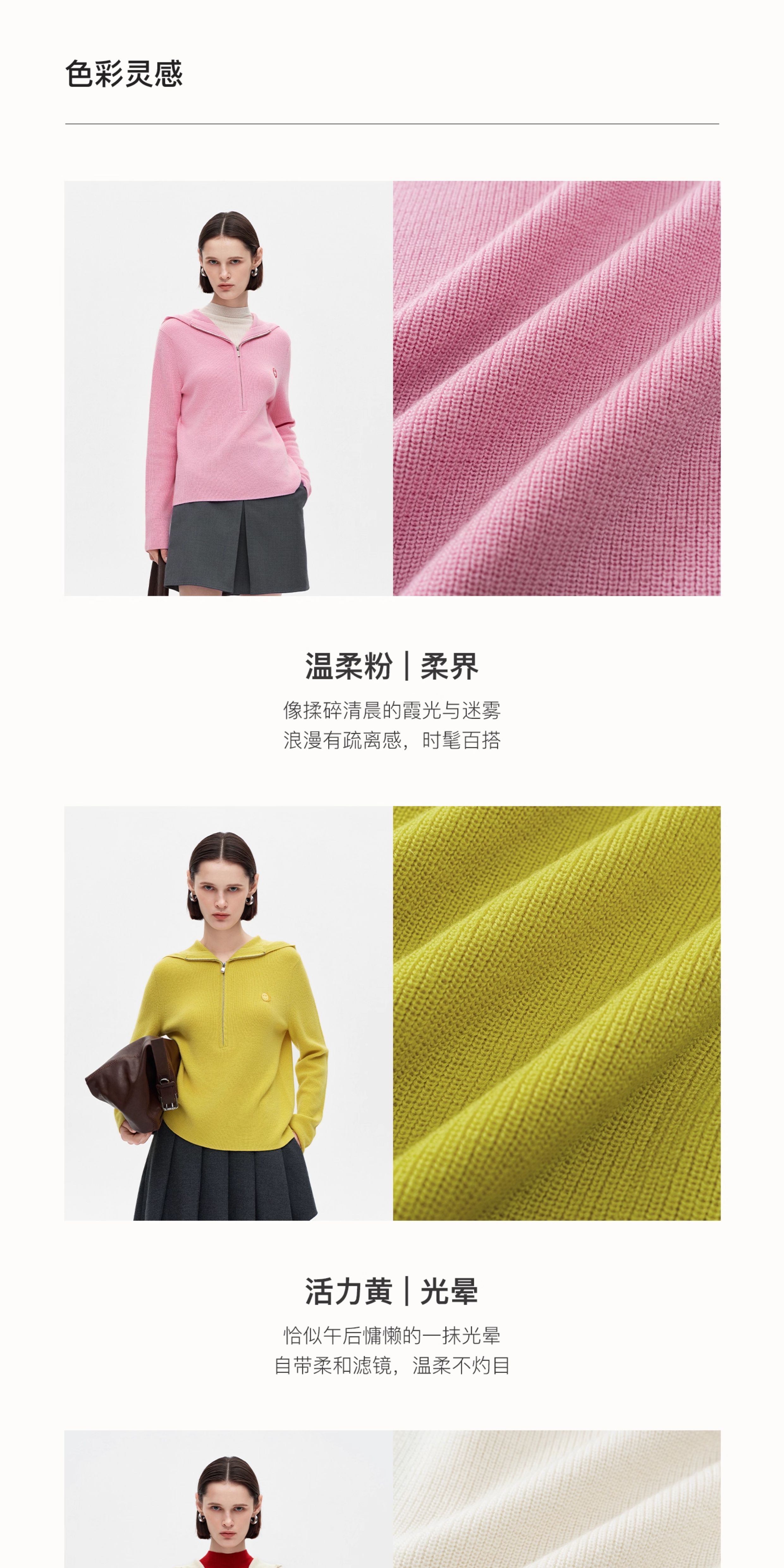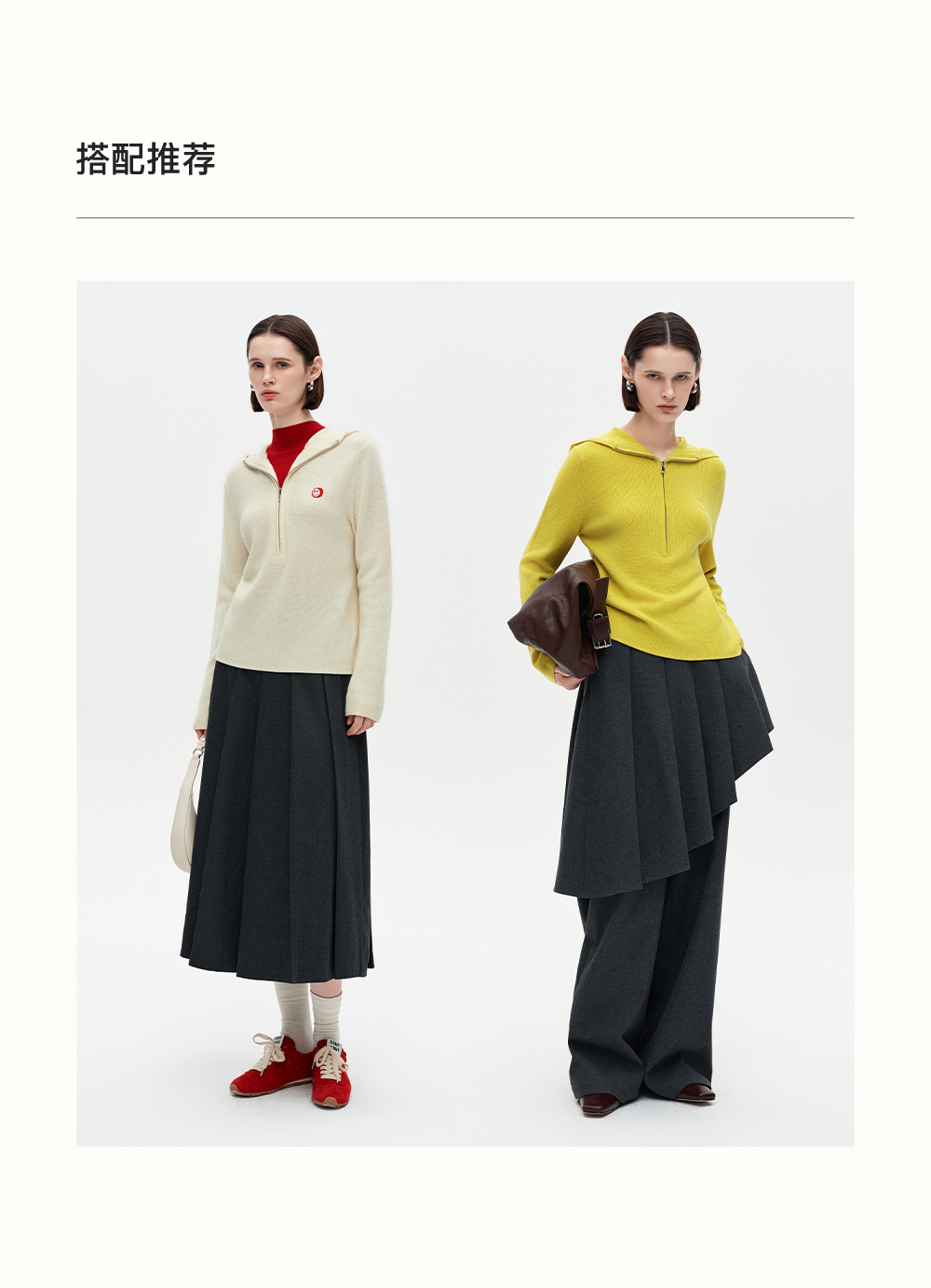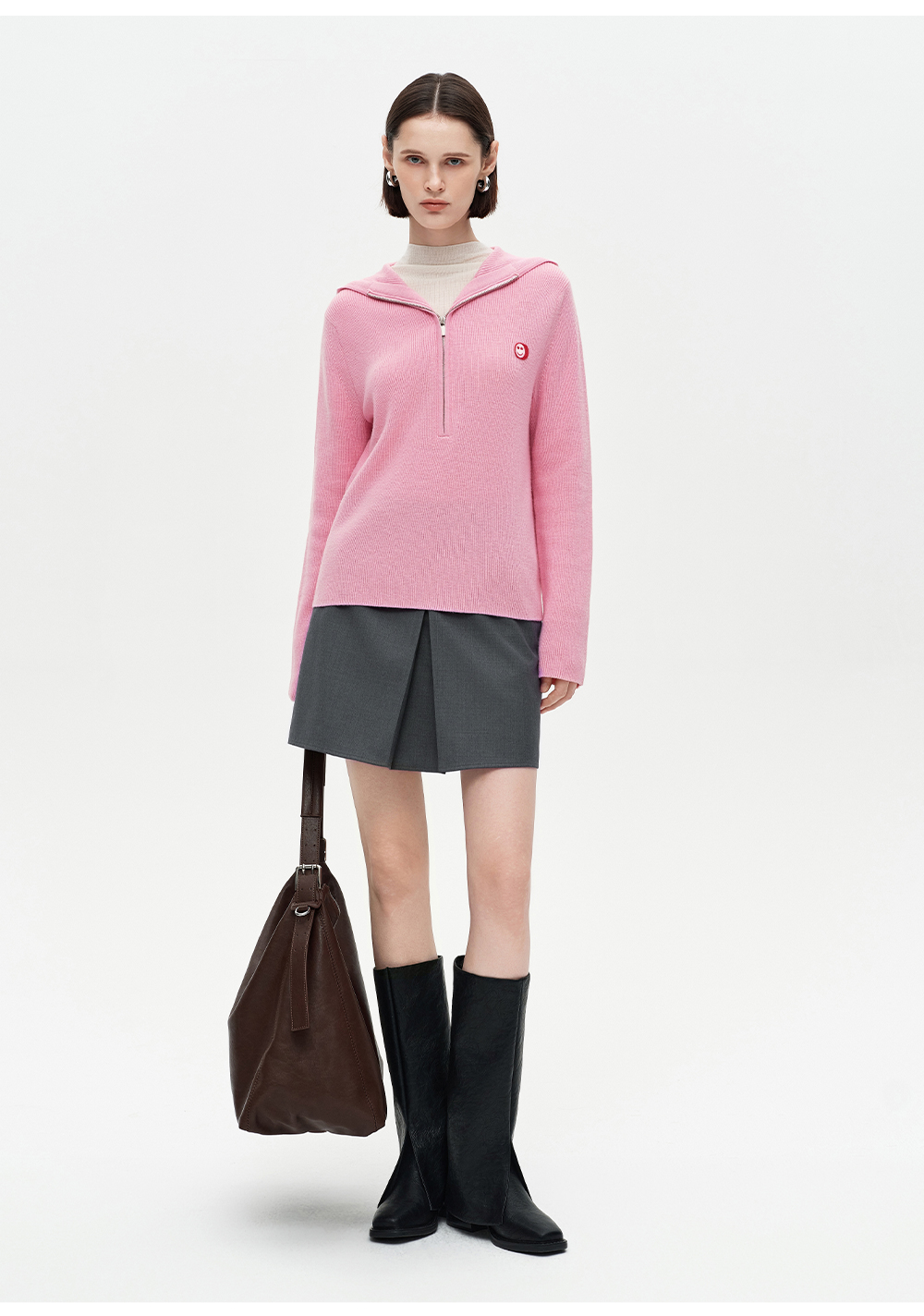 SELFWHO100%绵羊毛半拉链笑脸针织衫女2026春新款毛织连帽衫上衣