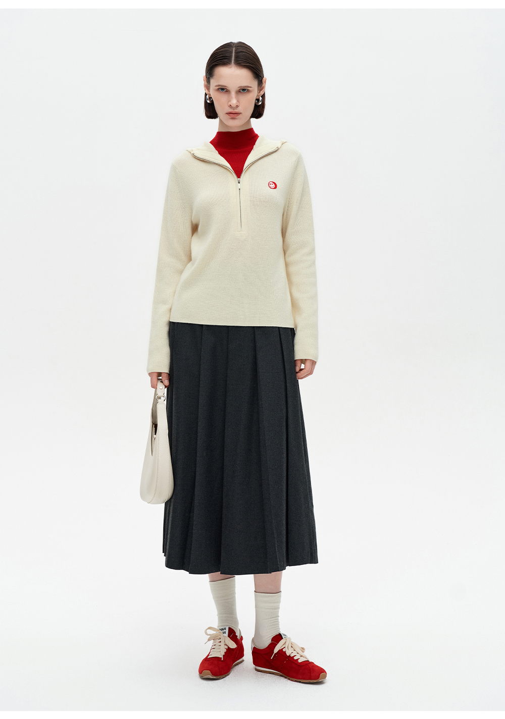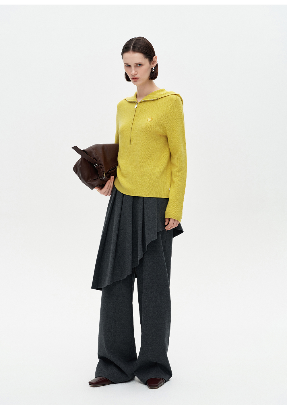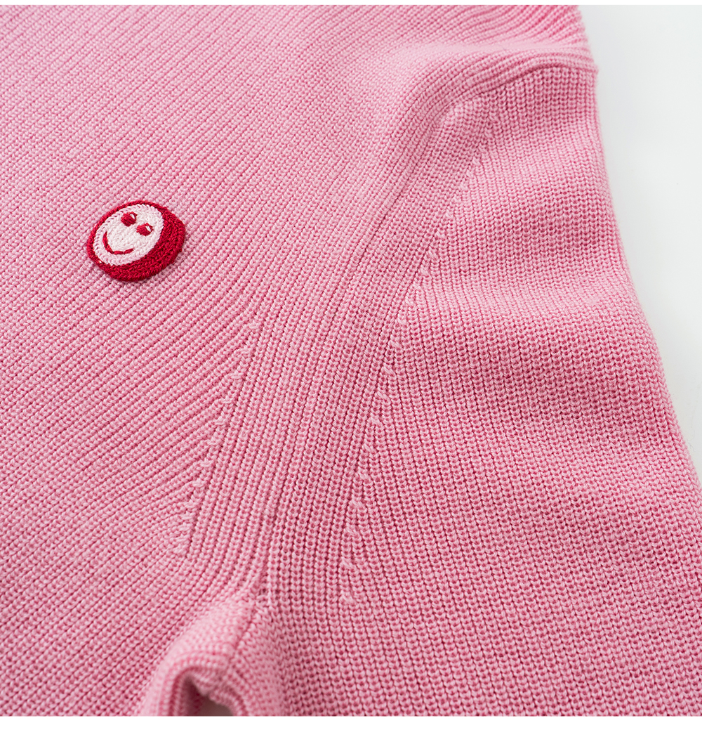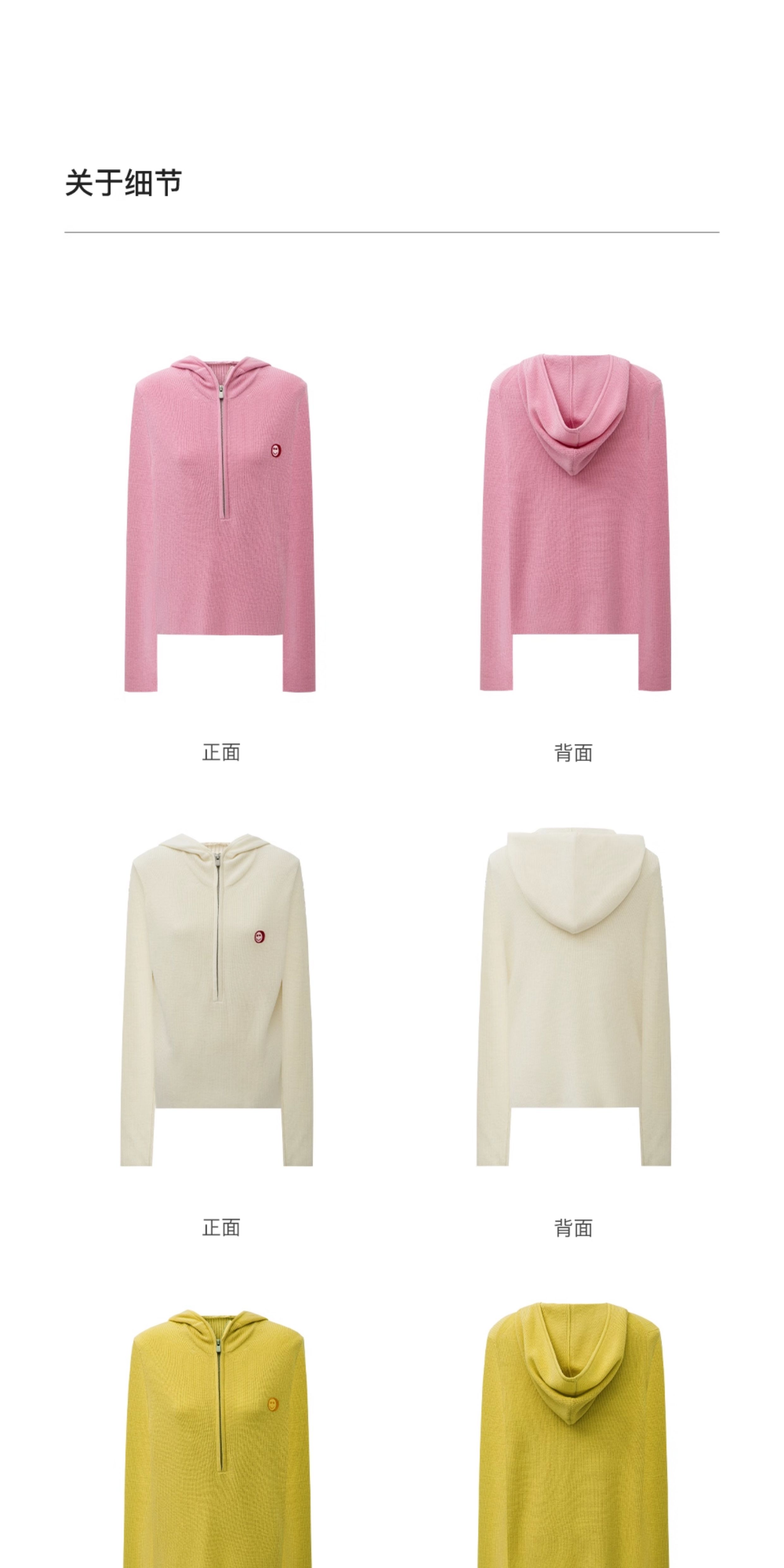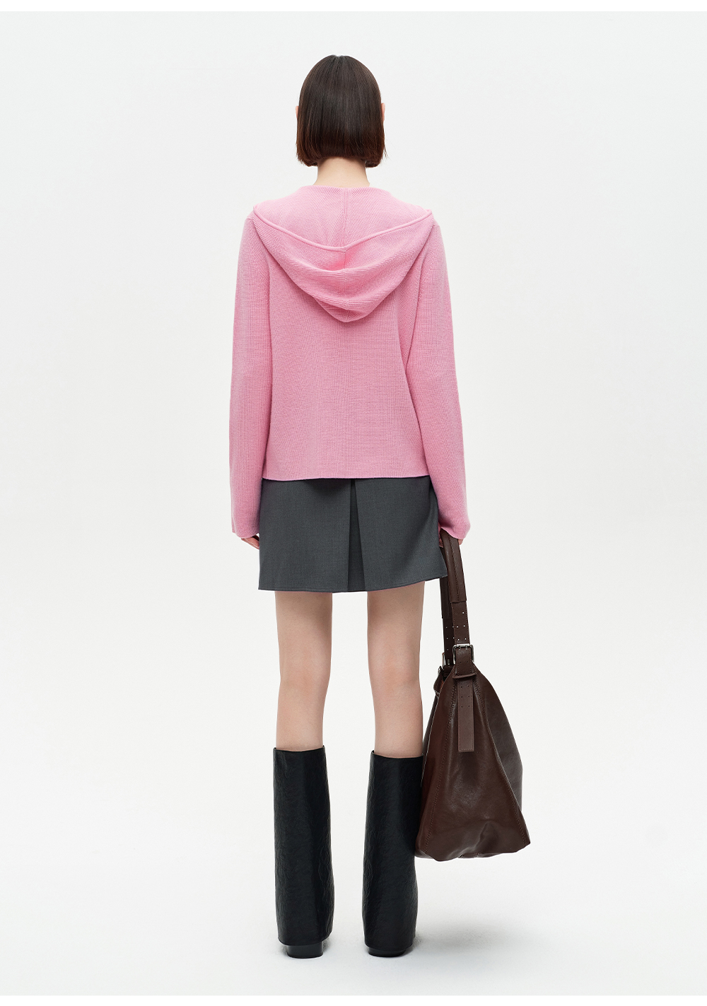 SELFWHO100%绵羊毛半拉链笑脸针织衫女2026春新款毛织连帽衫上衣