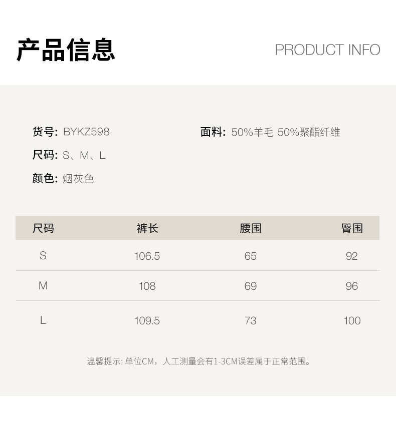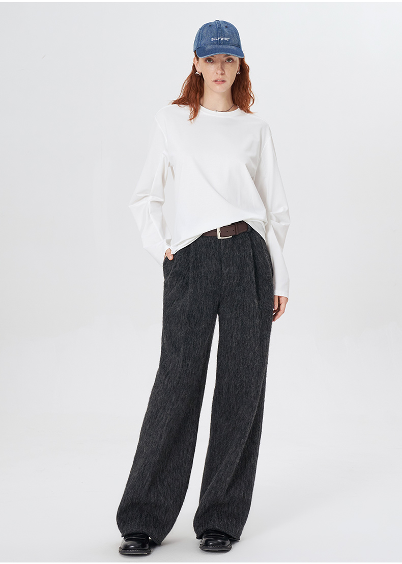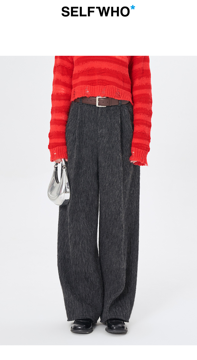 Self Who高支亲肤羊毛休闲裤女冬季加厚2023新款直筒宽松阔腿裤子