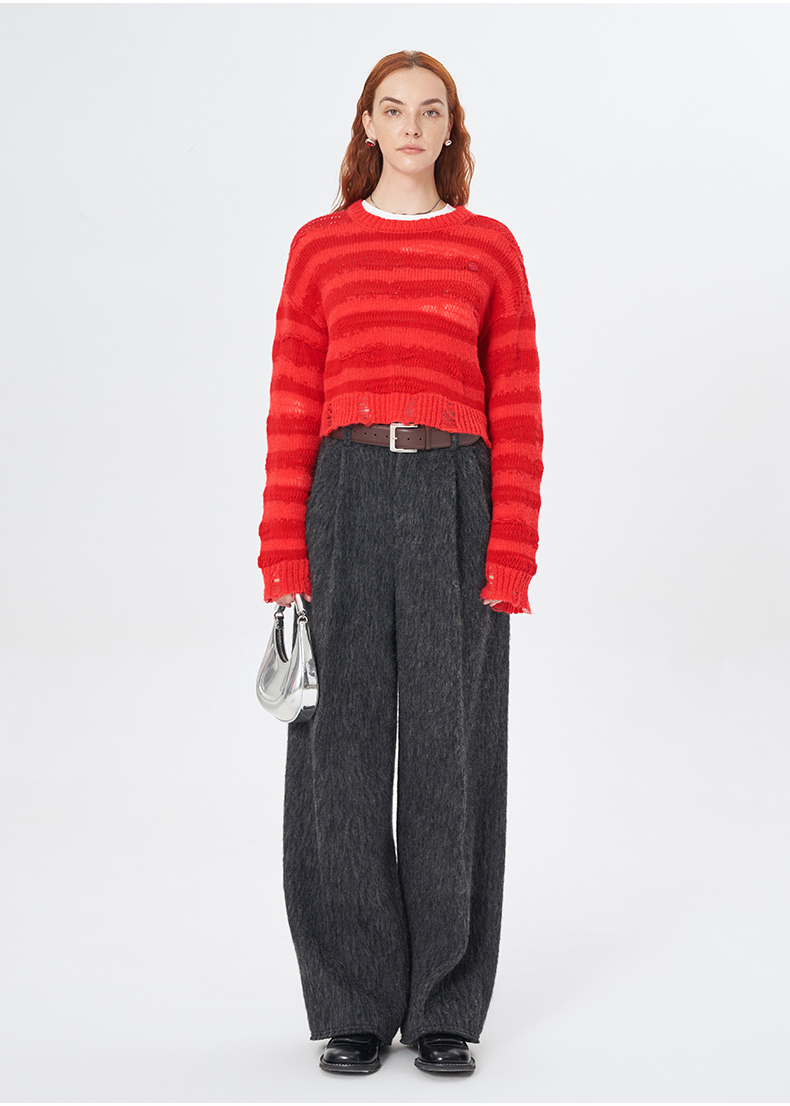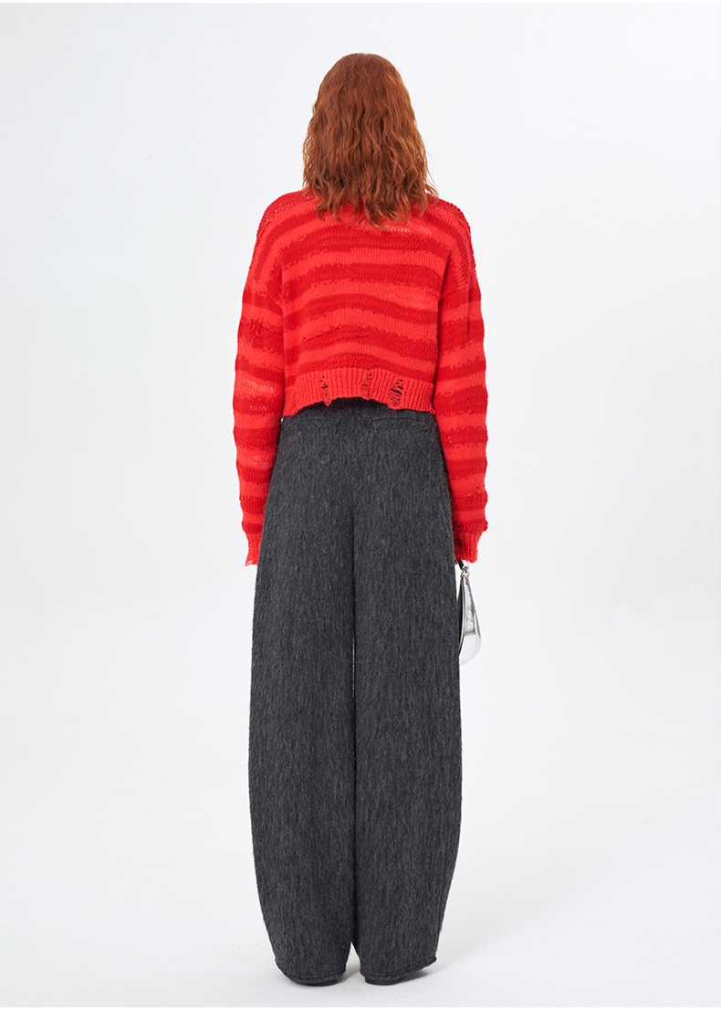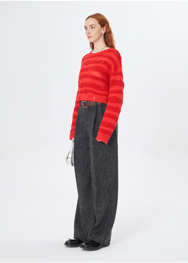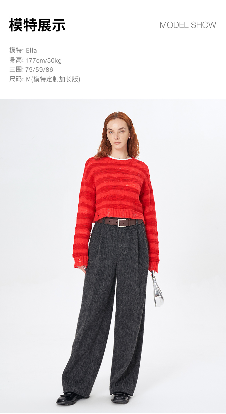 Self Who高支亲肤羊毛休闲裤女冬季加厚2023新款直筒宽松阔腿裤子