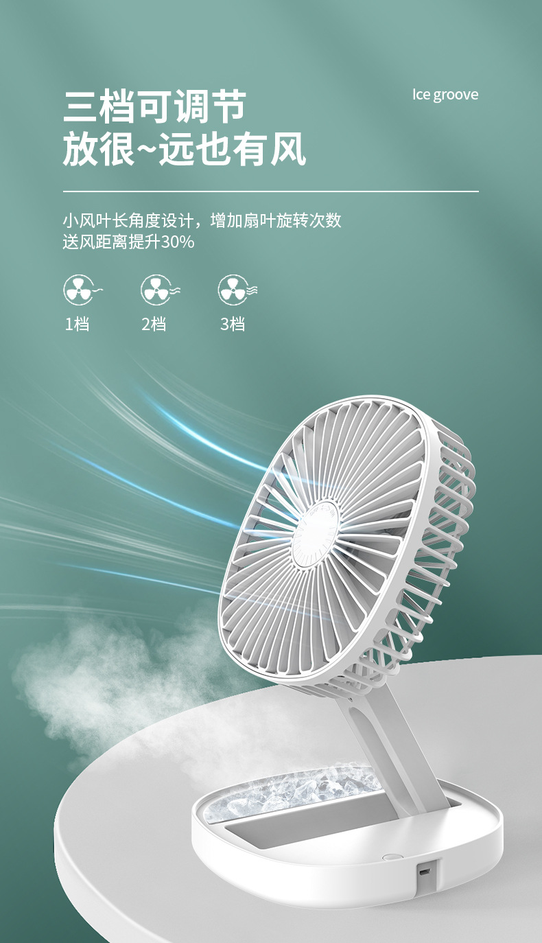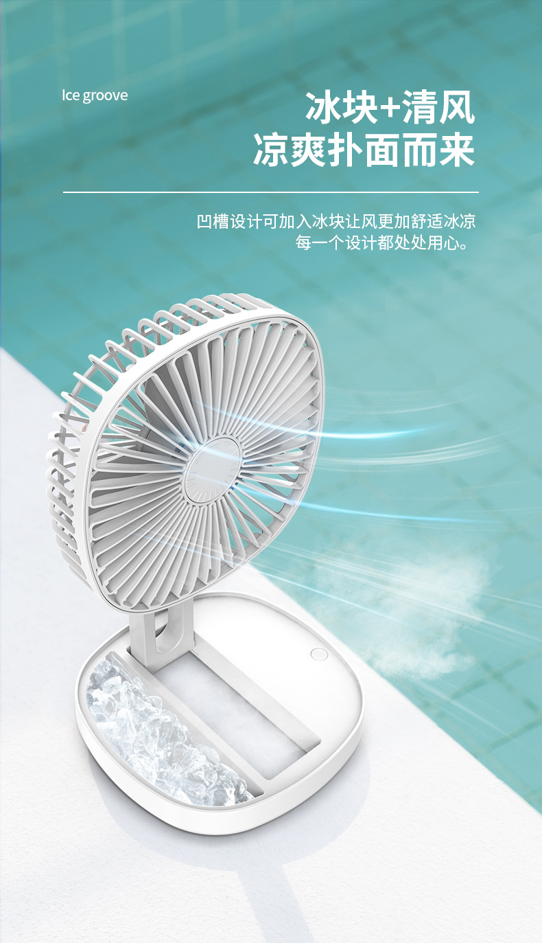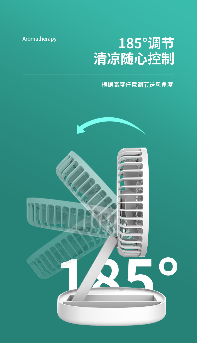 【清凉一夏】桌面一体式USB折叠小风扇 智能三挡风速 185°可调节 内置香薰盒可加冰块 低分贝持久续航