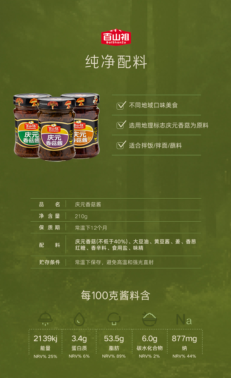 百山祖香菇酱210g*3罐(京味/湘味/苏味)