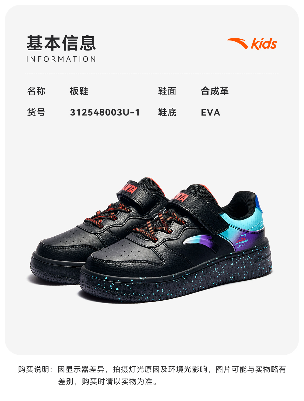 超级安踏儿童魔术贴板鞋秋冬耐磨运动鞋男大童休闲鞋312548003U