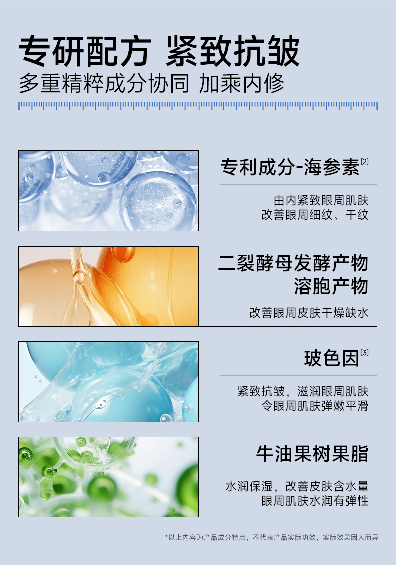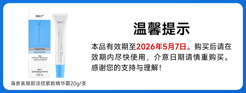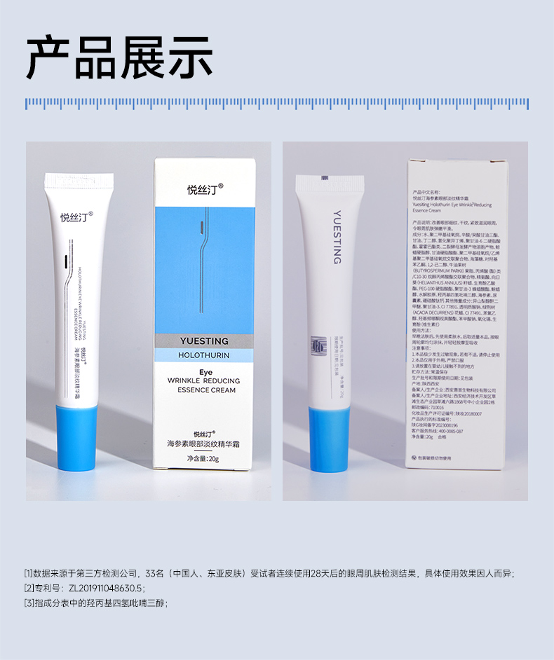 悦丝汀 海参素眼部淡纹精华霜20g 保湿紧致滋润改善眼周细纹干纹
