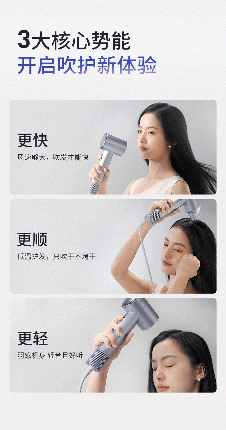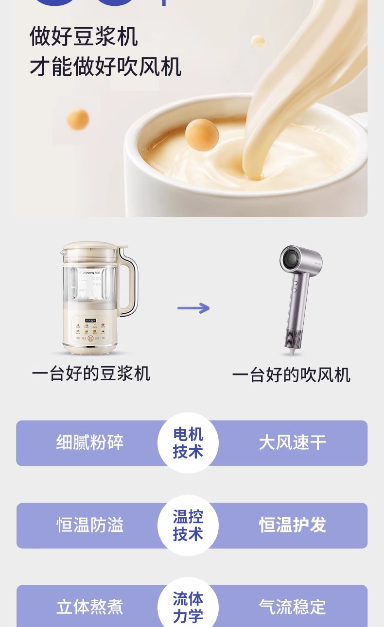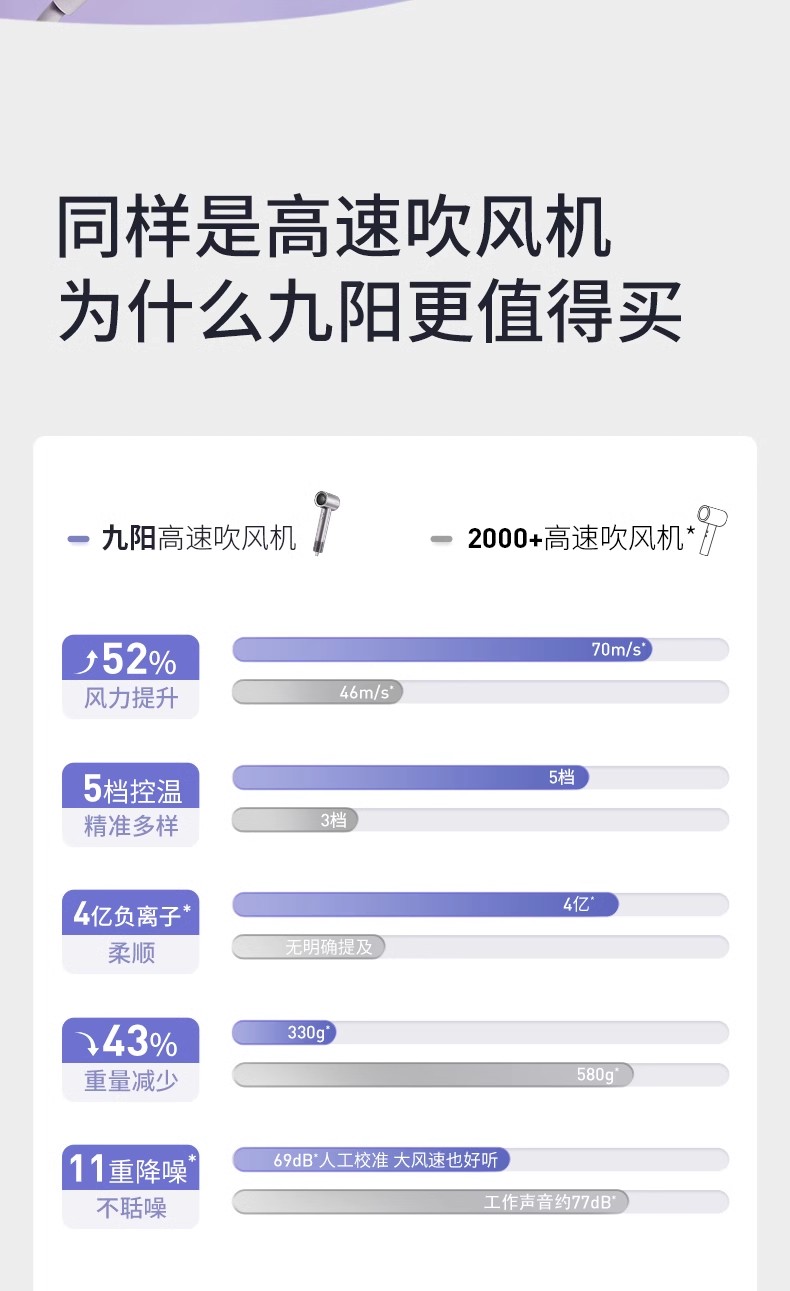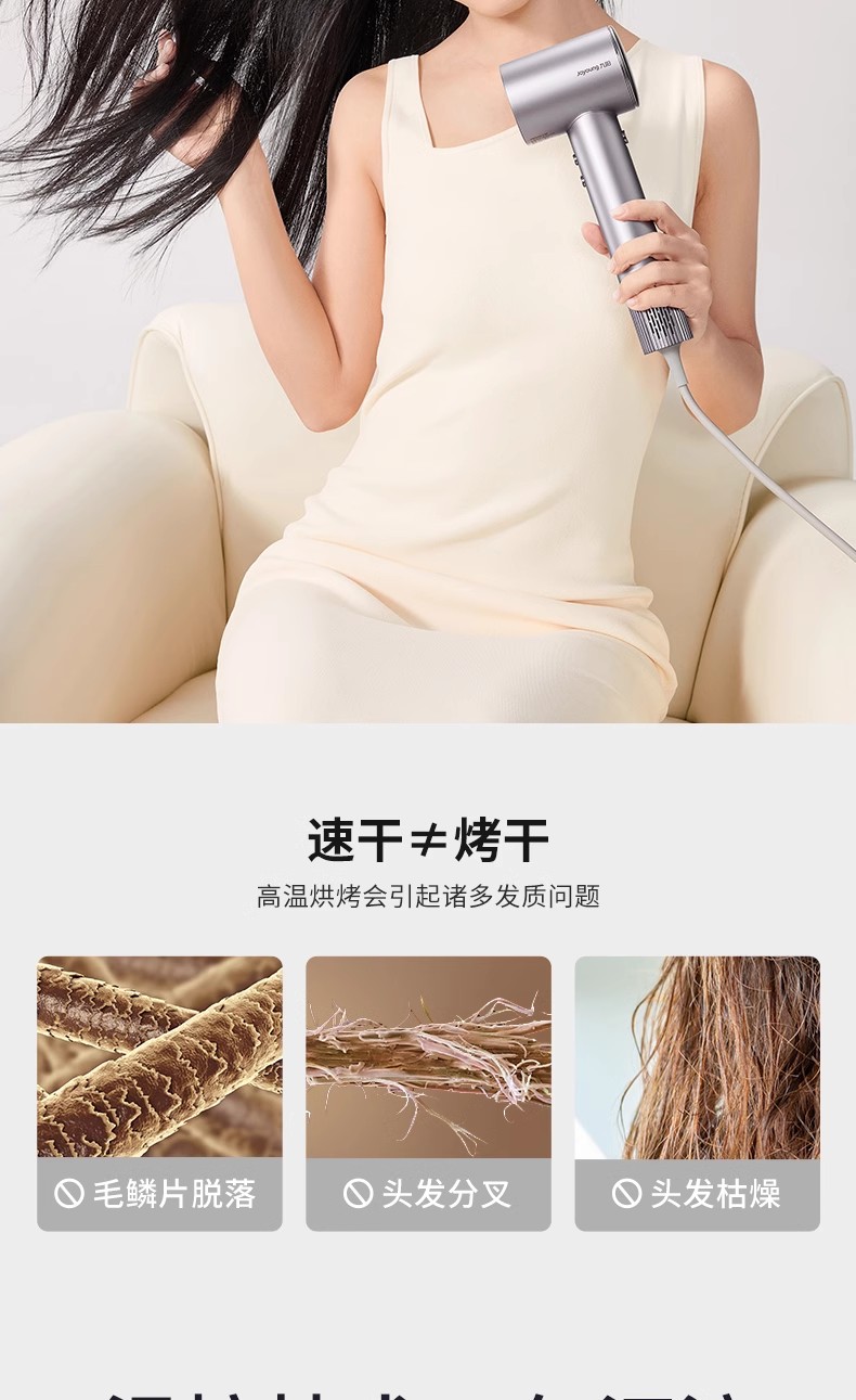 九阳高速吹风机家用大风力负离子护发速干低噪大功率电吹风筒X1